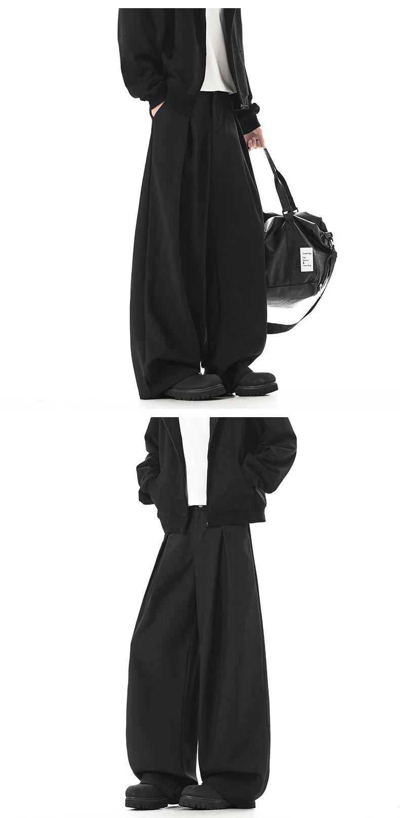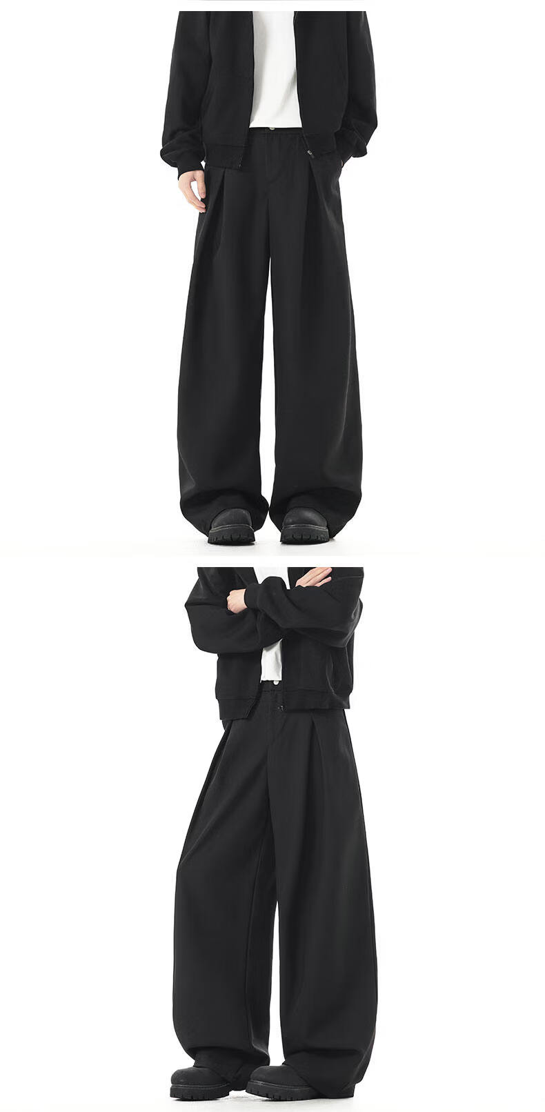 NEW OR MODE老钱风复古加绒加厚休闲裤男士冬季新款保暖宽松显瘦百搭直筒西裤 黑色加绒 S 【建议80-95斤】