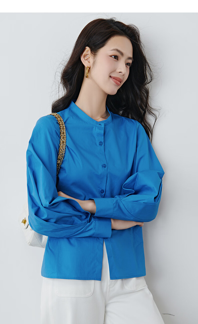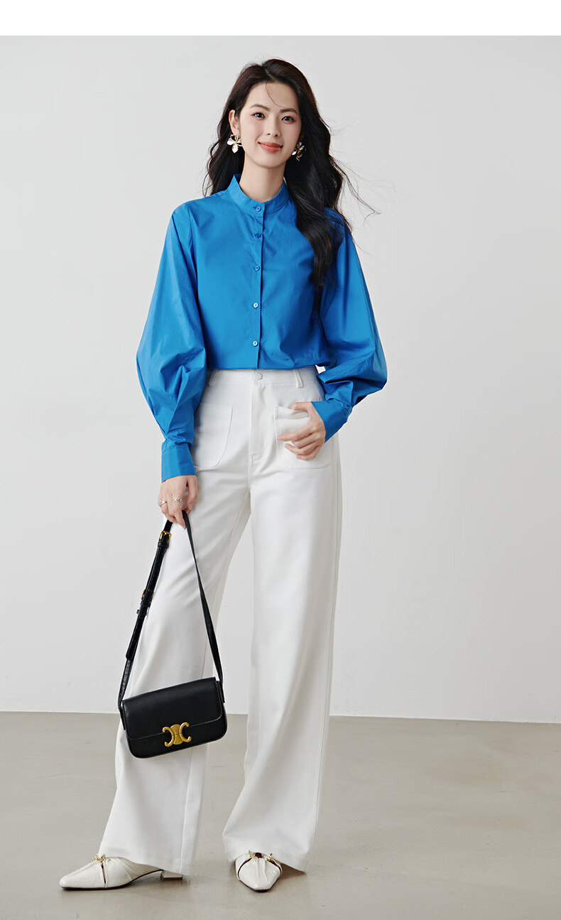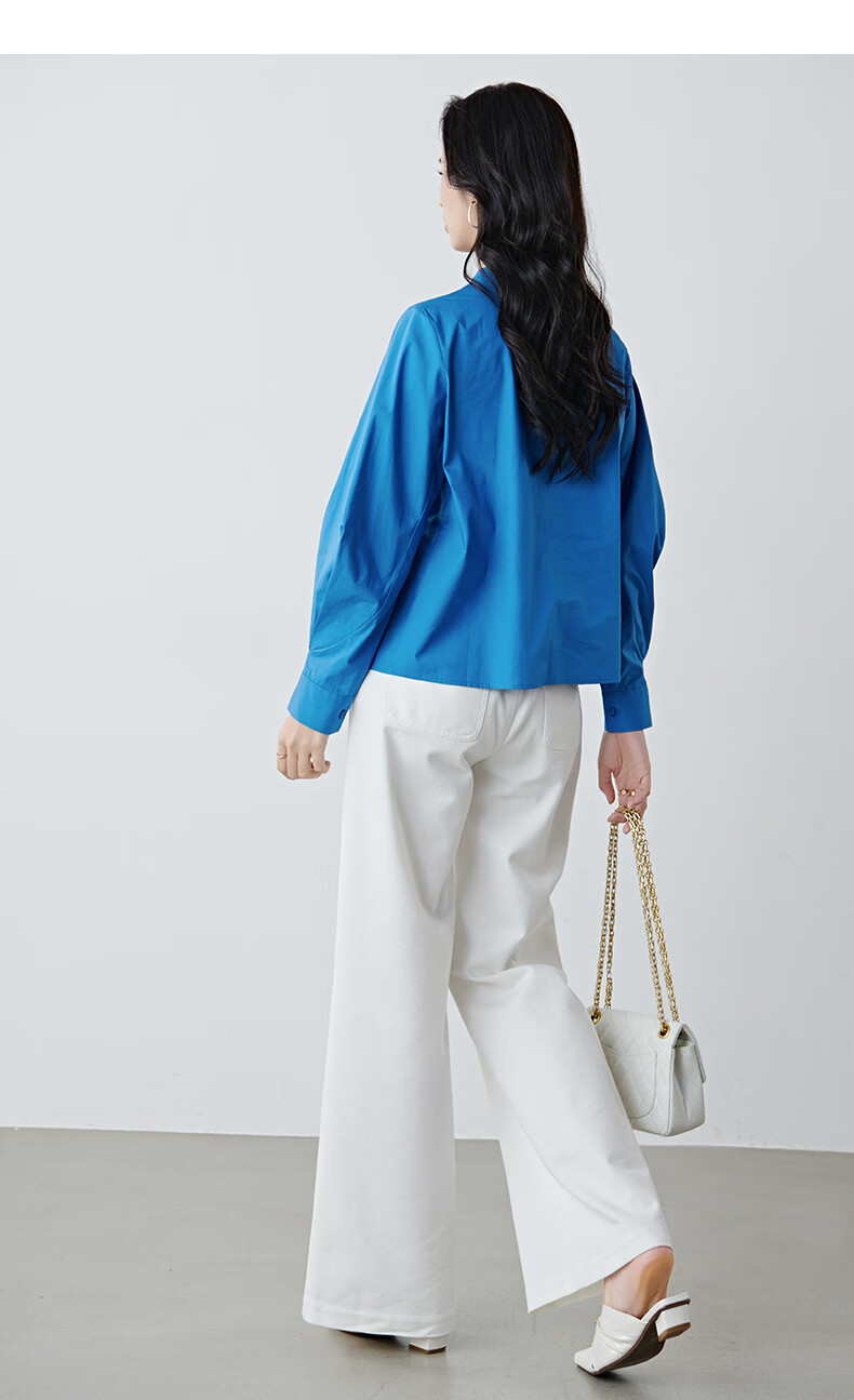 晚白100%纯棉克莱因蓝衬衫女2026年春款法式小众梨型身材友好大码衬衣 蓝色 XL
