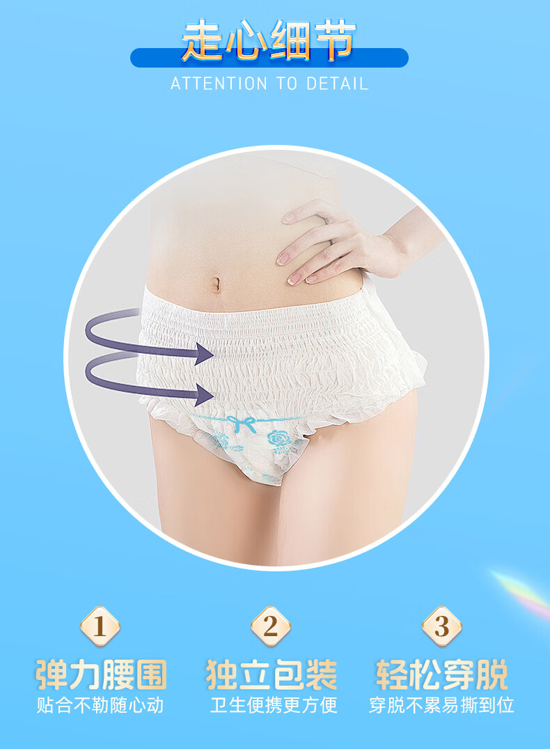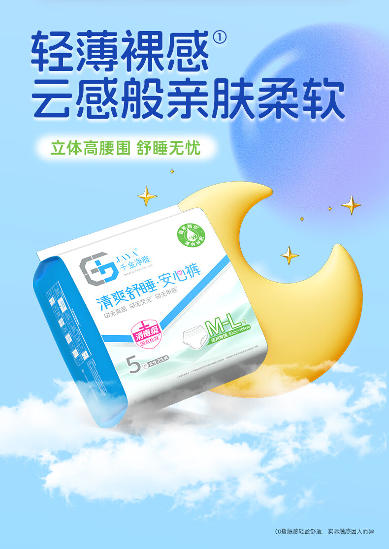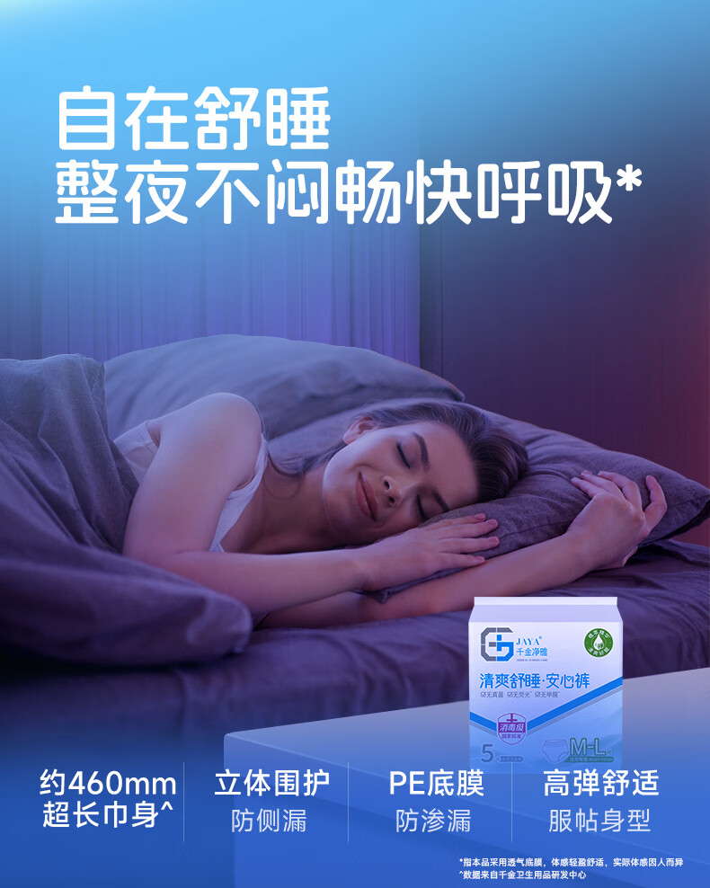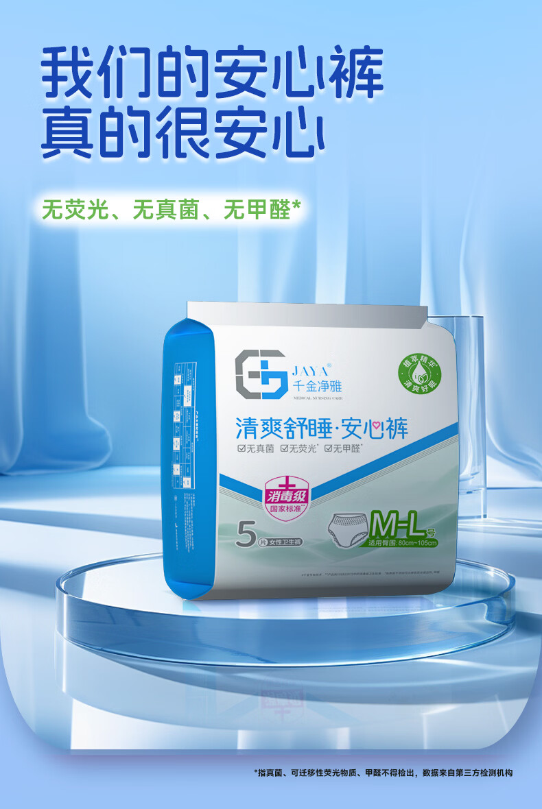 千金净雅经期裤型卫生巾安睡裤夜用安心裤甜睡安全防漏夜安裤 M-L码 5条 80-110斤 经期裤 1包3条/1包5条