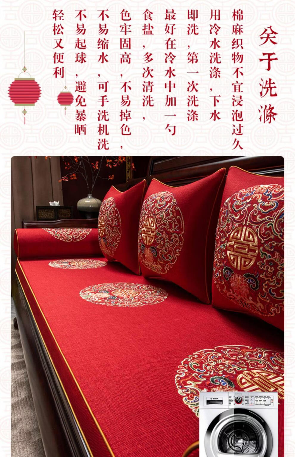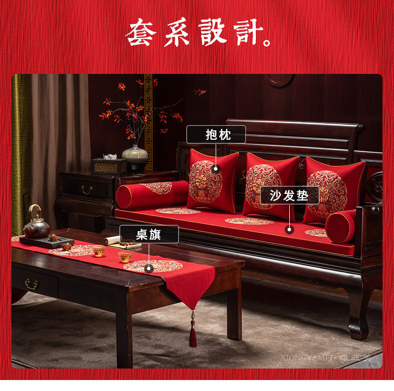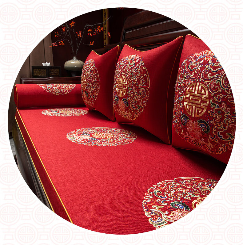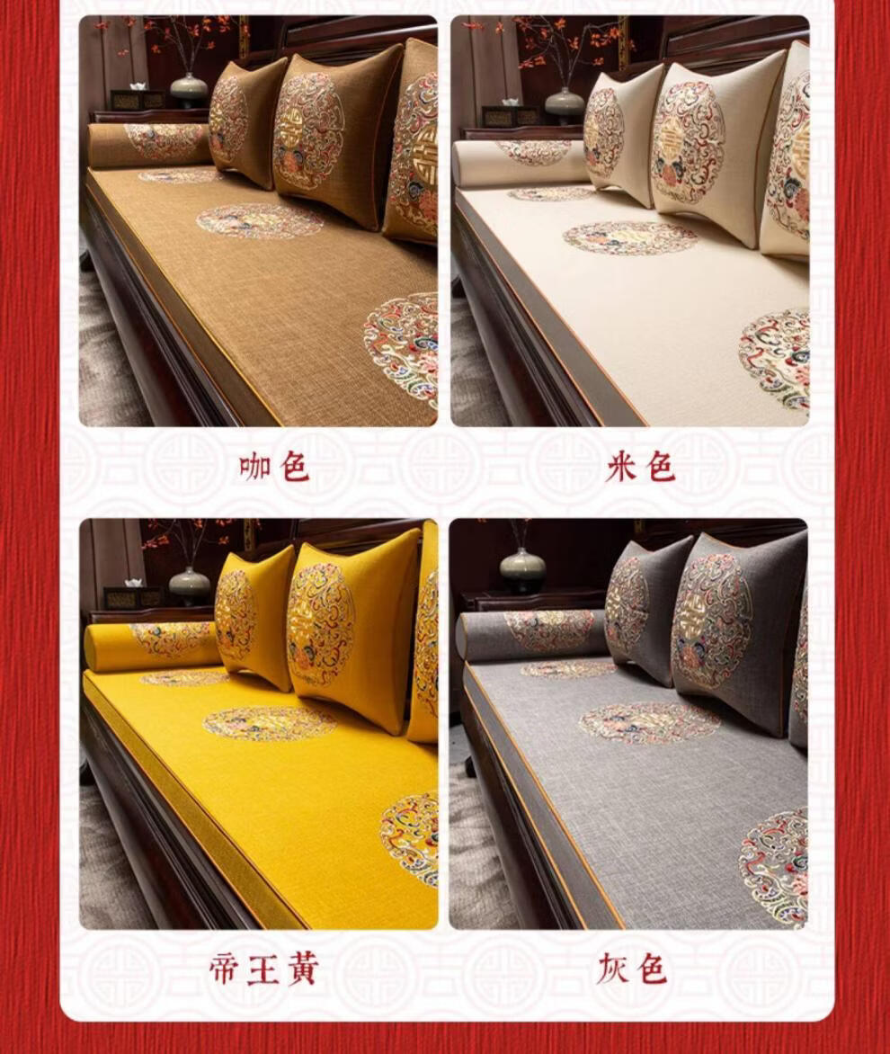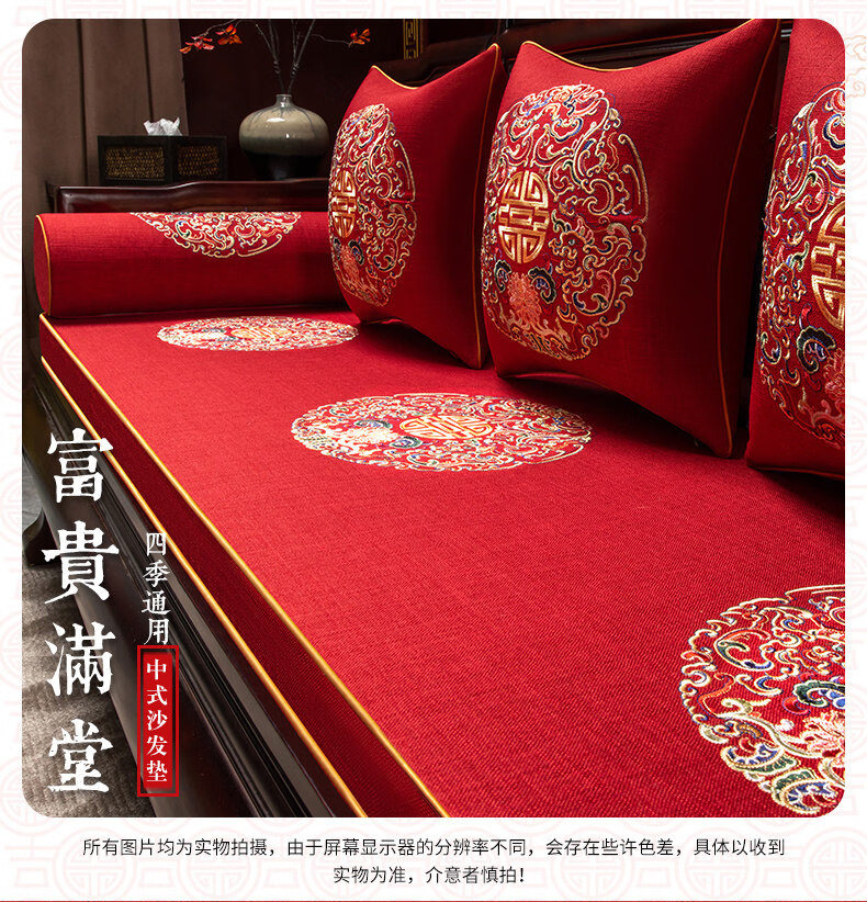 DONOYA 多罗亚新中式实木海绵沙发垫四季通用防滑2026年新款红木沙发坐垫罗汉床 富贵满堂-中国红-【刺绣多丽丝外套】 掌柜 1cm*1cm 专属定制咨 咨询