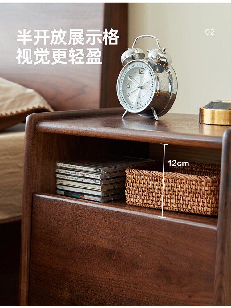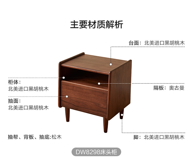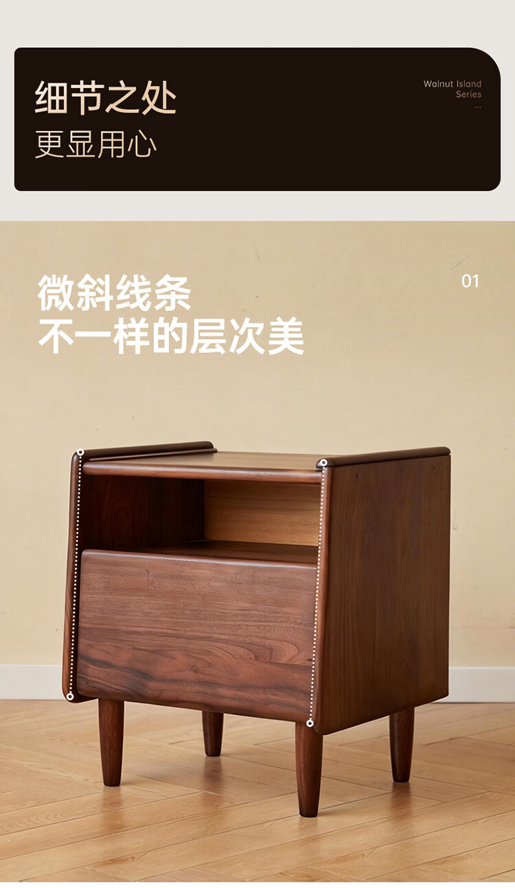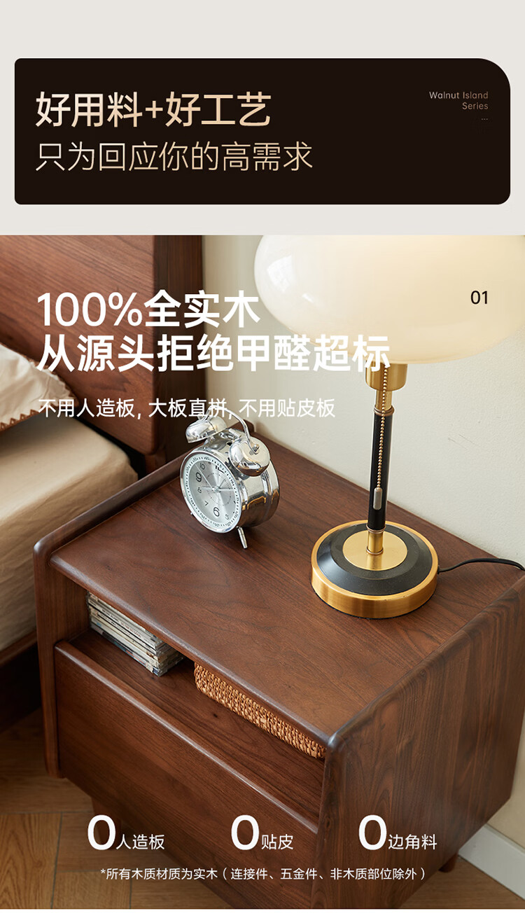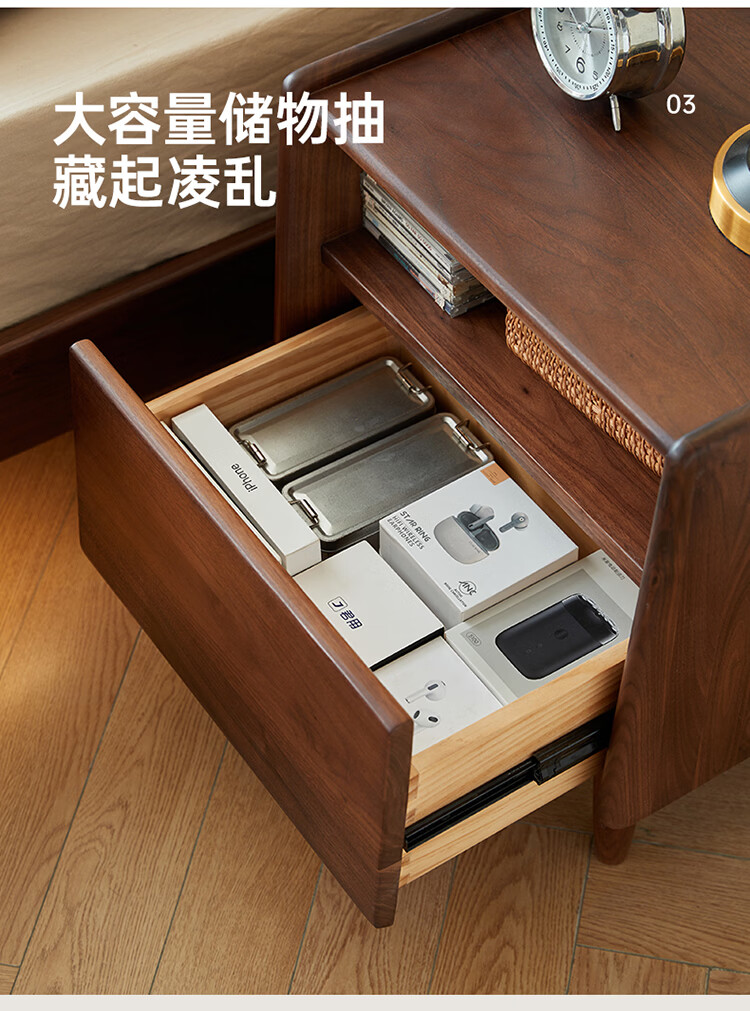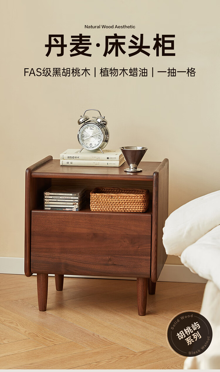 全友原木风北美黑胡桃木实木床头柜新款卧室靠墙收纳置物架储物柜家用 【北美黑胡桃木】床头柜