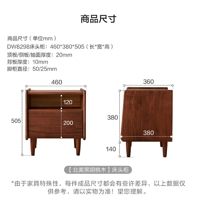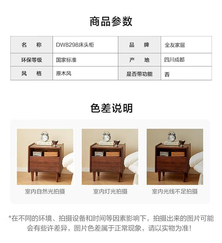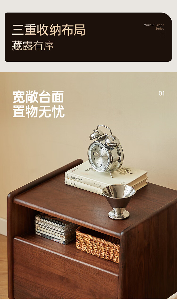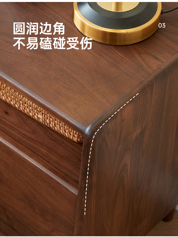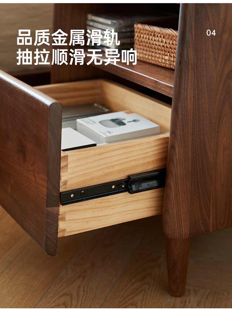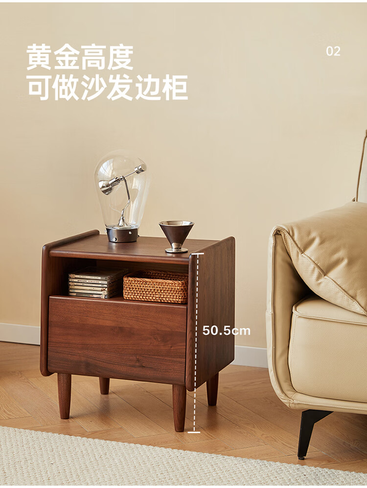 全友原木风北美黑胡桃木实木床头柜新款卧室靠墙收纳置物架储物柜家用 【北美黑胡桃木】床头柜