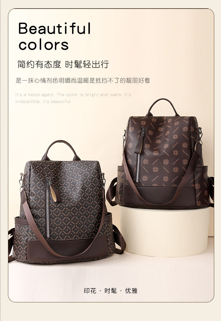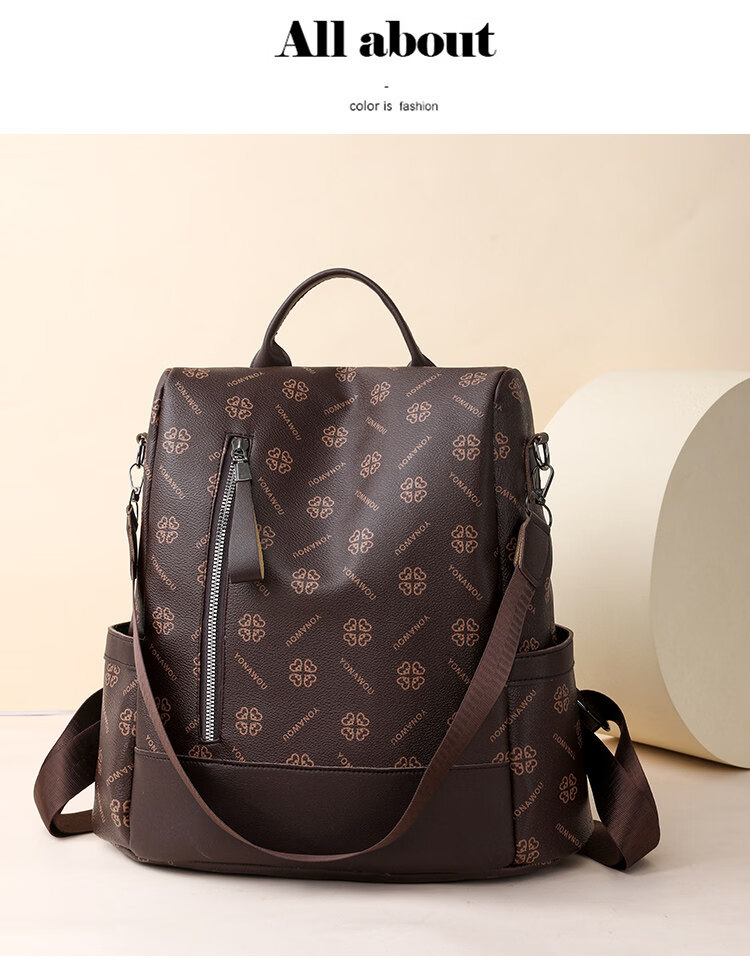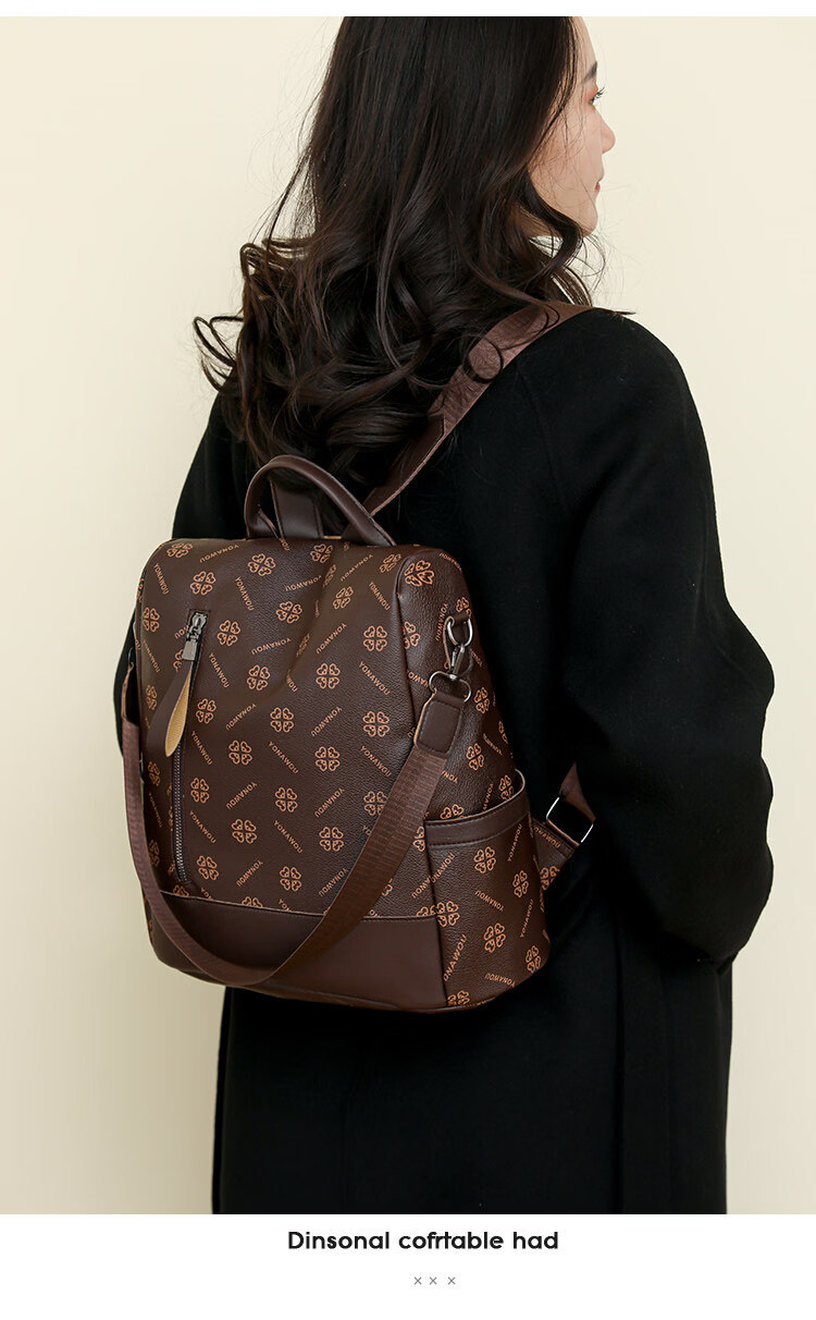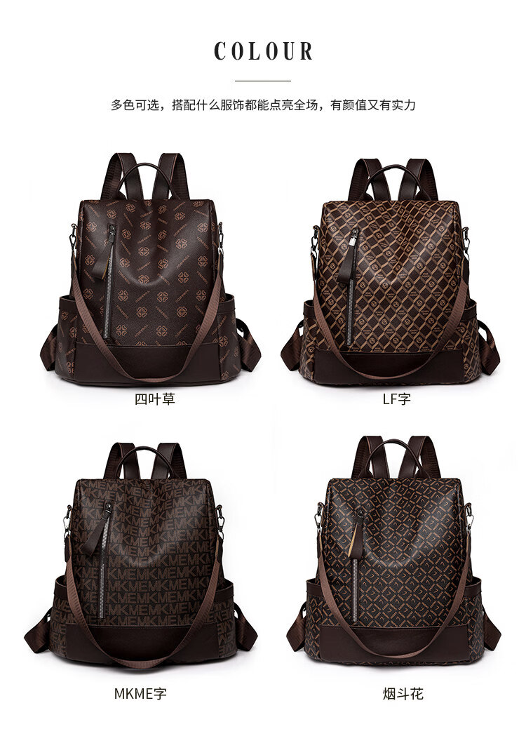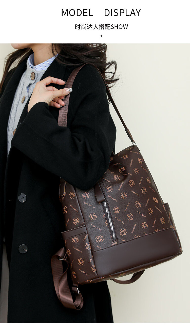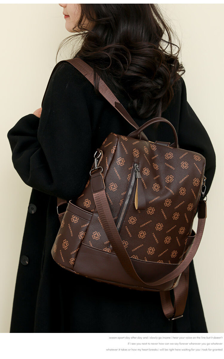 GYKZ日本进口双肩包女2026新款大容量时尚花型软皮pu女士休闲简约防盗 烟斗花