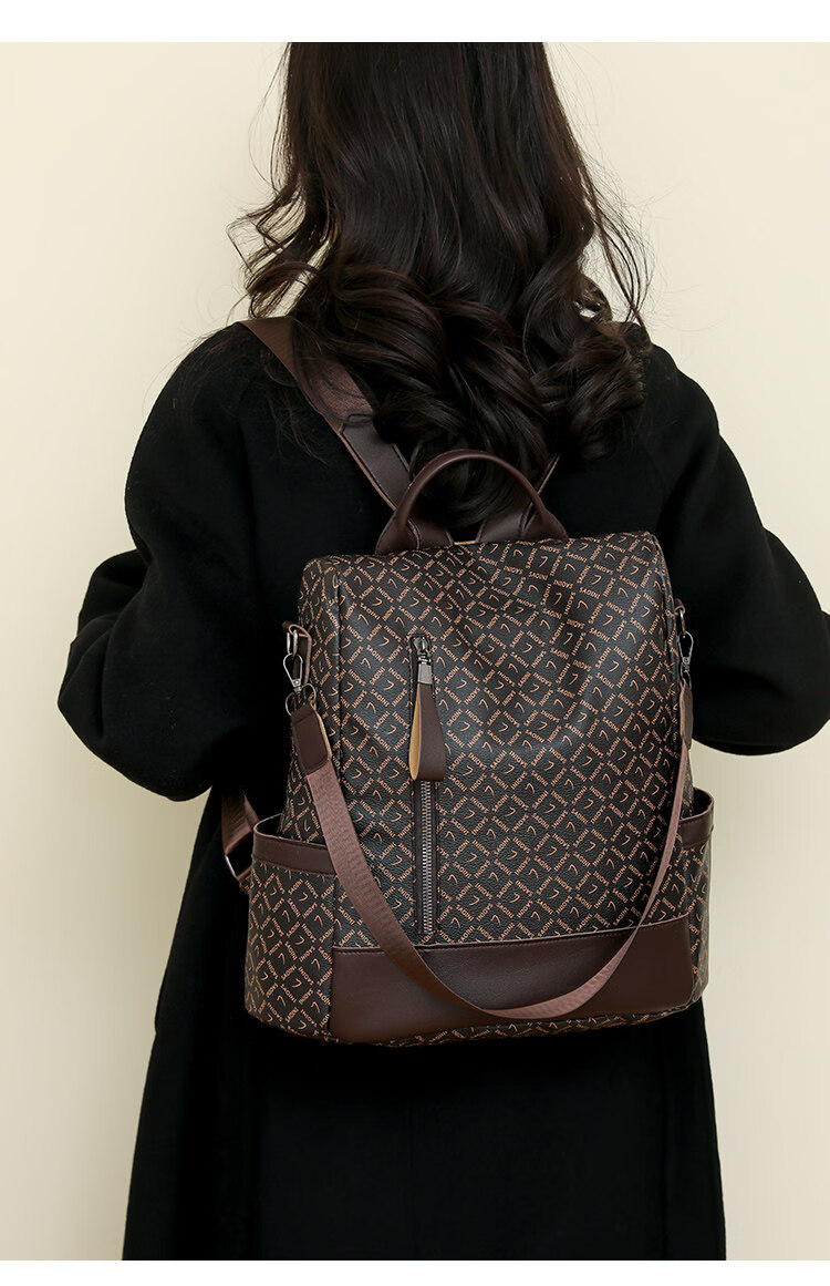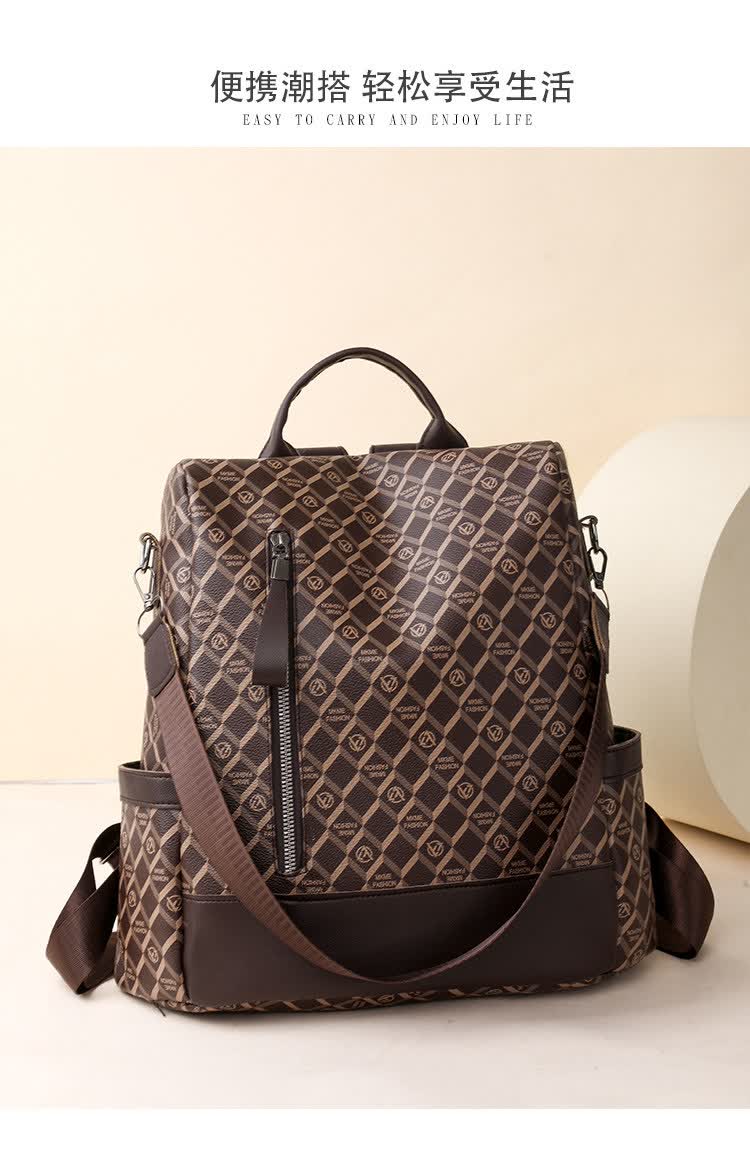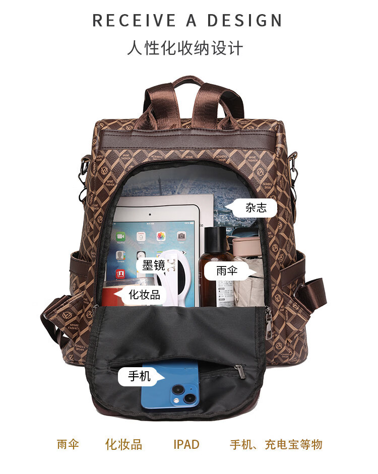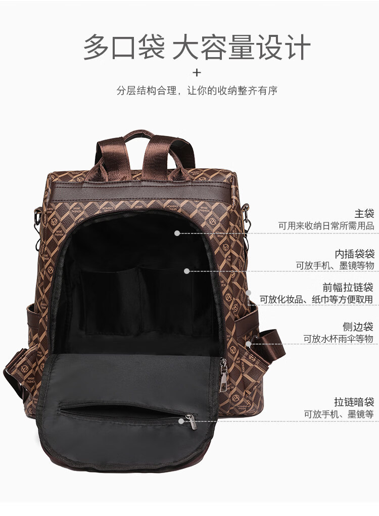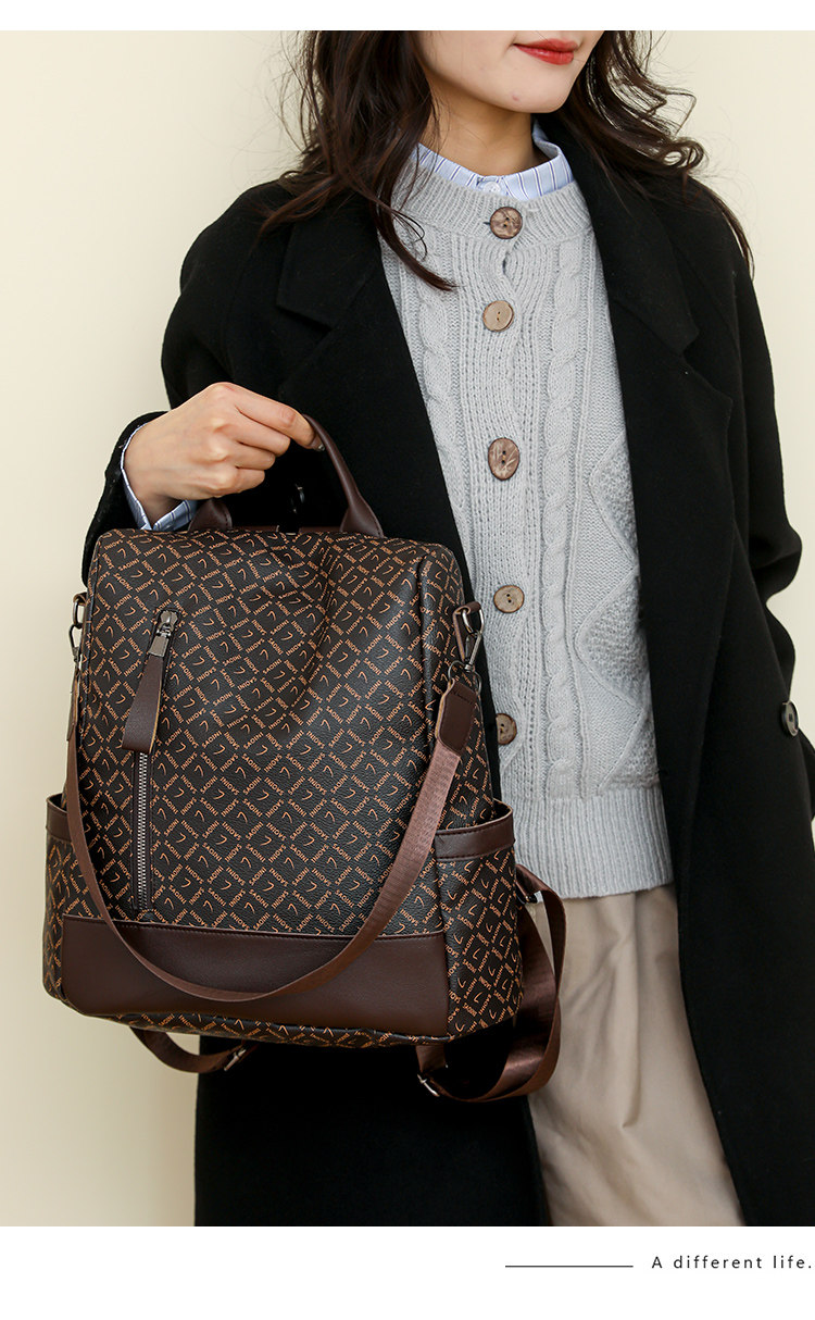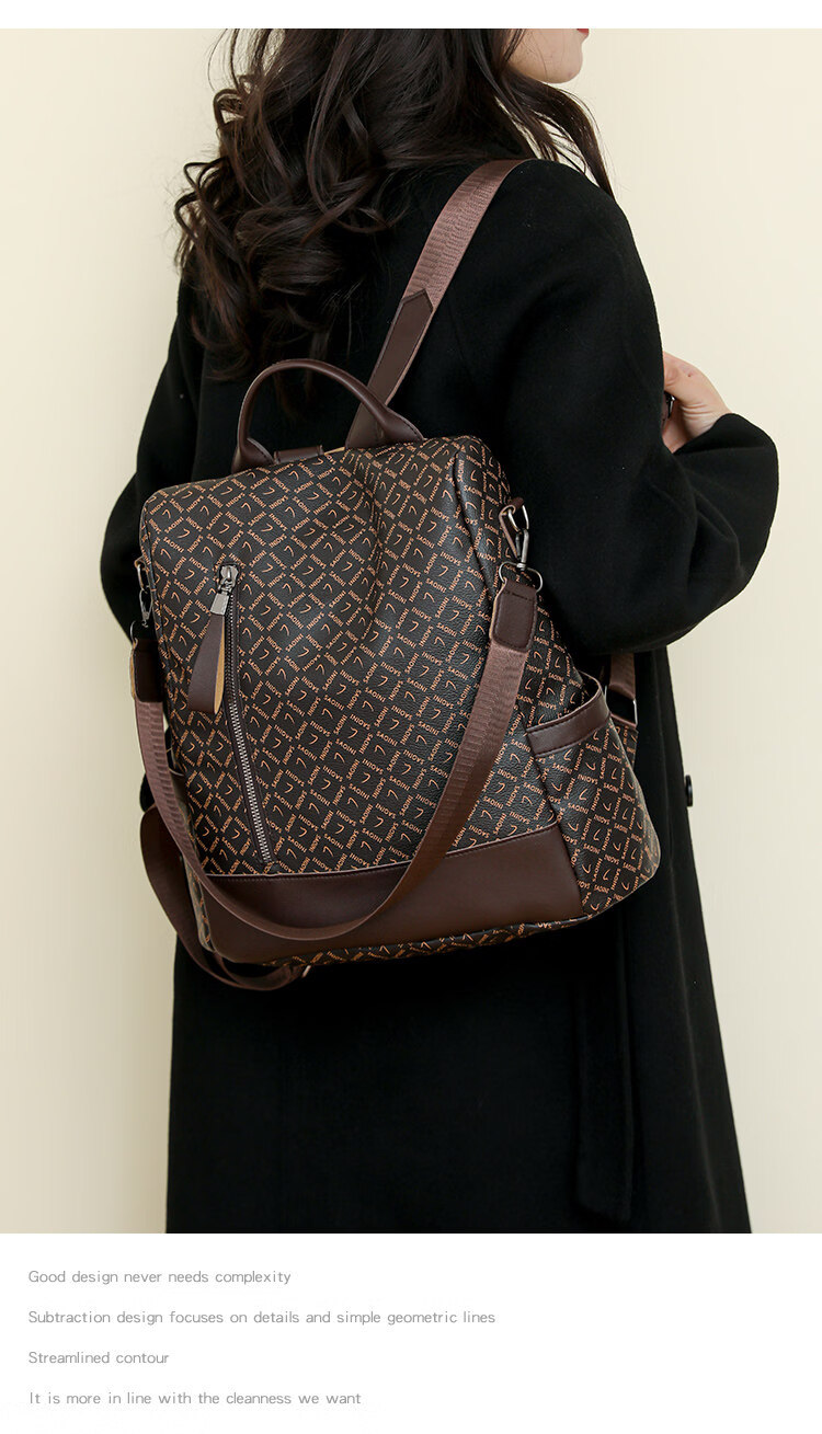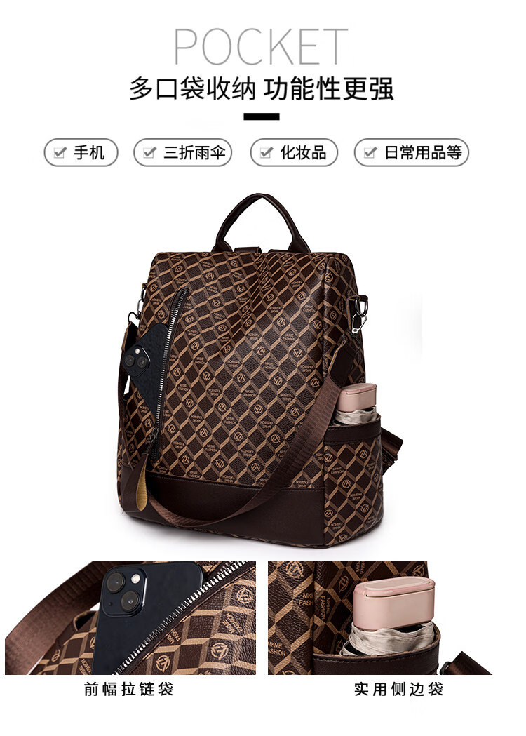 GYKZ日本进口双肩包女2026新款大容量时尚花型软皮pu女士休闲简约防盗 烟斗花