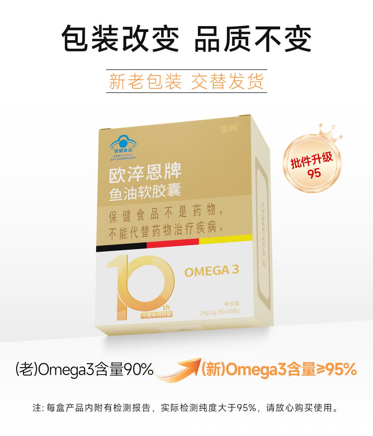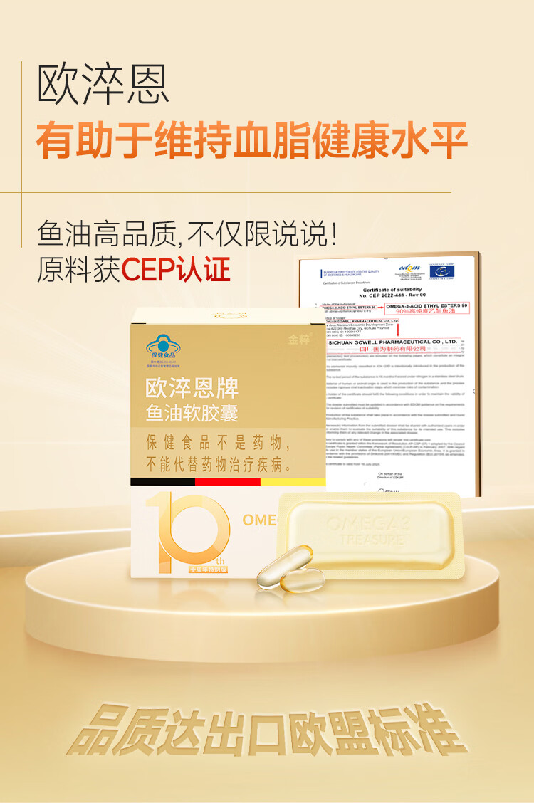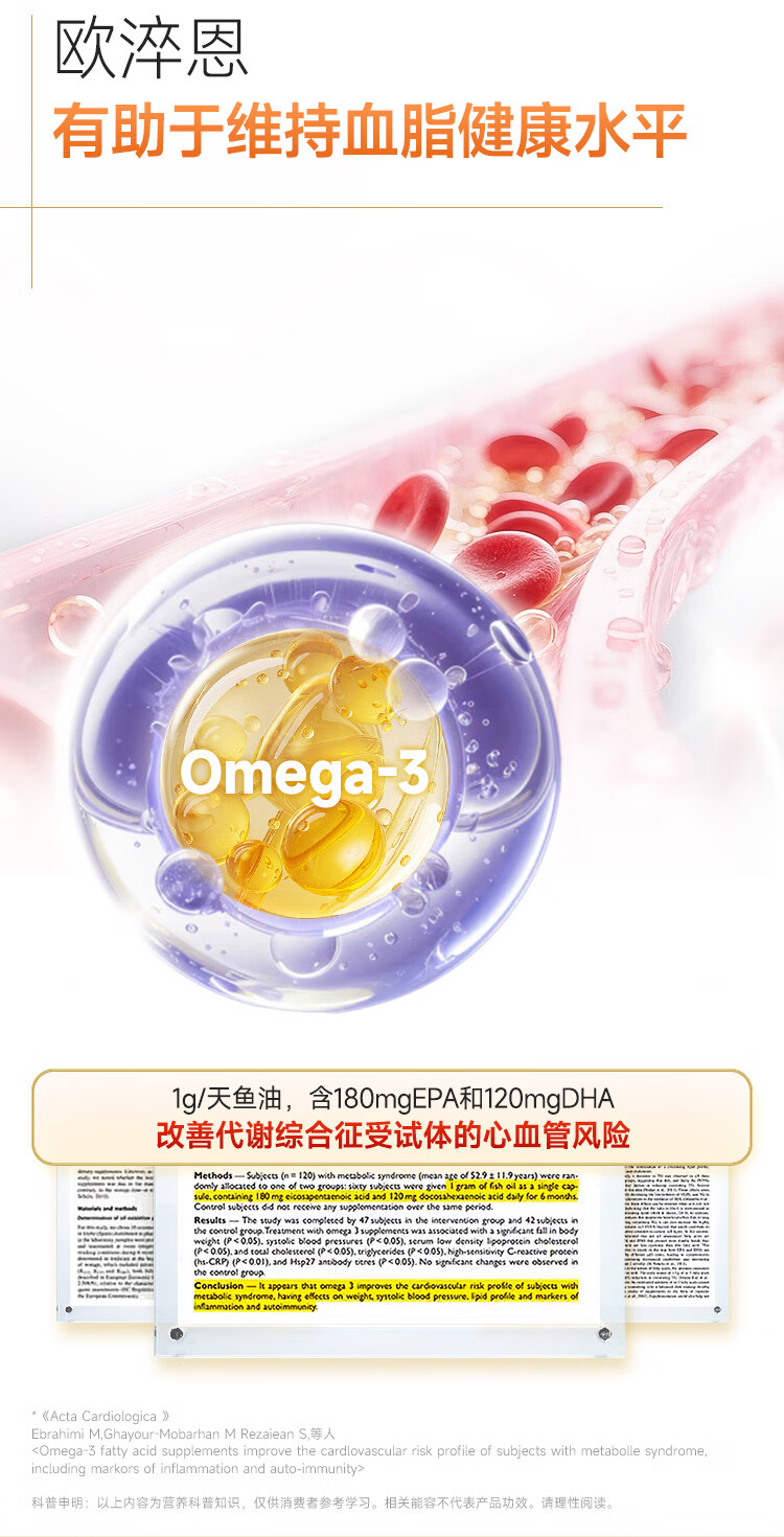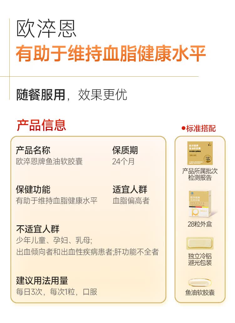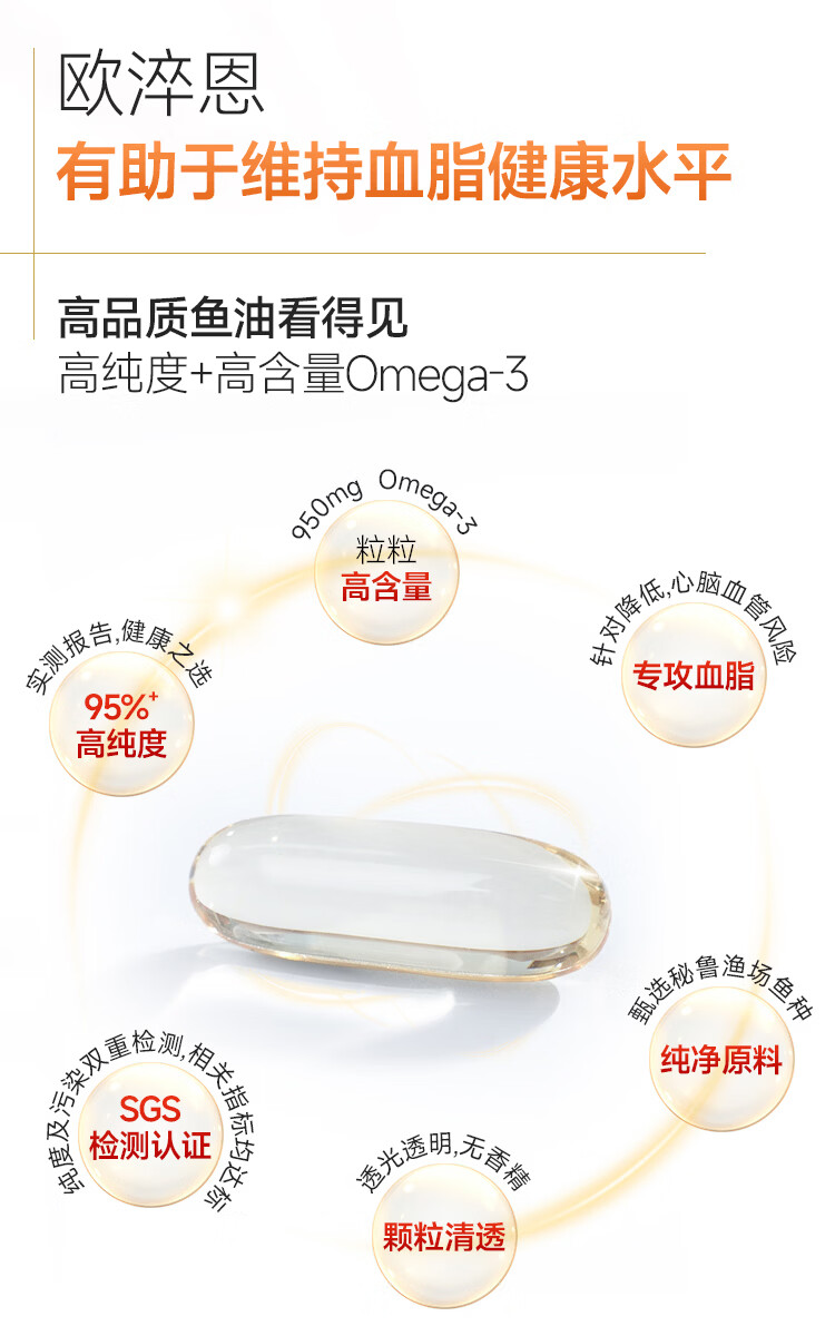 欧淬恩【到手180粒】深海鱼油omega3非鱼肝油95%中老年易吞服DHAEPA 28粒*6盒 加赠4粒*3盒【共180粒】