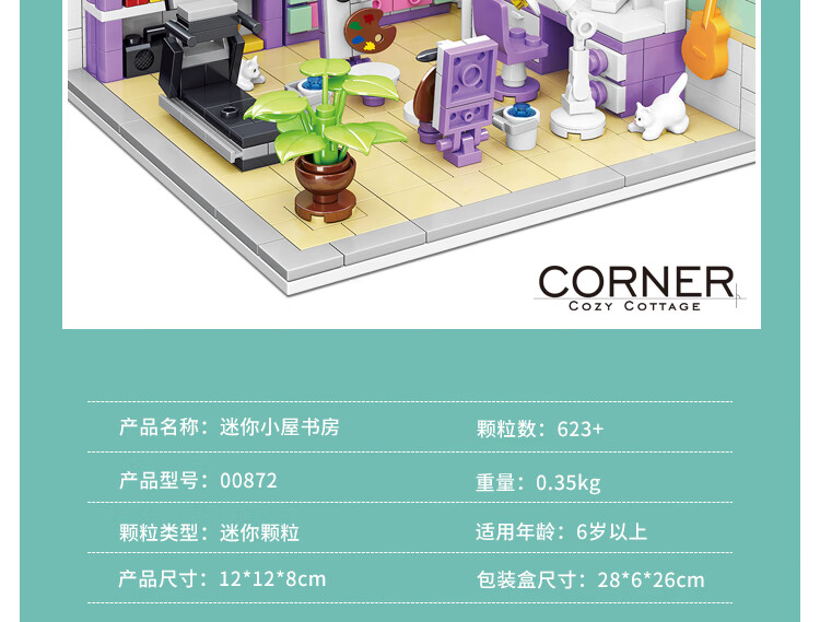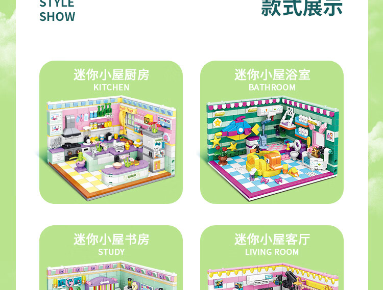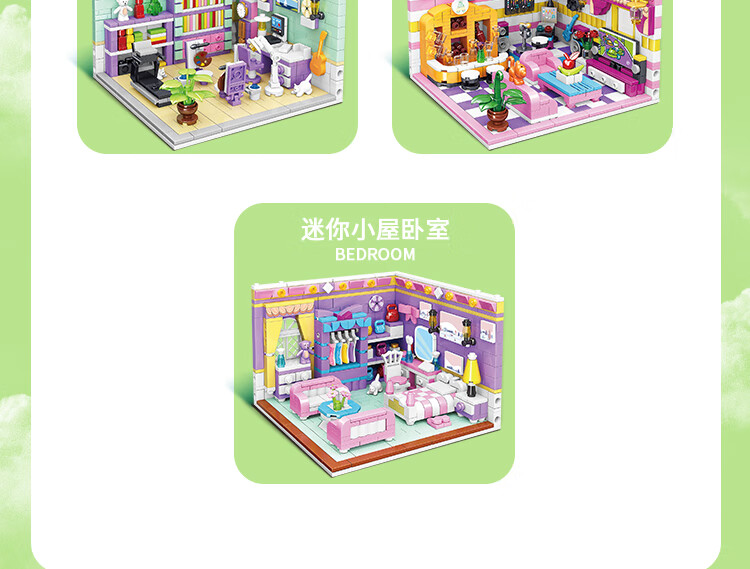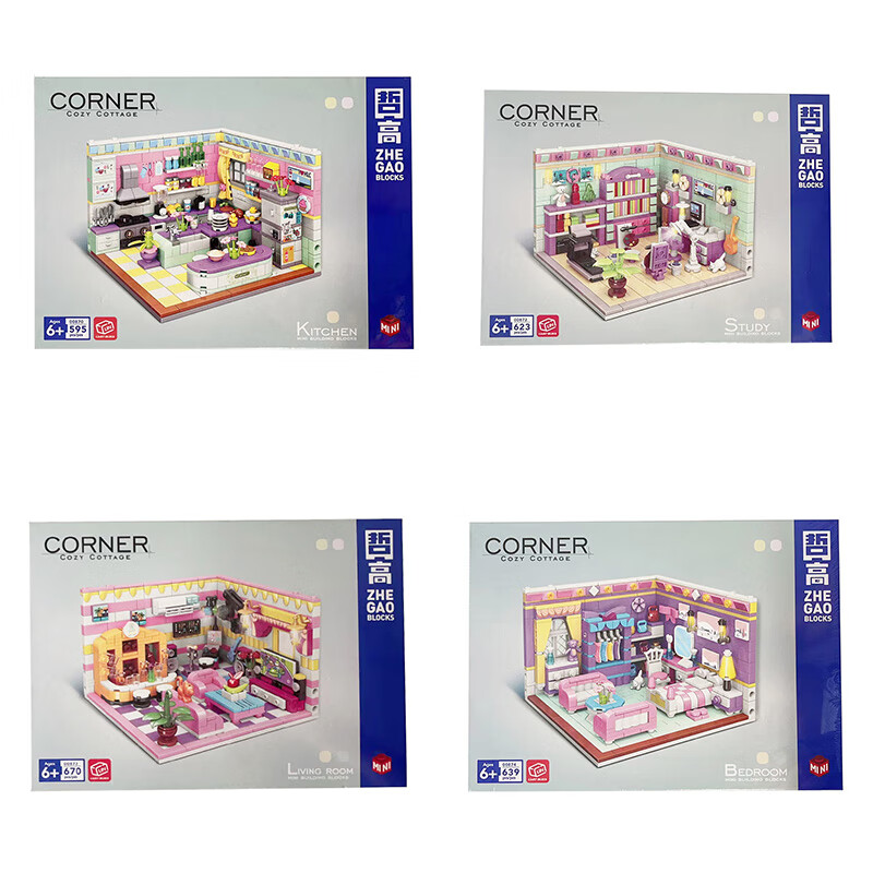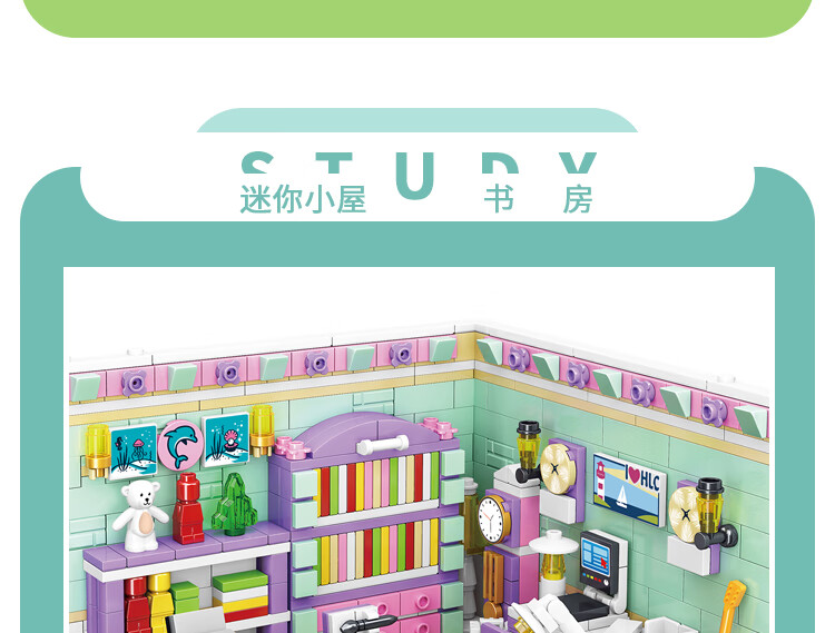 哲高积木拼装过家家房间迷你小屋厨房卧室书房拼插模型女孩玩具礼物 小屋书房【623颗粒】