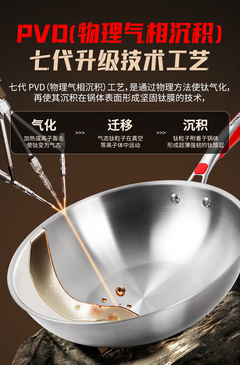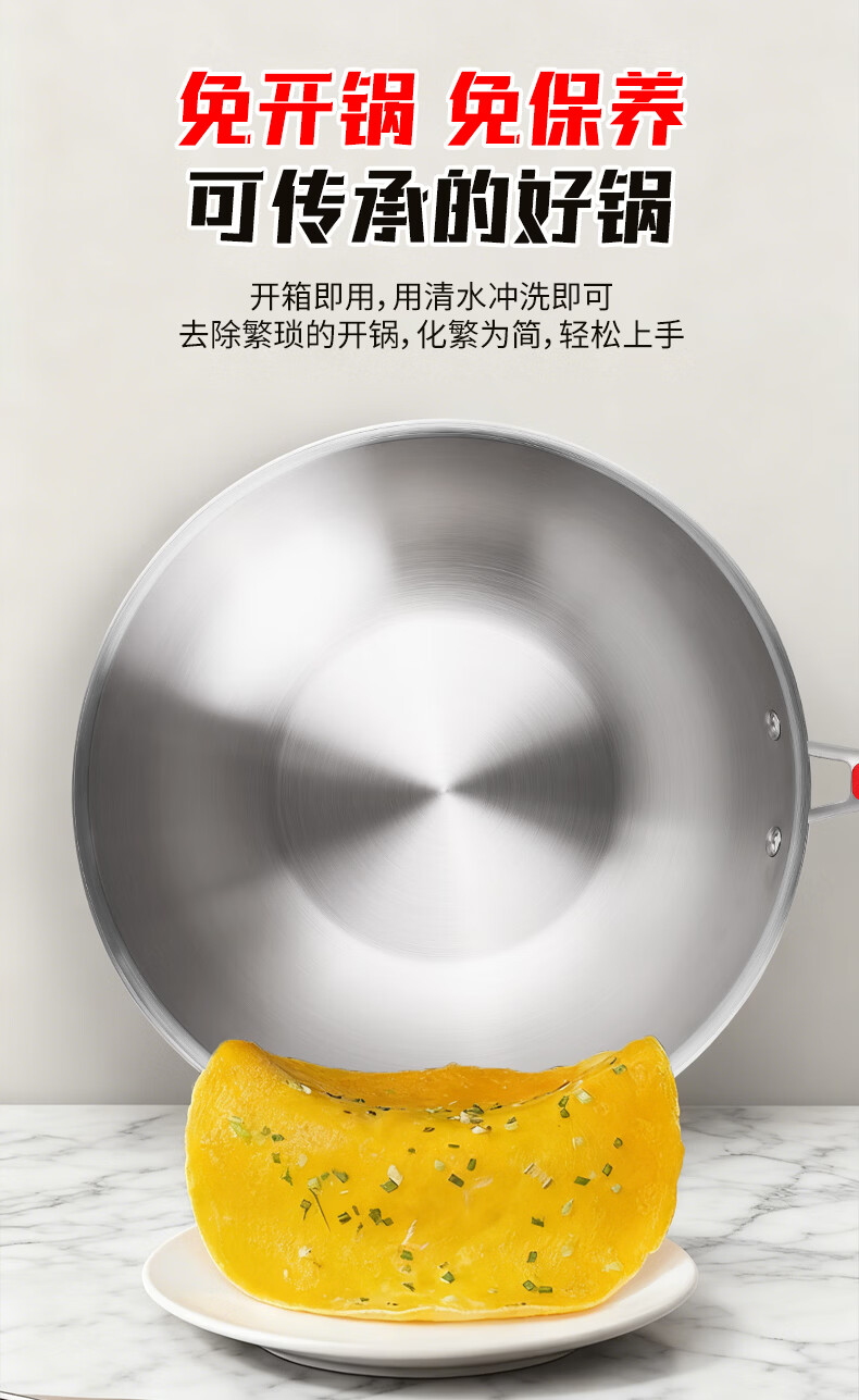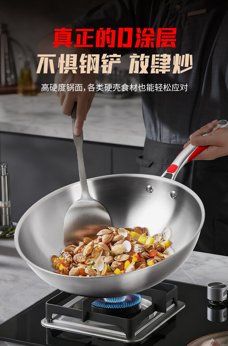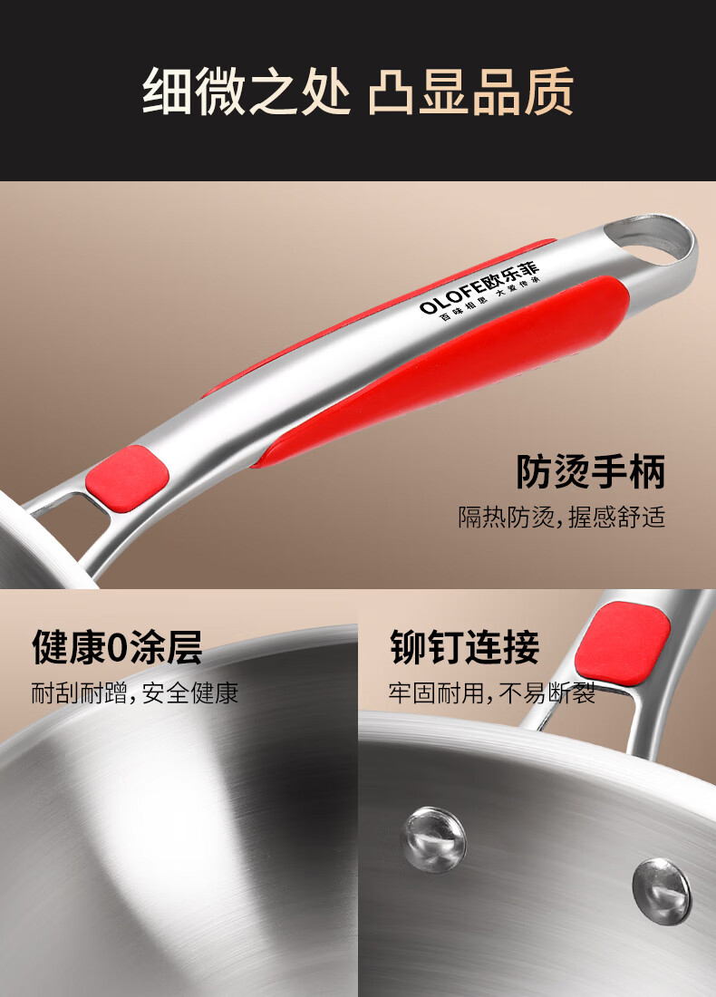 欧乐菲(OLOFE)0涂层不锈钢钛炒锅第七代中式晶刚钛镜面家用平底轻便炒菜锅32cm 【第七代】免开锅 32cm