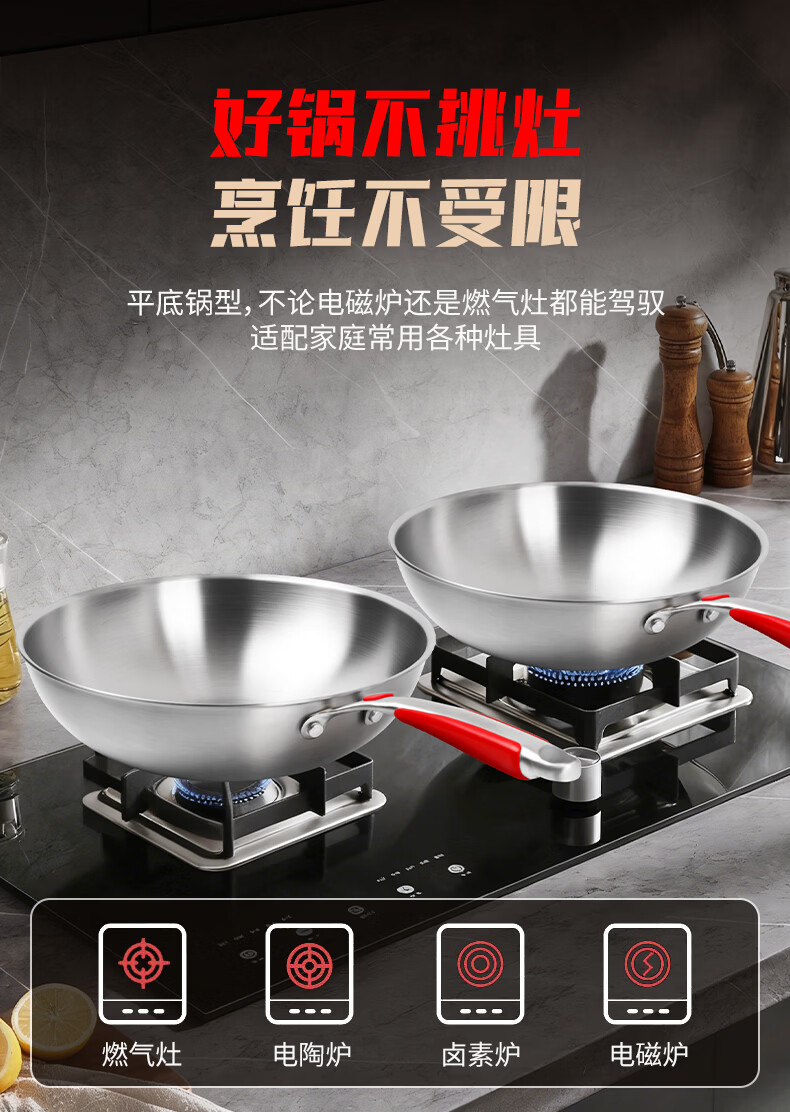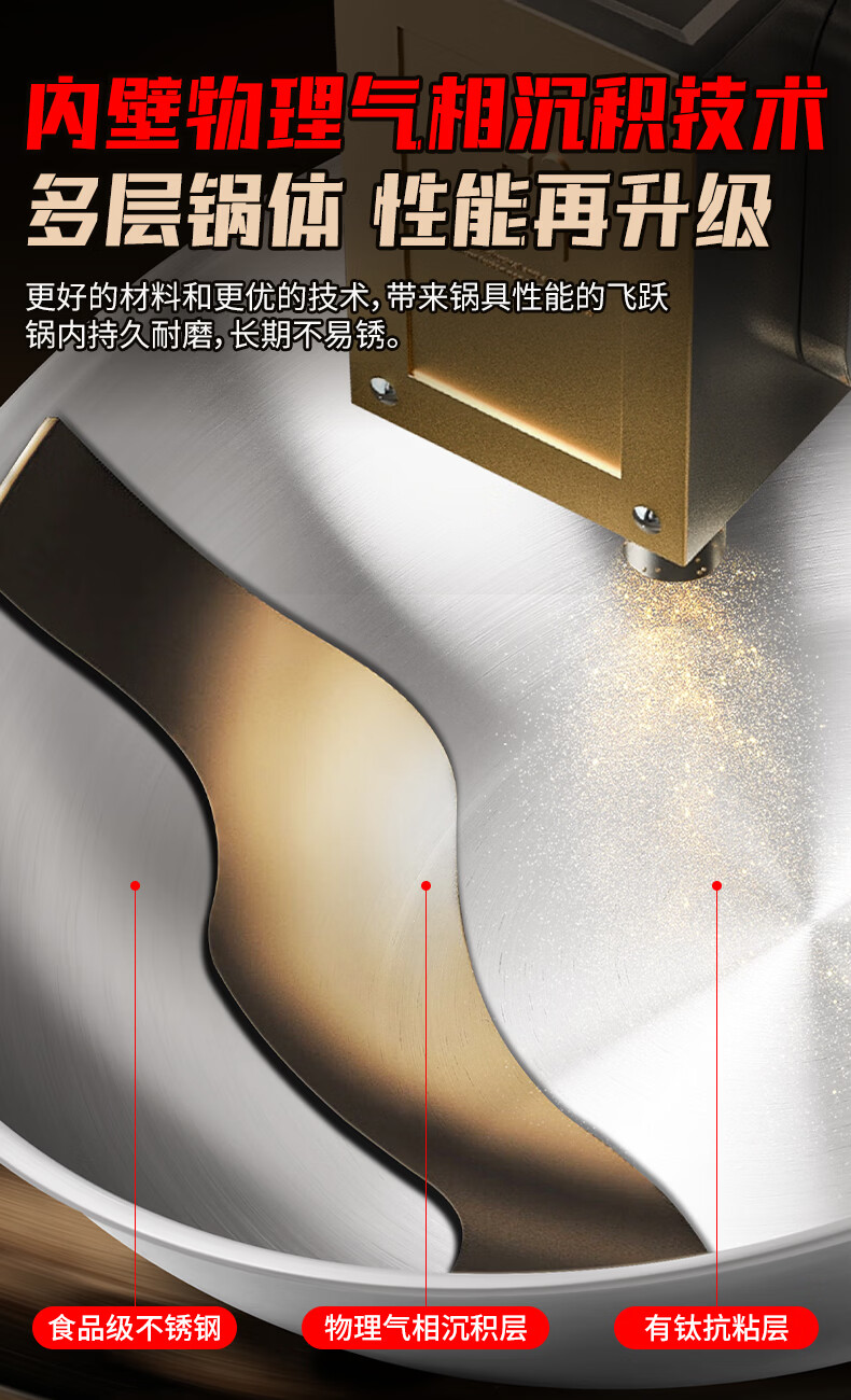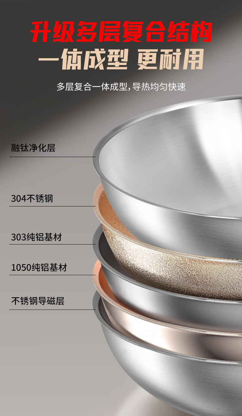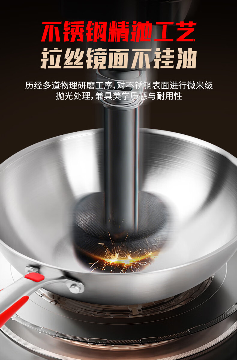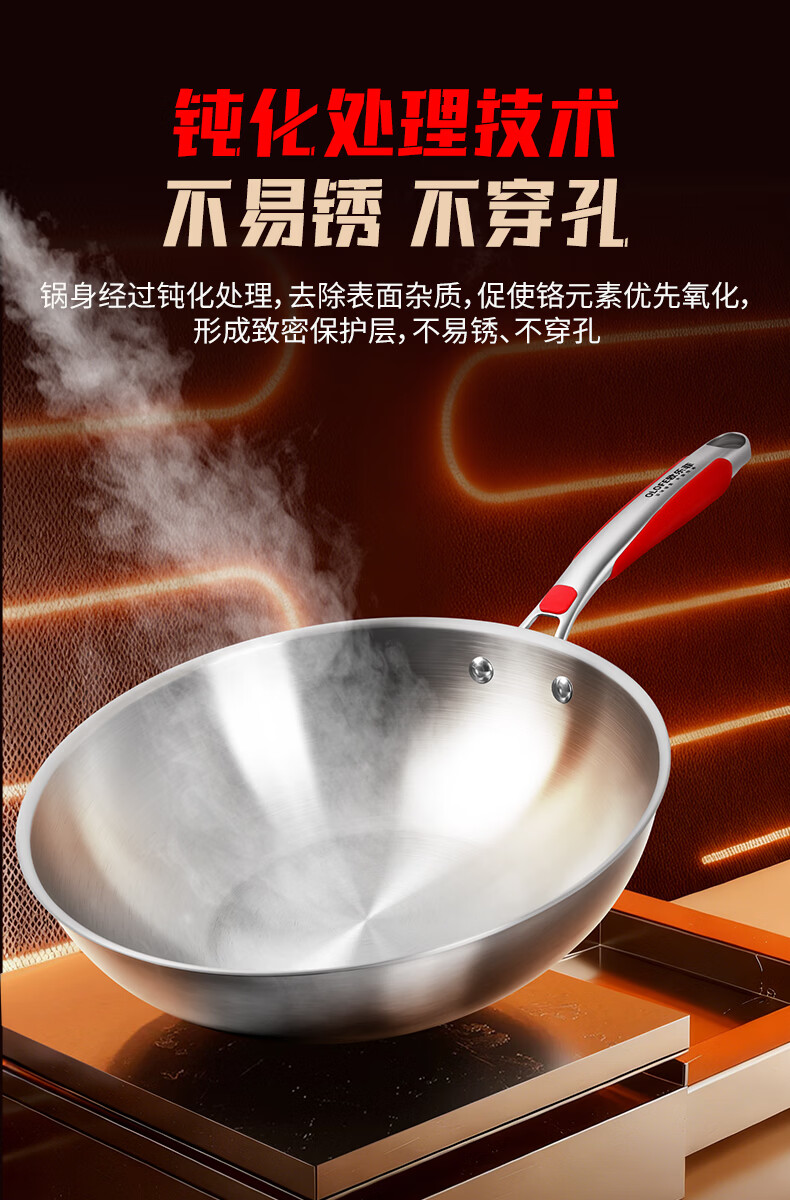 欧乐菲(OLOFE)0涂层不锈钢钛炒锅第七代中式晶刚钛镜面家用平底轻便炒菜锅32cm 【第七代】免开锅 32cm