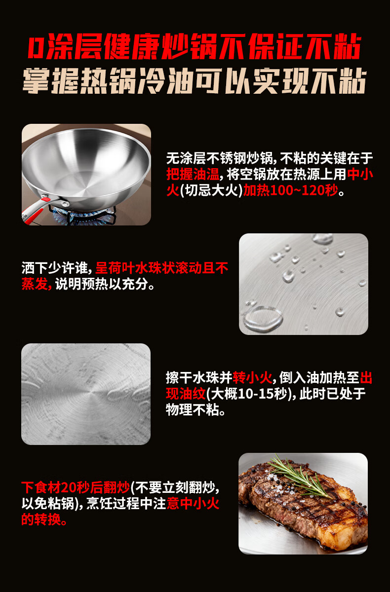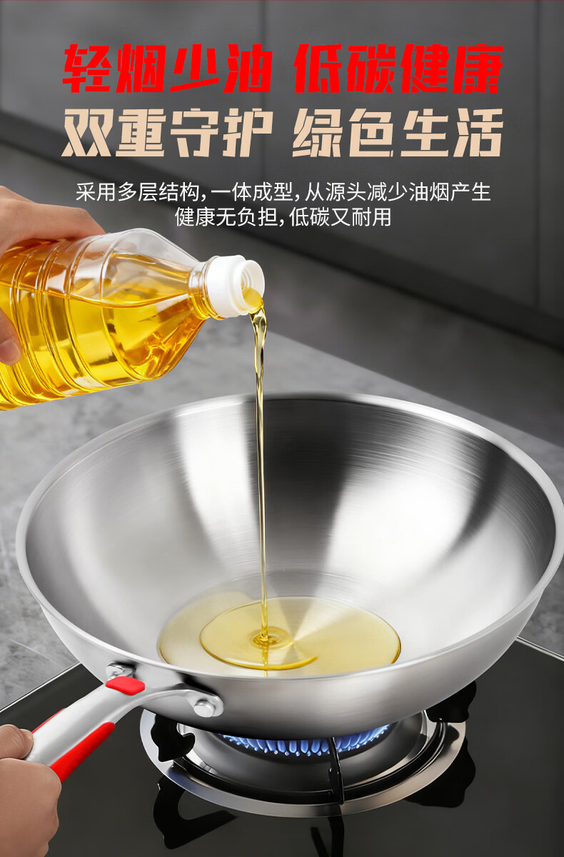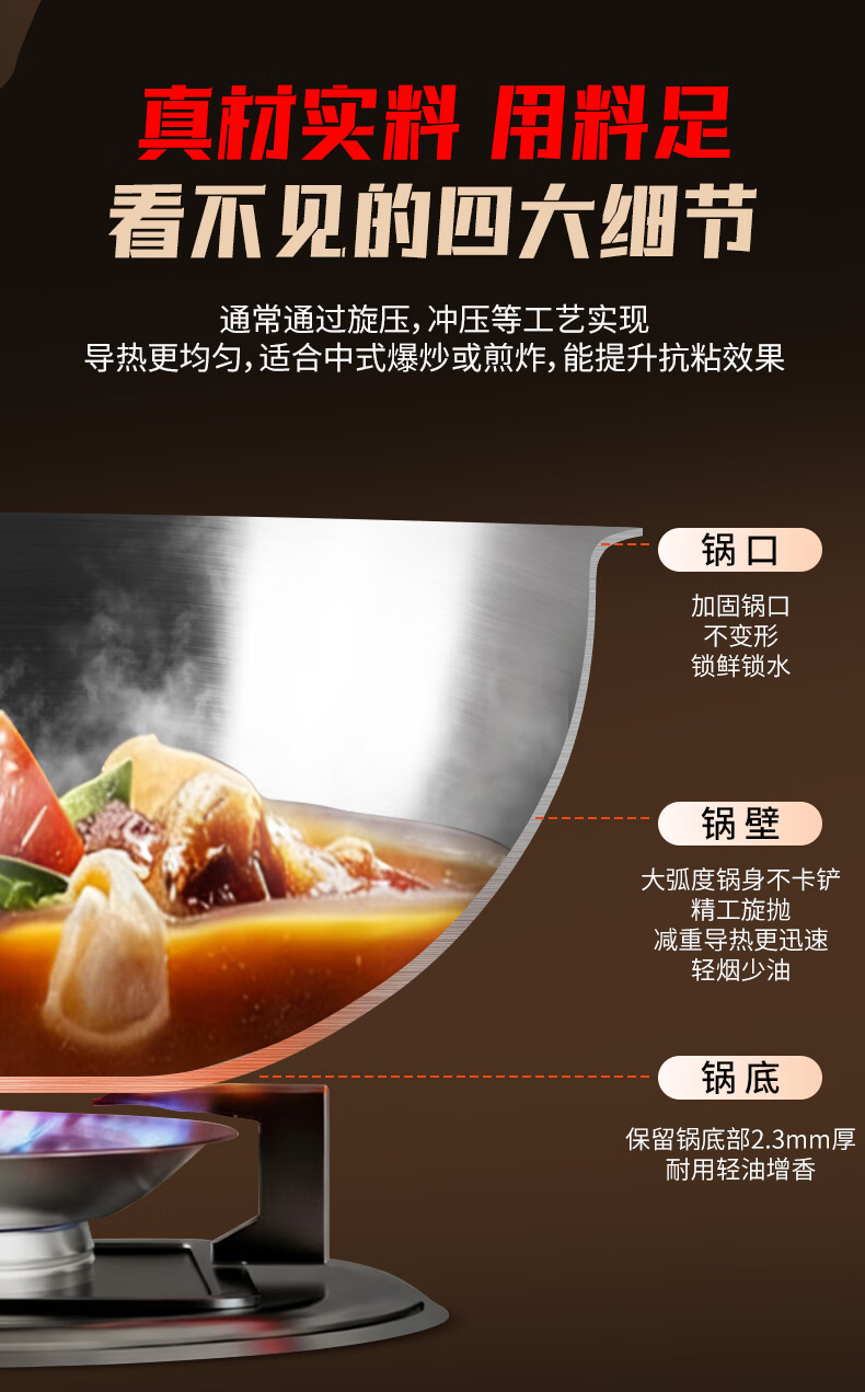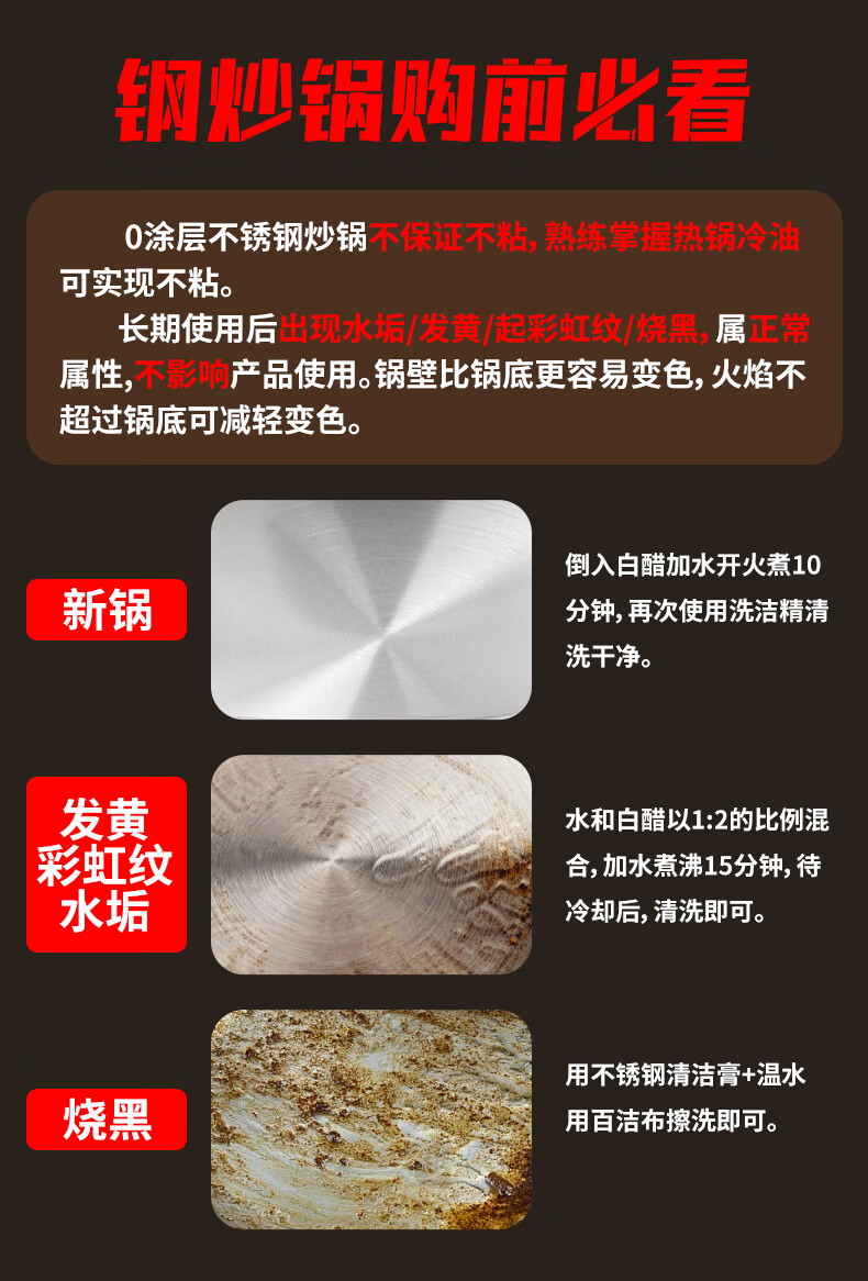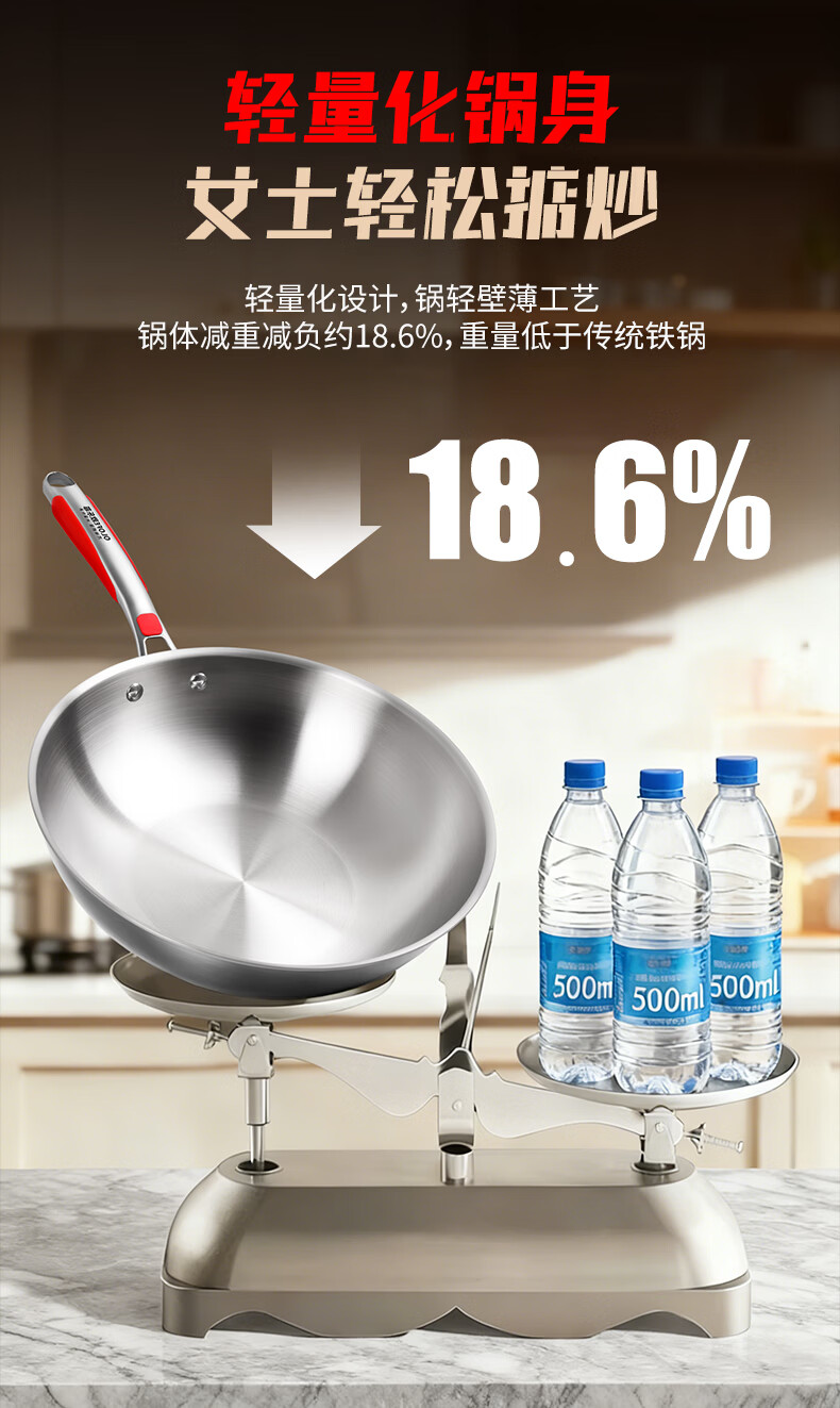 欧乐菲(OLOFE)0涂层不锈钢钛炒锅第七代中式晶刚钛镜面家用平底轻便炒菜锅32cm 【第七代】免开锅 32cm