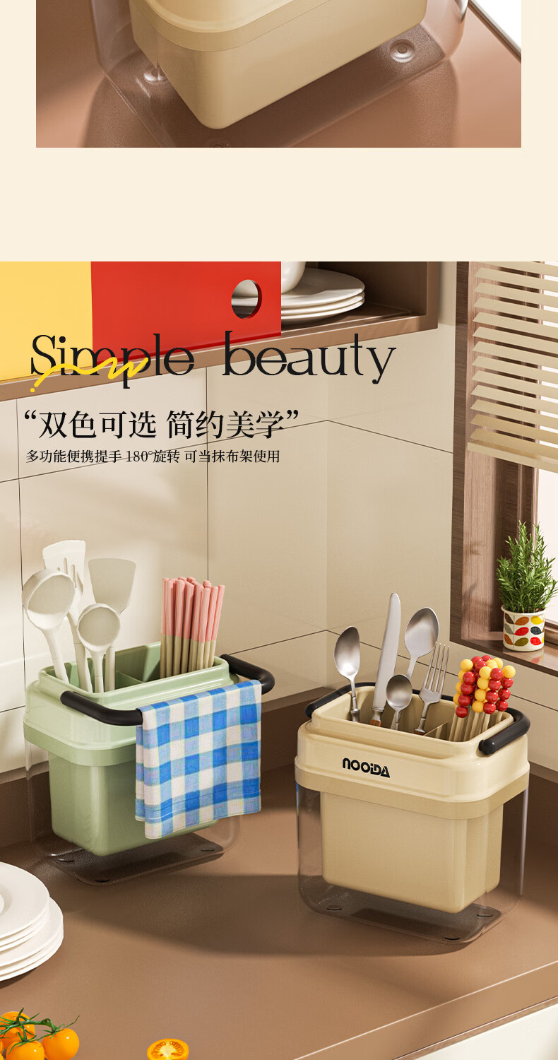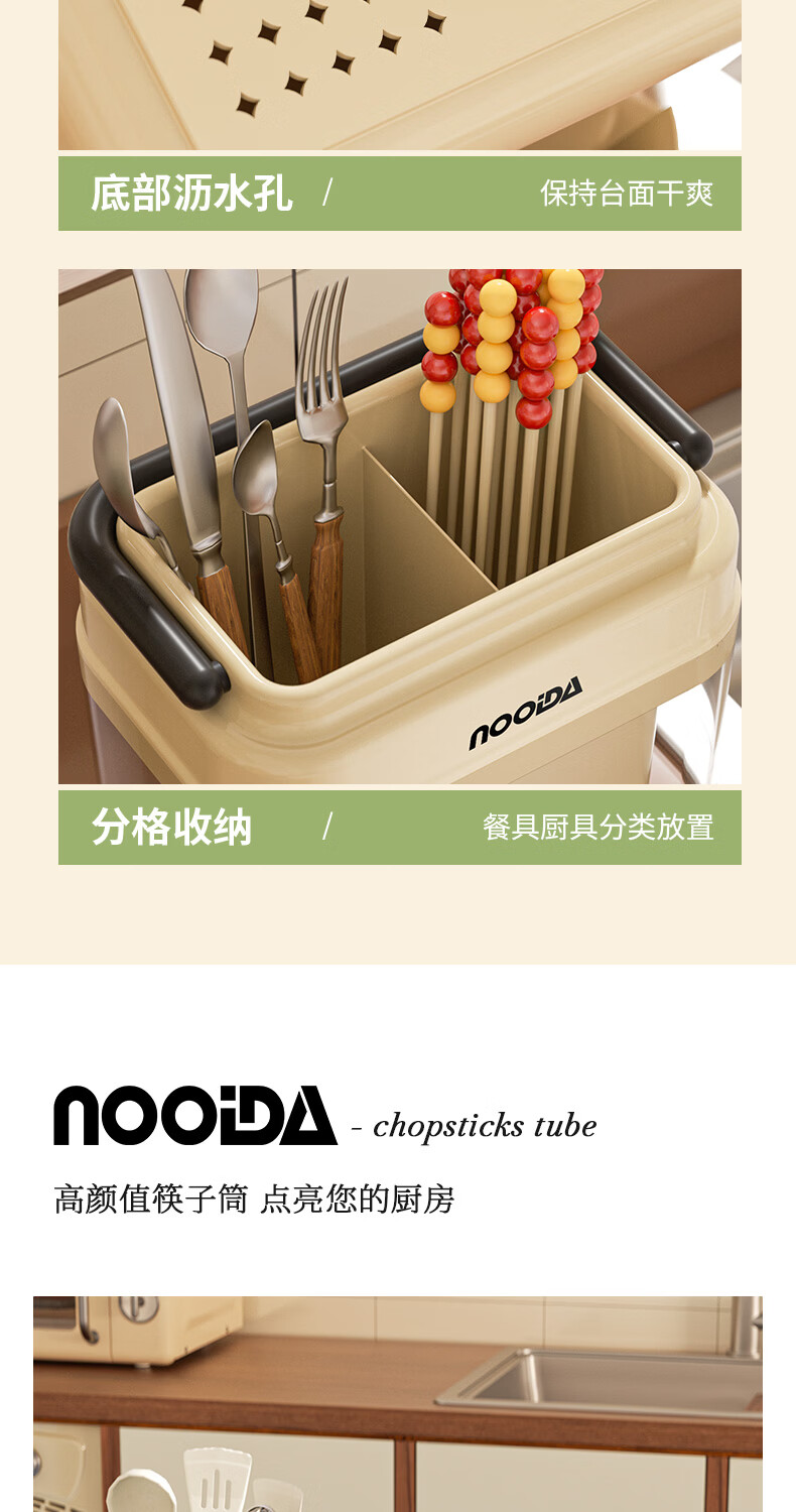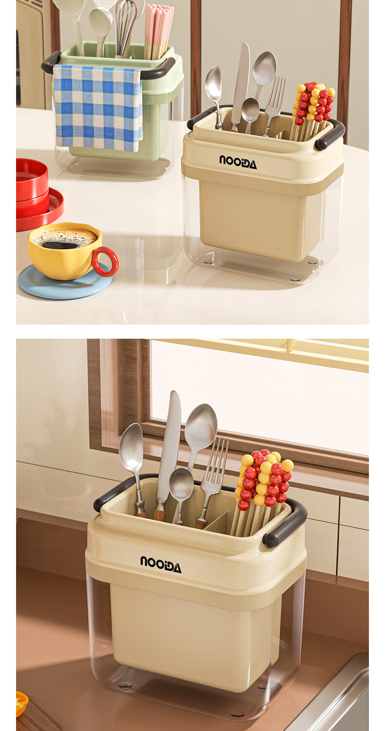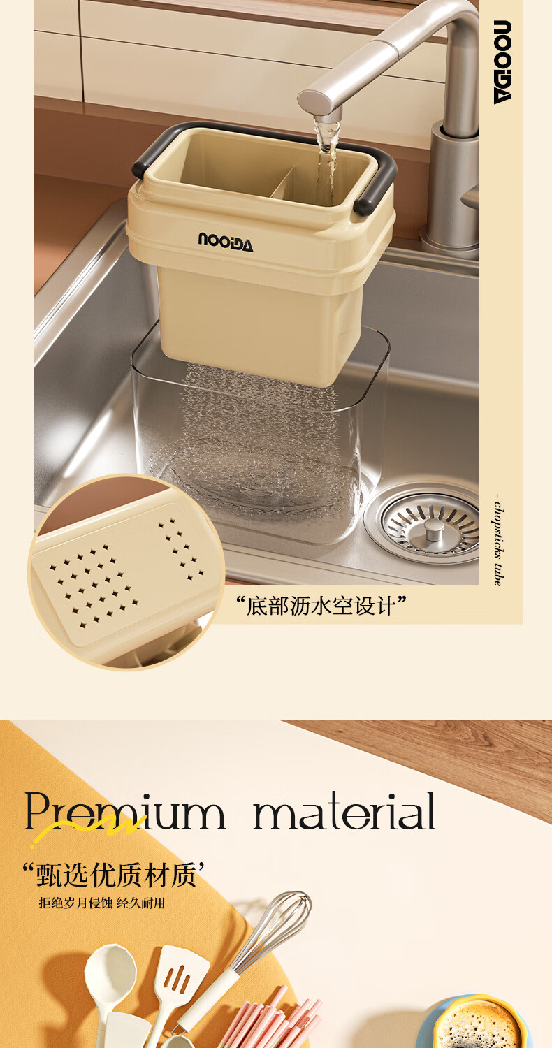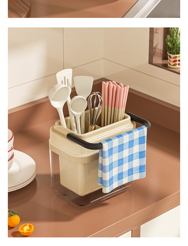 稻草熊筷子架免打孔厨房家用收纳架子沥水一体筷子筒简约轻奢多功能筷笼 黄色