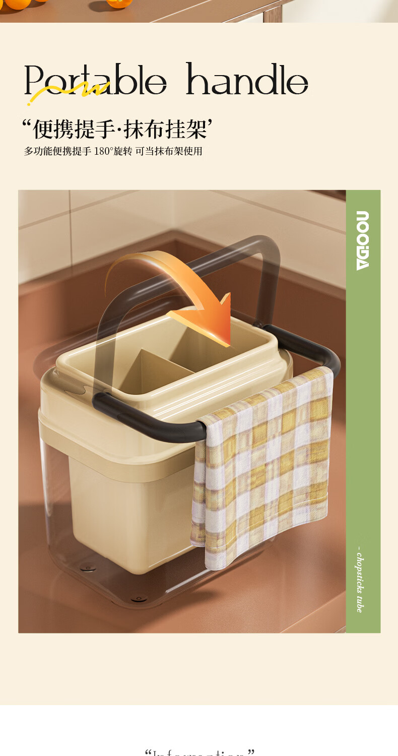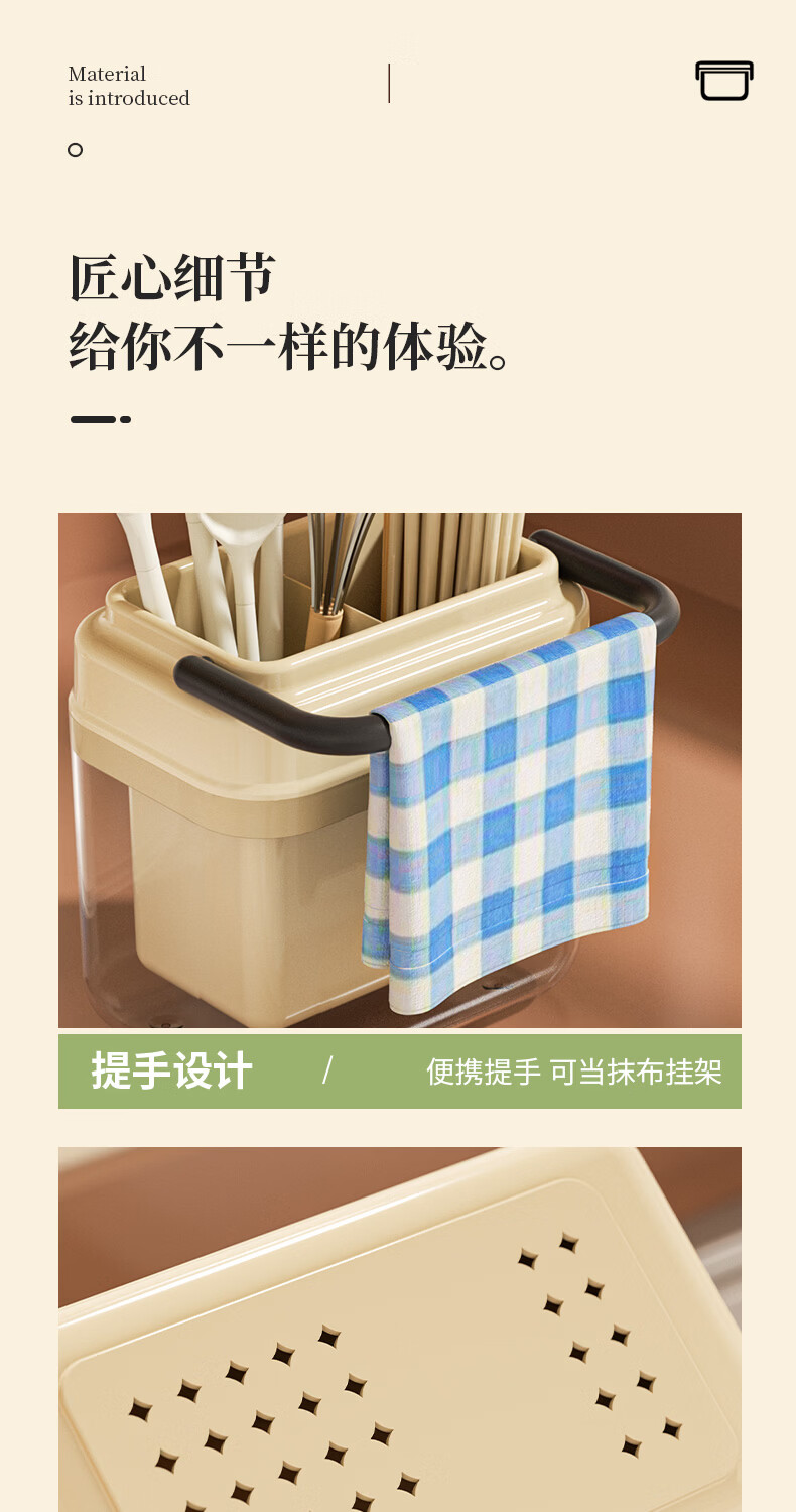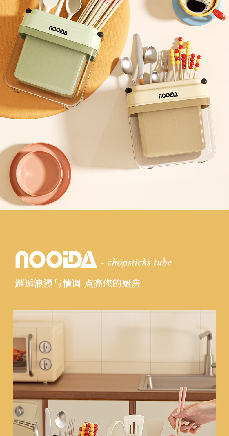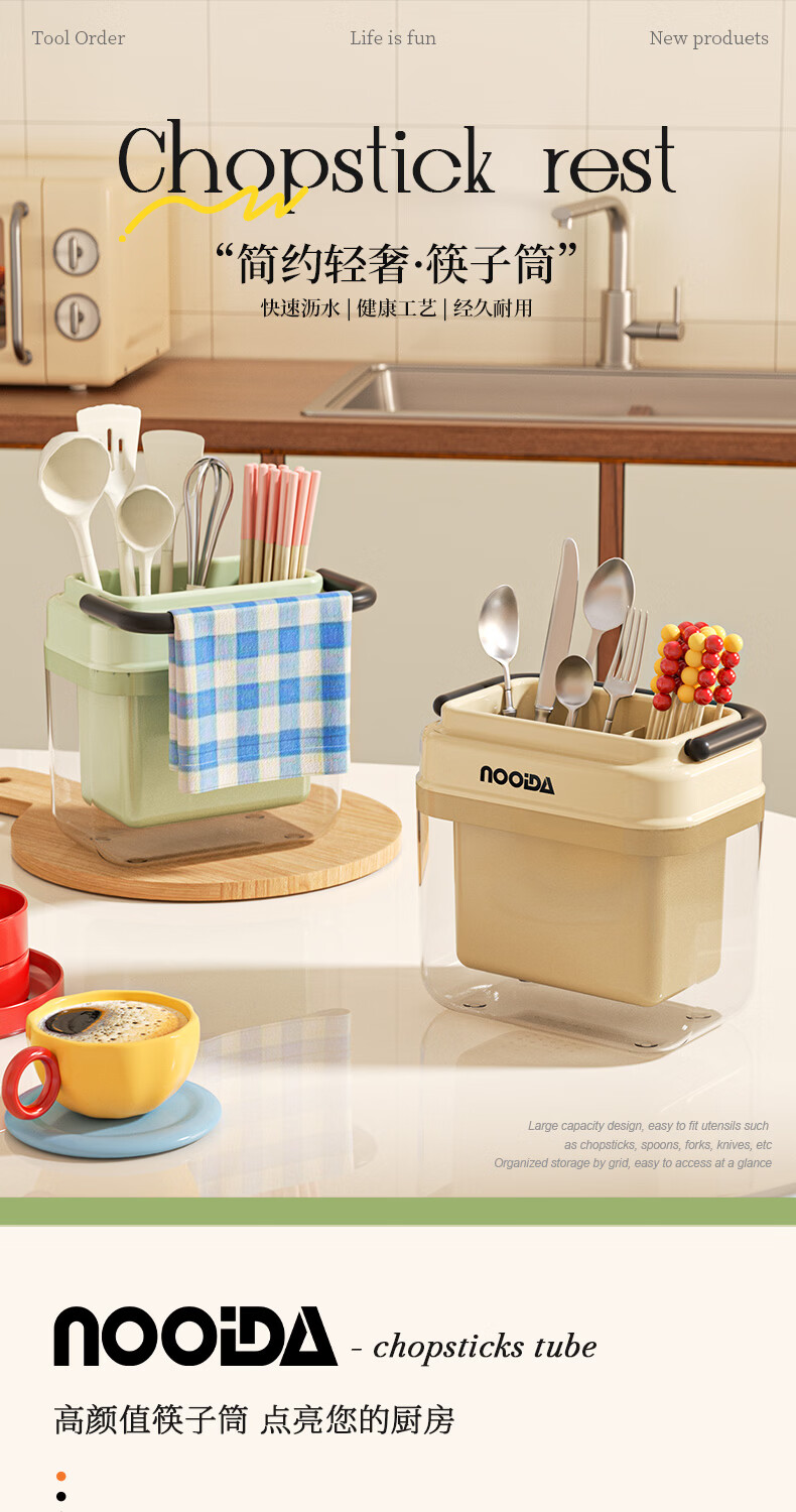 稻草熊筷子架免打孔厨房家用收纳架子沥水一体筷子筒简约轻奢多功能筷笼 黄色