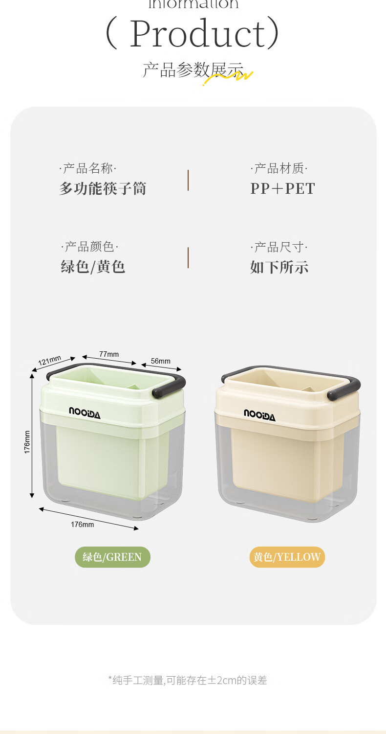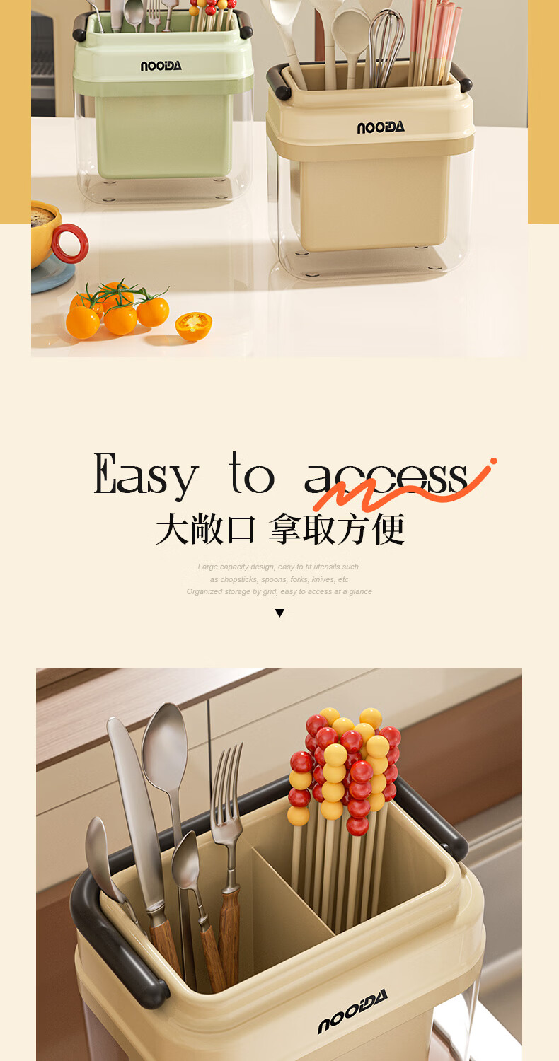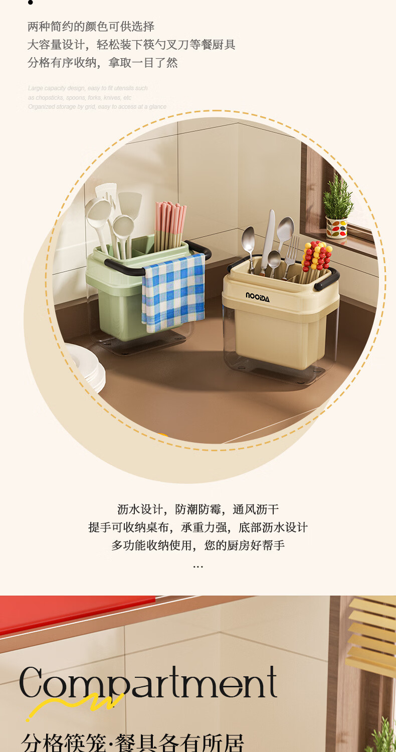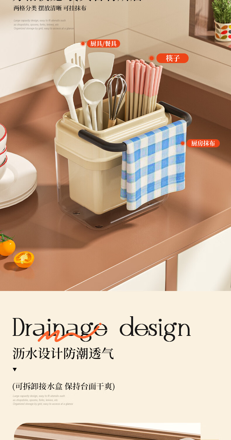 稻草熊筷子架免打孔厨房家用收纳架子沥水一体筷子筒简约轻奢多功能筷笼 黄色