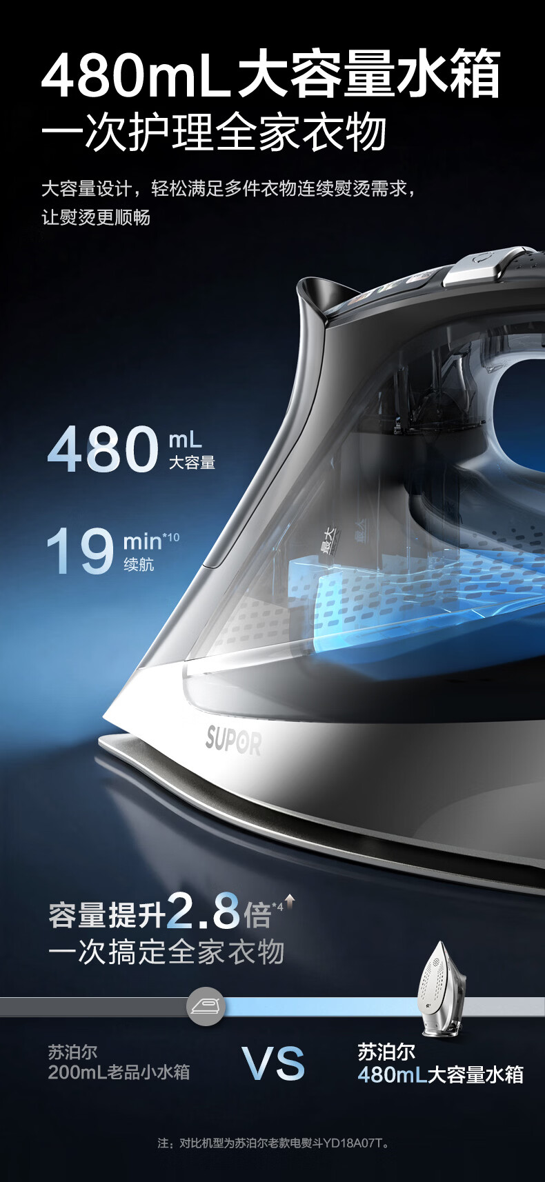 苏泊尔(SUPOR)【有钛陶晶】蒸汽电熨斗190g/min家用大功率小型便携式熨烫机拼豆烫斗烫衣服熨被子318A礼品团购