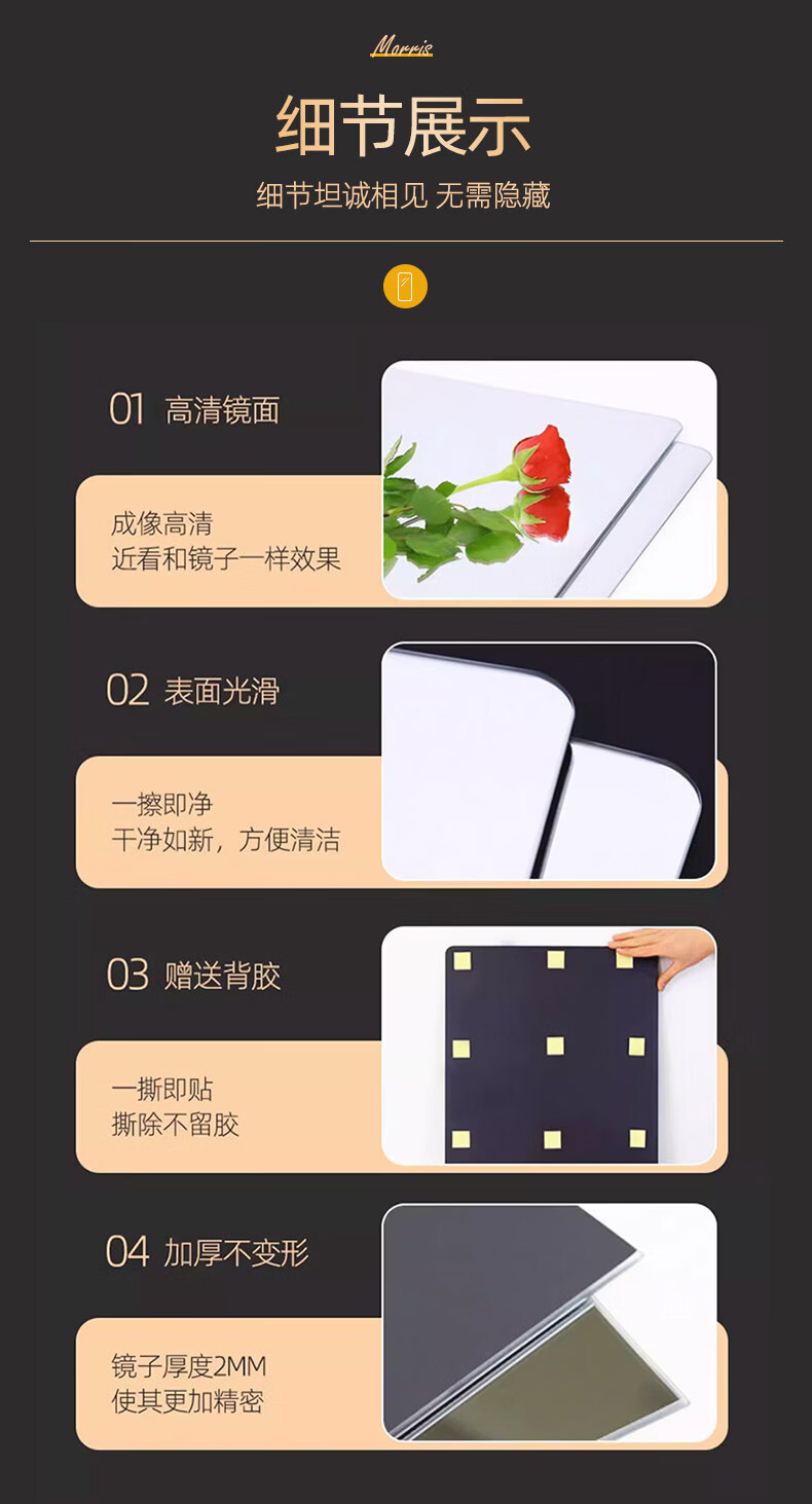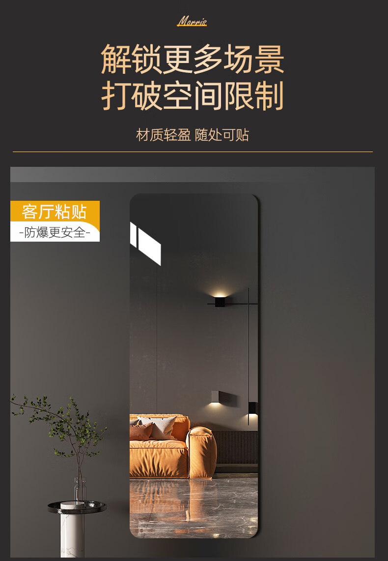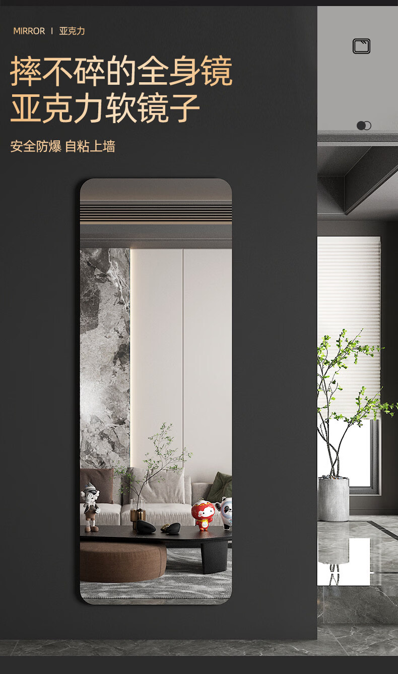 诗元无框软镜子贴墙自粘家用不变形真实全身镜墙面贴柜门大尺寸穿衣镜 【90%贴衣柜选择】圆角款35*120cm【高清呈像不变形】