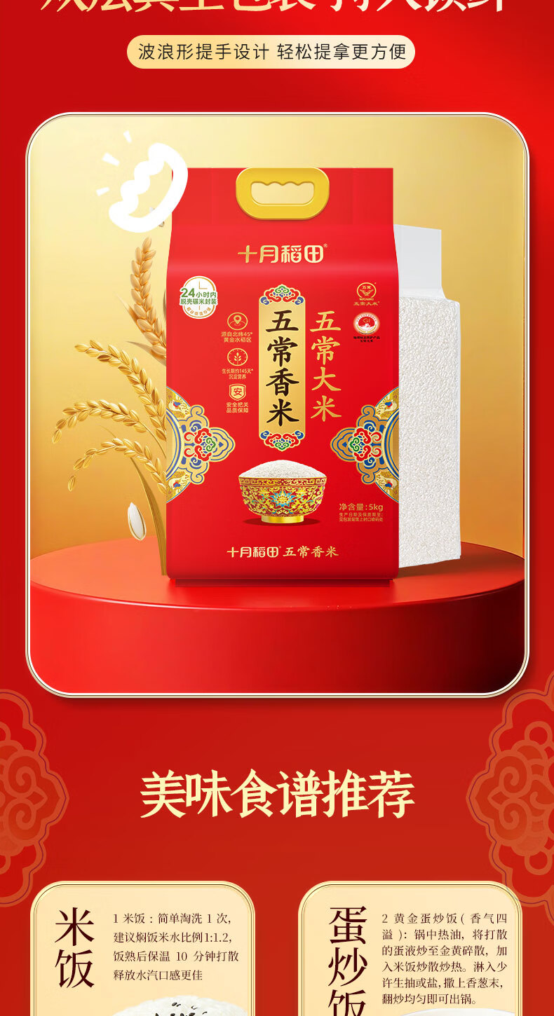 十月稻田 香稻贡米5kg 寿司香米 东北大米10斤 团购福利 年货送礼