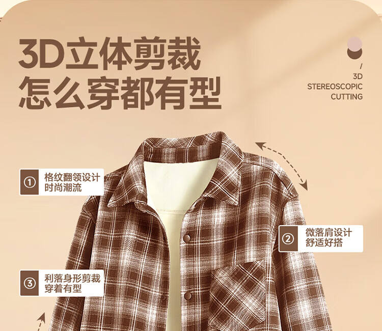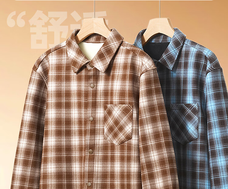 真维斯(Jeanswest)2026美式格子衬衫男士秋季通勤百搭法兰绒青少年翻领衬衣休闲外套 米咖格 3XL