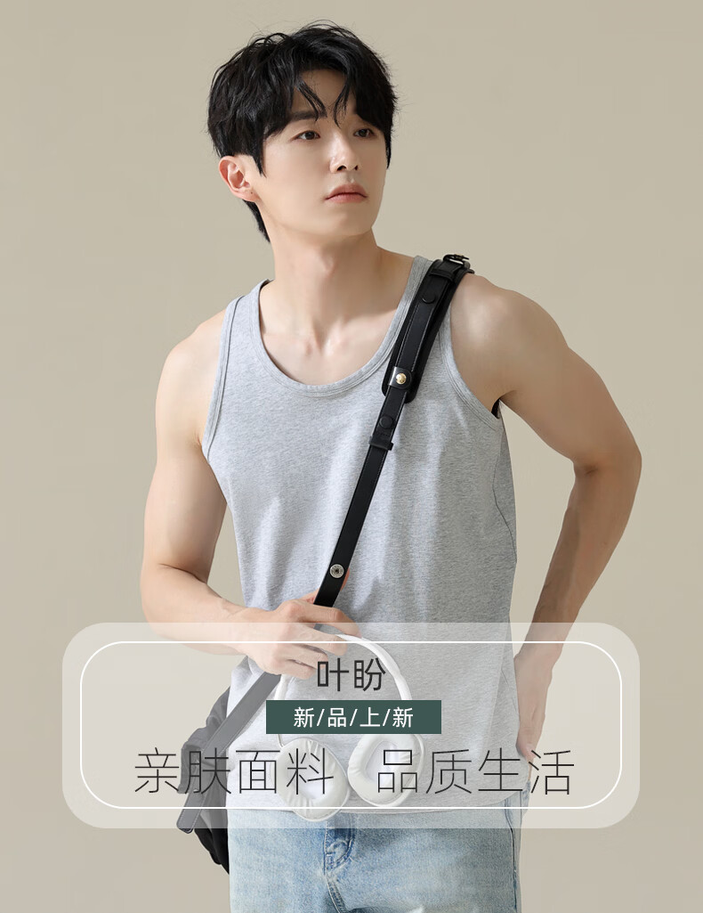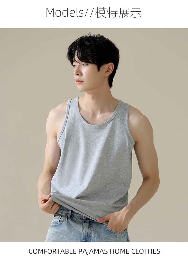 叶盼(yepan)【凉感】睡衣男夏季背心单件无袖薄款夏天莫代尔男士家居服可外穿 11001-花灰 L (170) :建议100-120斤穿着