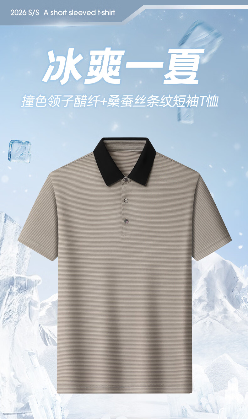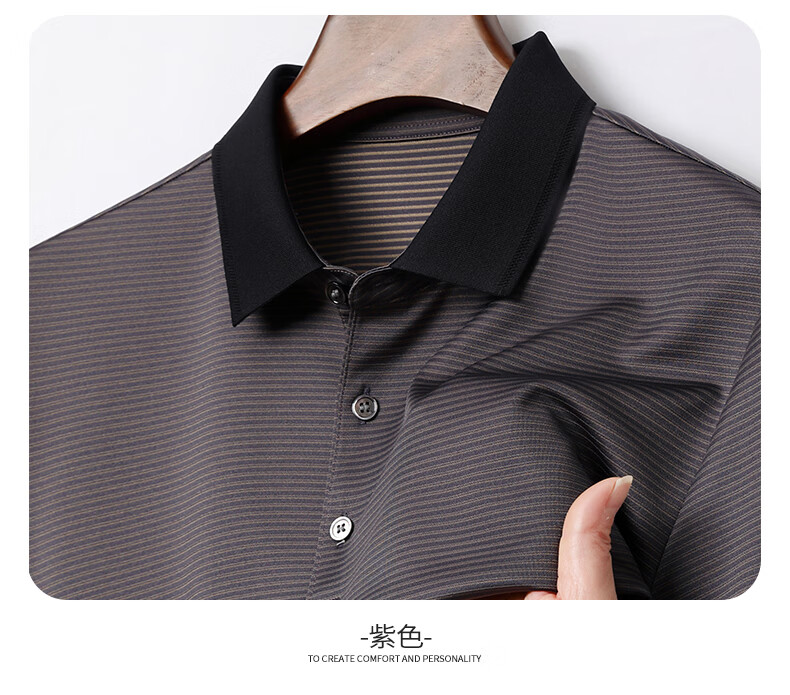 SHANSHAN杉杉【桑蚕丝+醋酯】短袖T恤男夏季新款商务休闲男士Polo衫男上衣 紫色 S /165