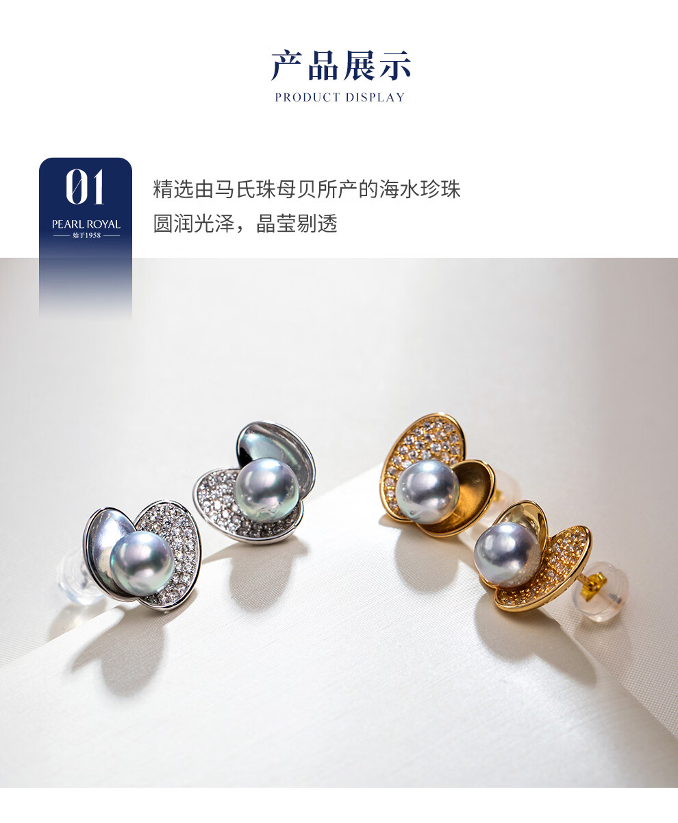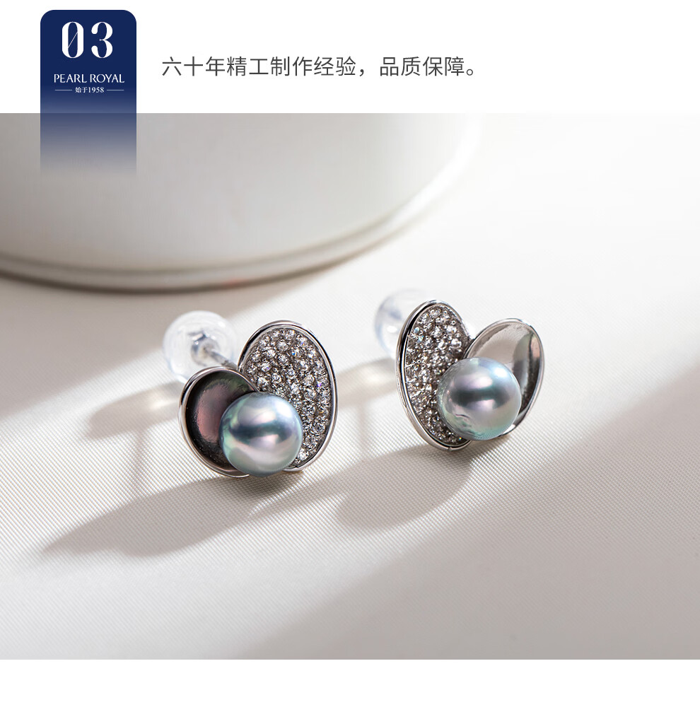 南珠宫流光18K金大溪地海水珍珠耳环强光圆形精致百搭生日礼物送老婆 银色款 8.0-9.0mm