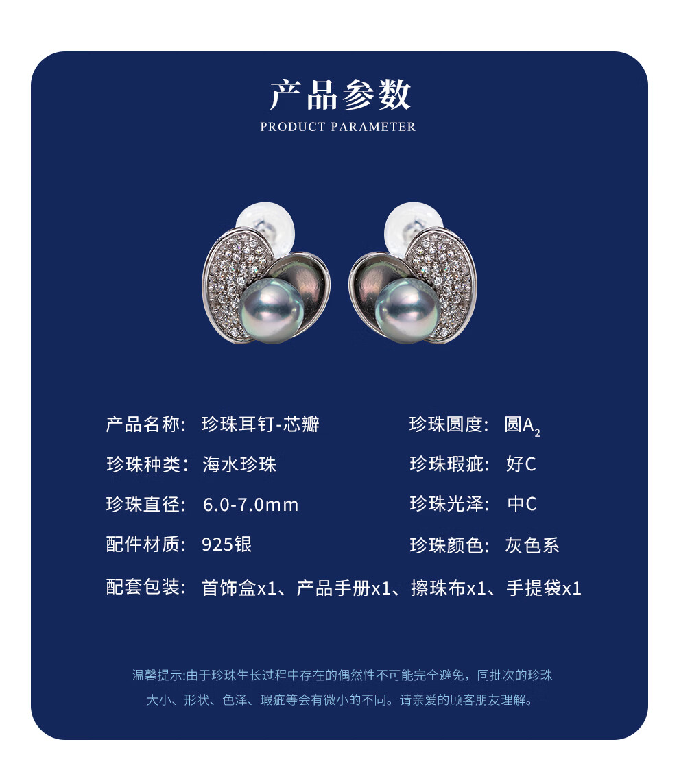 南珠宫恋光925银海水珍珠耳环南洋金珠耳钉强光近圆轻奢生日礼物送女友 10.0-11.0mm 925银海水珍珠耳环