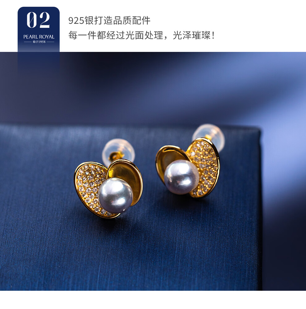 南珠宫芯瓣925银海水珍珠耳环镜面强光真多麻耳钉生日礼物送女友 金色款 6.0-7.0mm