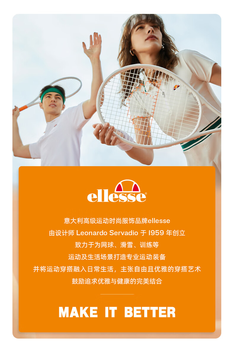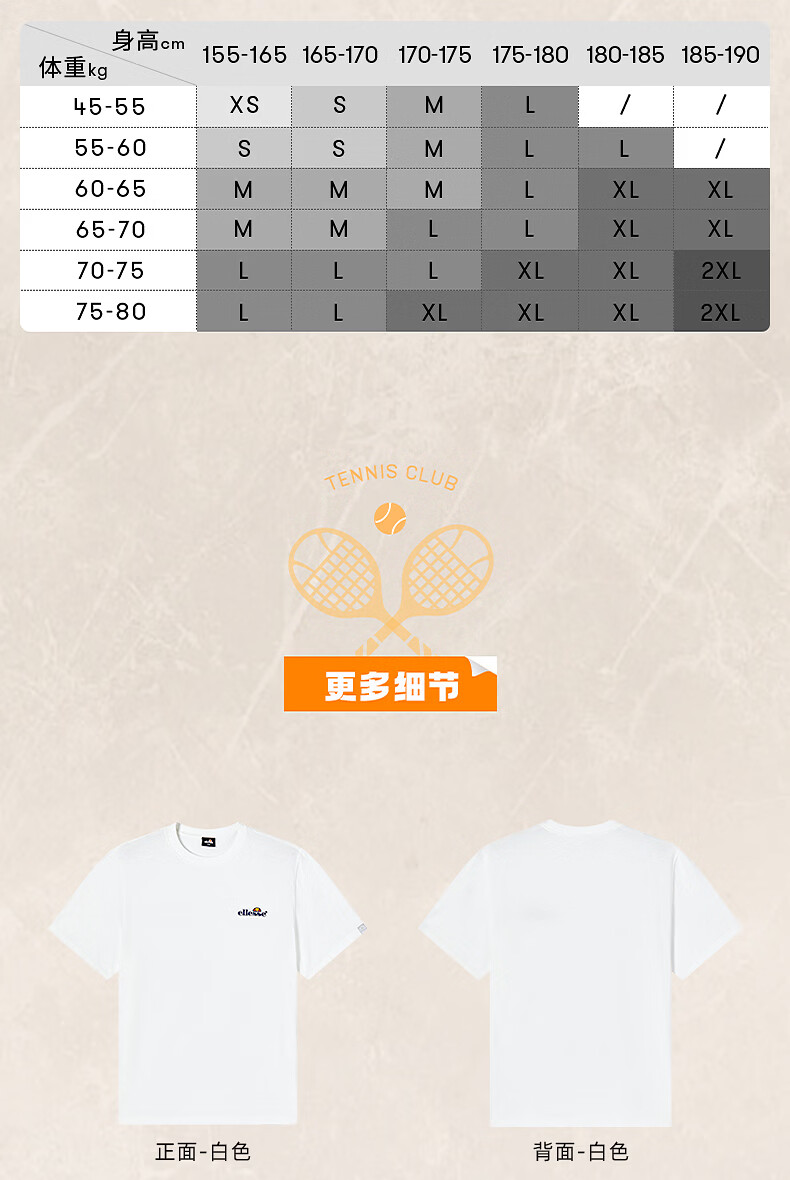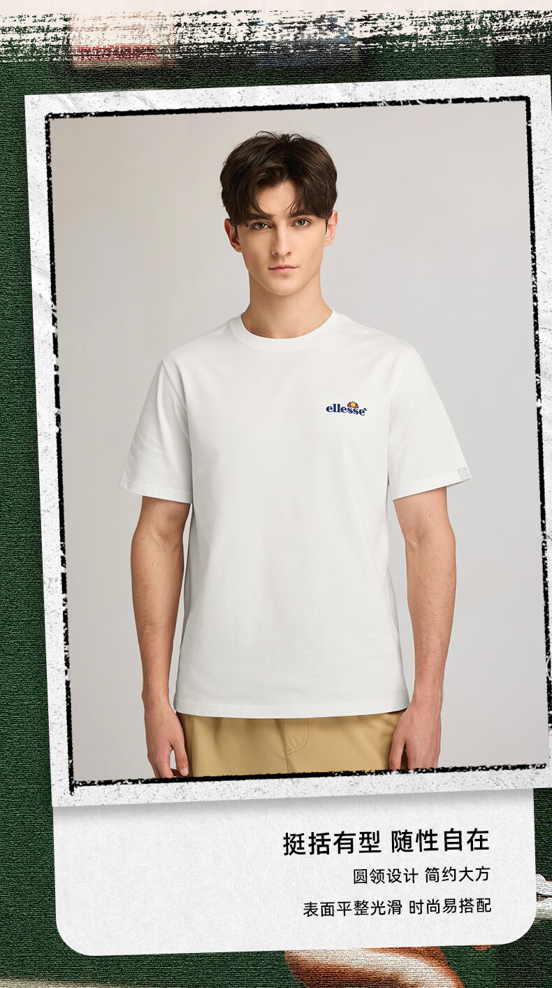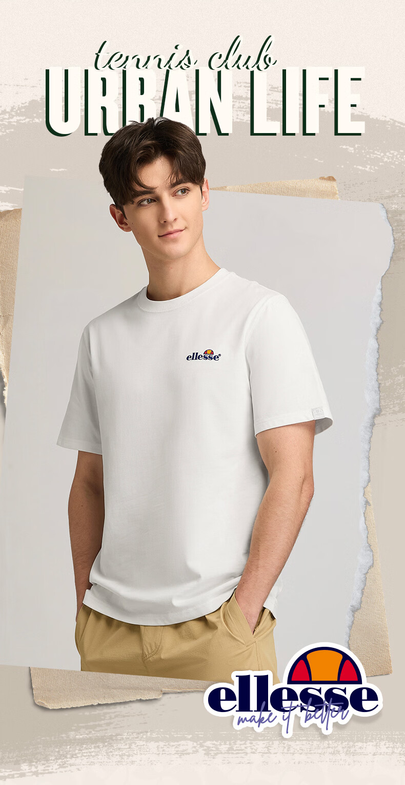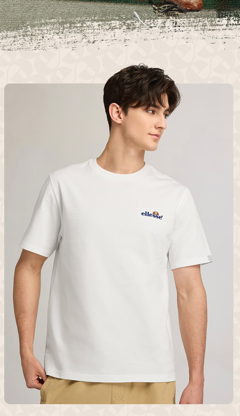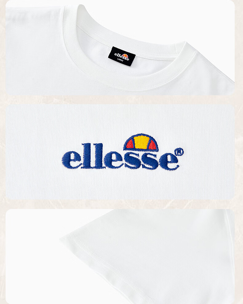 ellesse小贝壳官方T恤男情侣夏季新款圆领全棉上衣女 白色 L