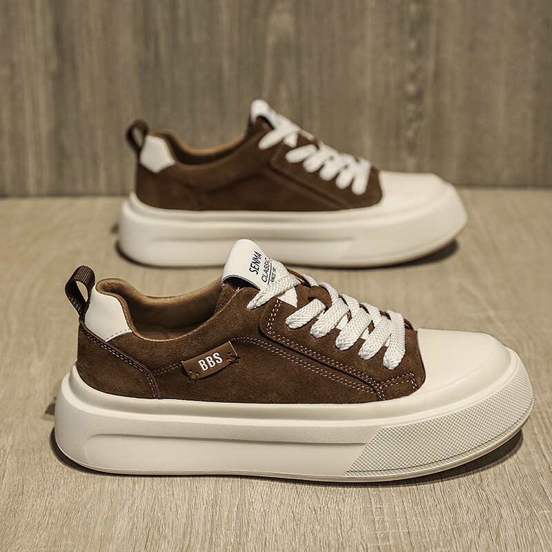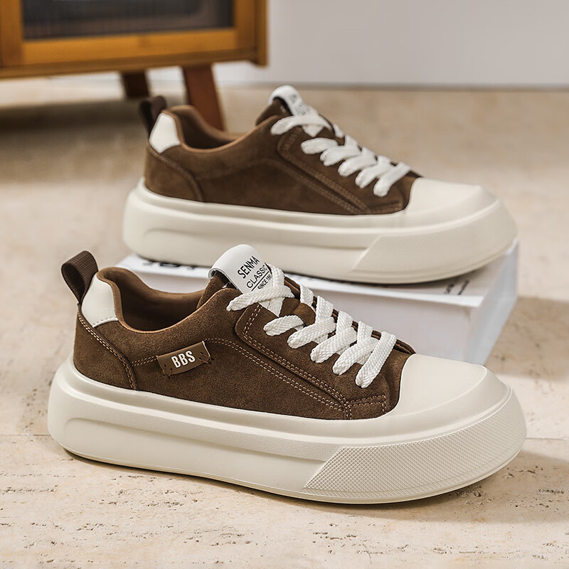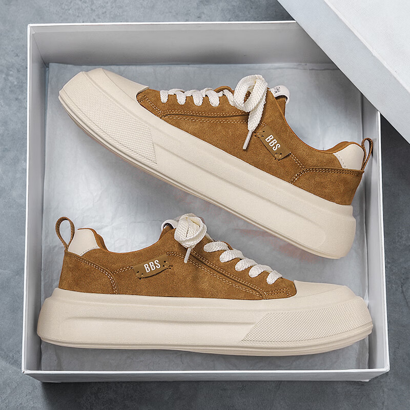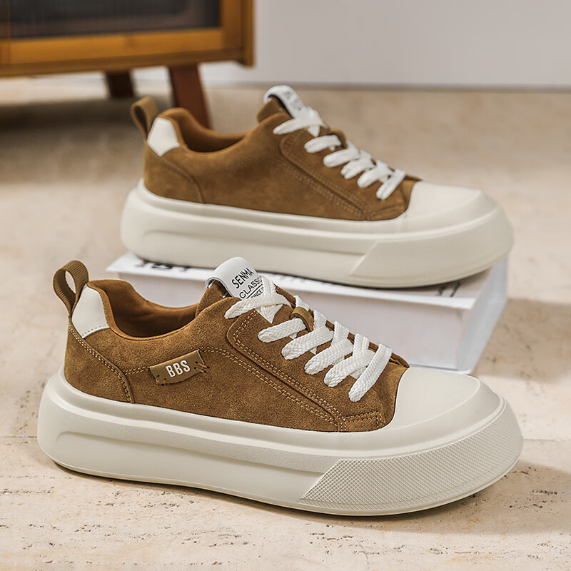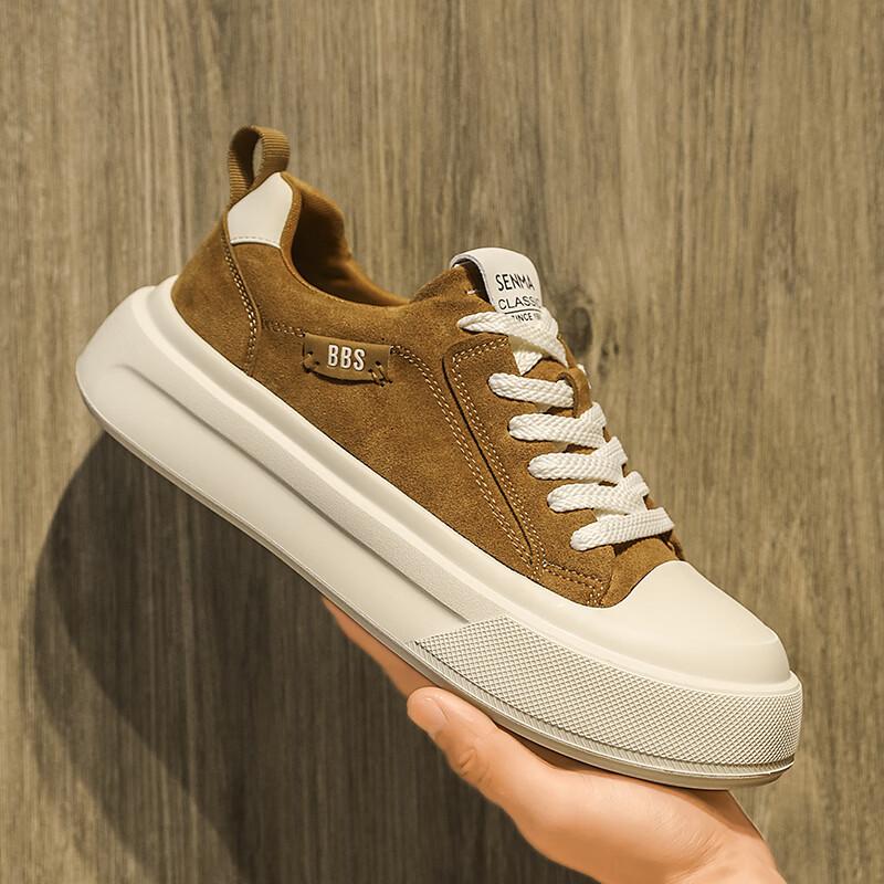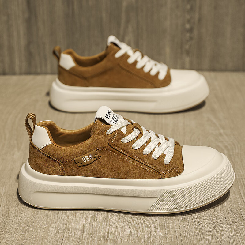 森馬男鞋2026新款春季潮流百搭休闲板鞋男士软底防滑耐磨小麦色运动鞋 卡其【基础款】 42 标准码数/现货秒发