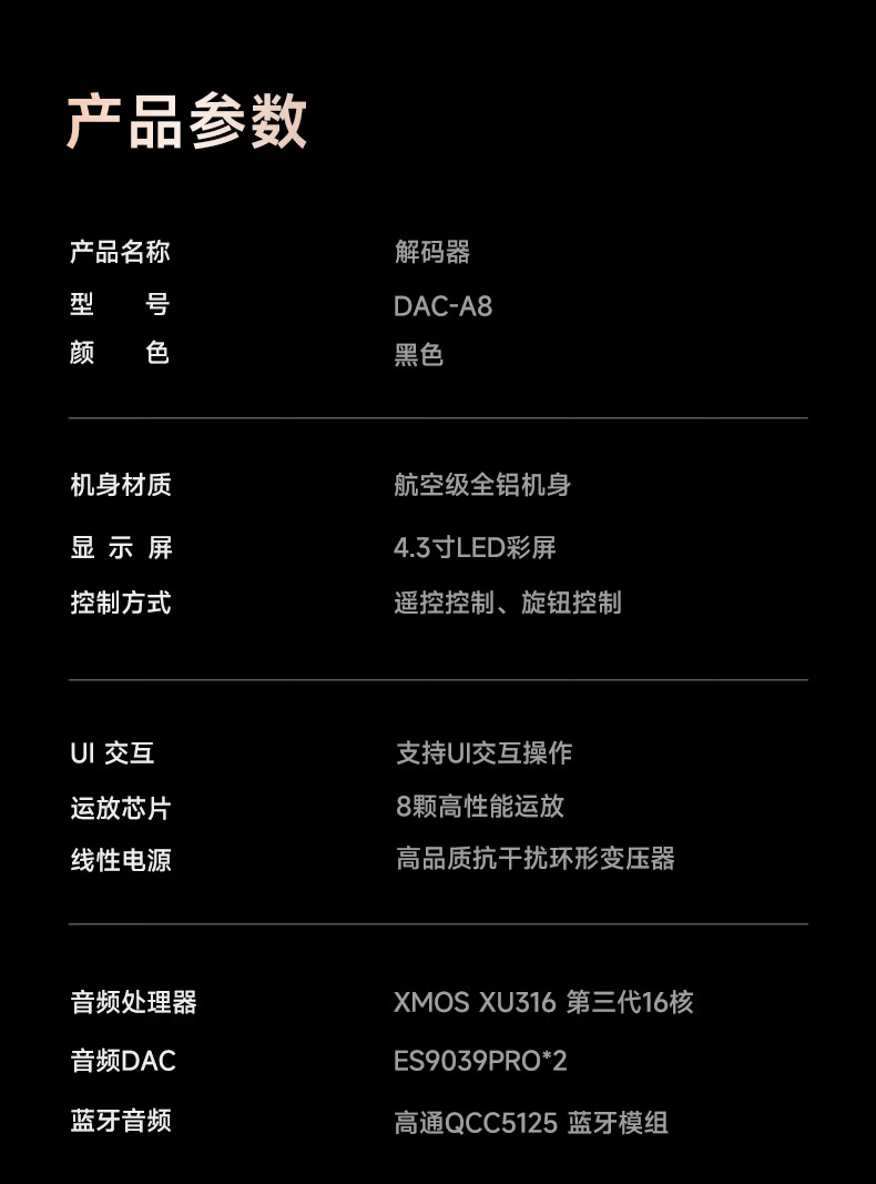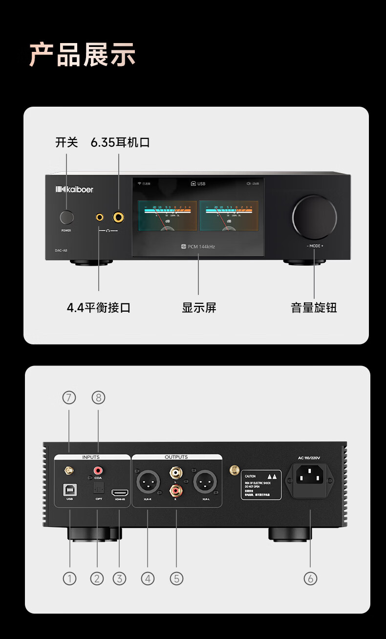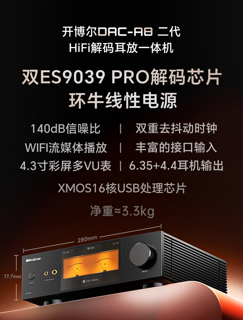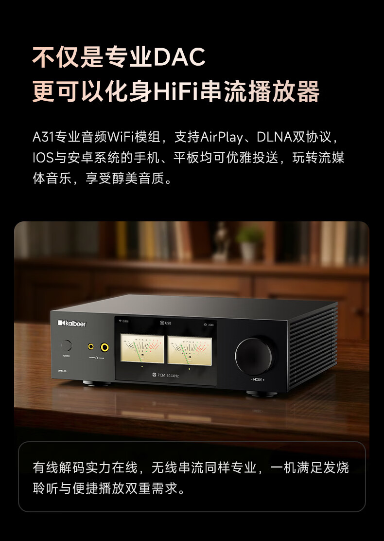 开博尔(Kaiboer)DAC-A8数字音频dac专业音频网络串流台式解码器 双9039Pro前极音频蓝牙dsd无损发烧级hifi播放器