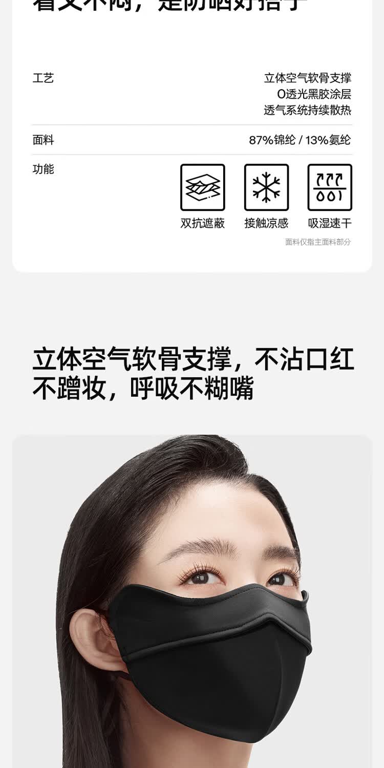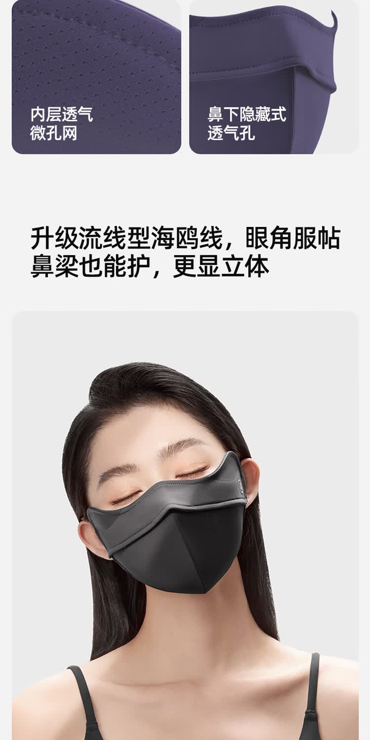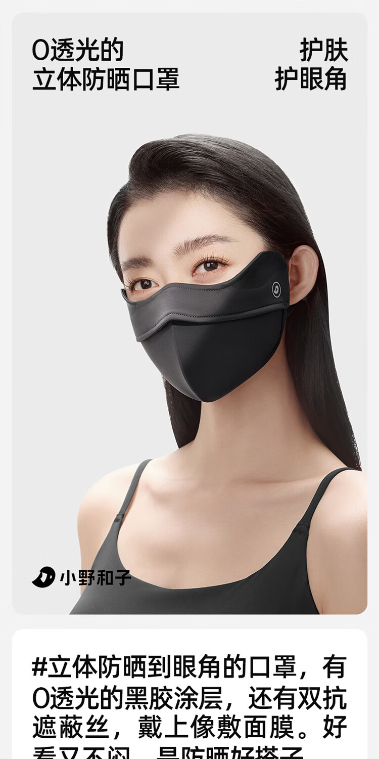小野和子防蹭妆3d立体透气2025新款护眼角防紫外线夏季透气面罩a1 曜石黑