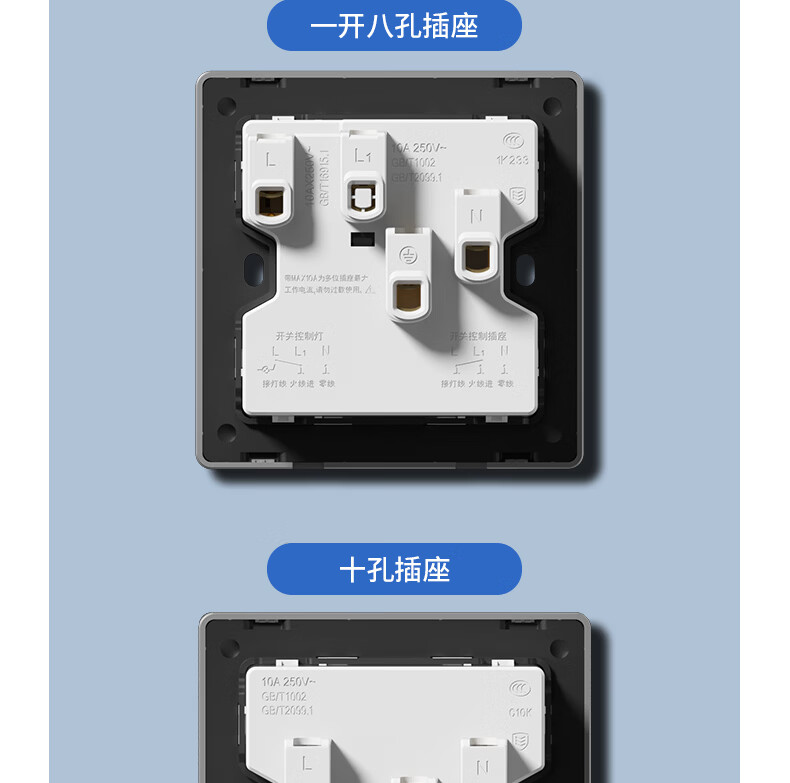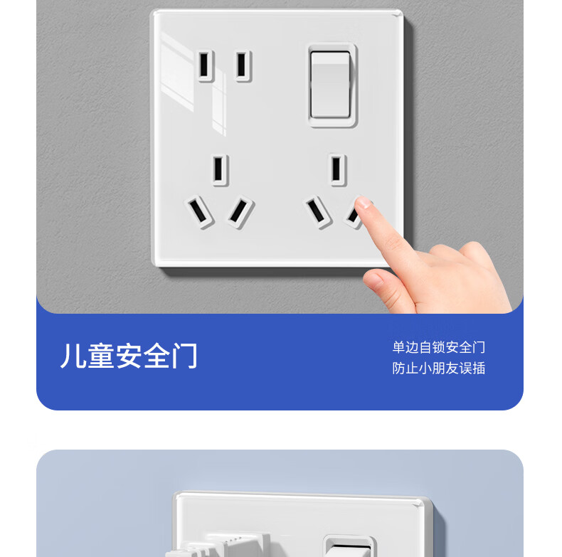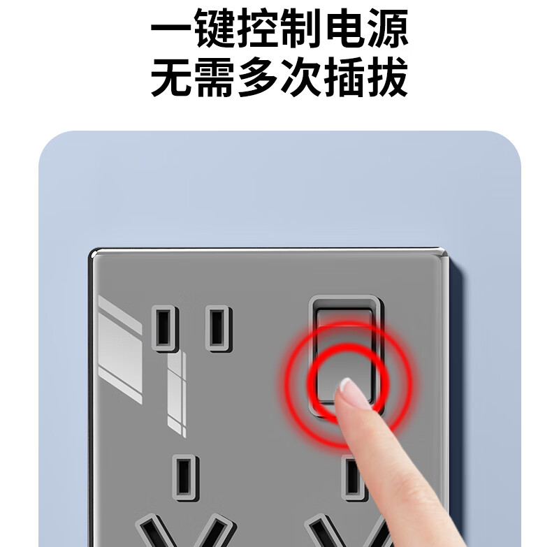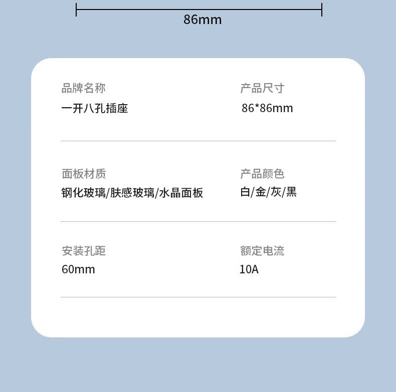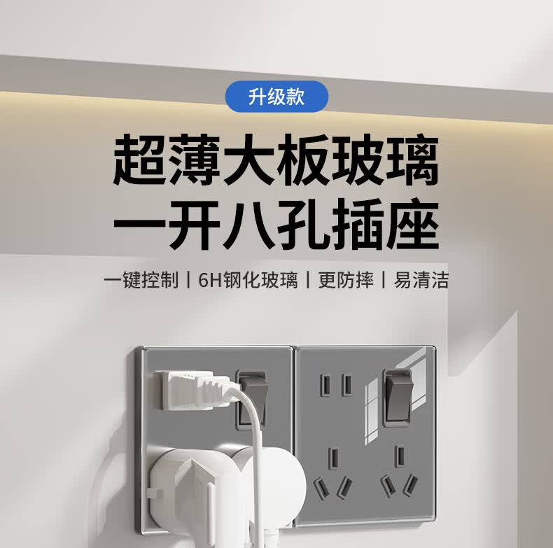 国际电工钢化玻璃一开八孔开关插座面板超薄十孔大间距多孔插座带开关总控 钢化玻璃一开八孔【白色】