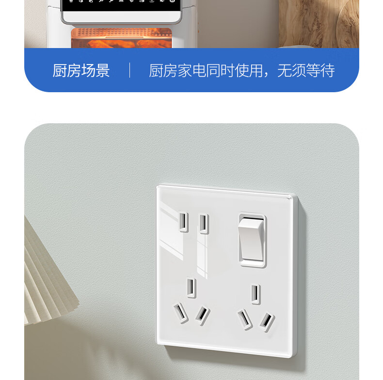 国际电工(FDD)原位扩展插座86型家用厨房分控带开关插排多功能USB快充拓展排插 白色带USB-三开21孔-向左扩展(2.1A)