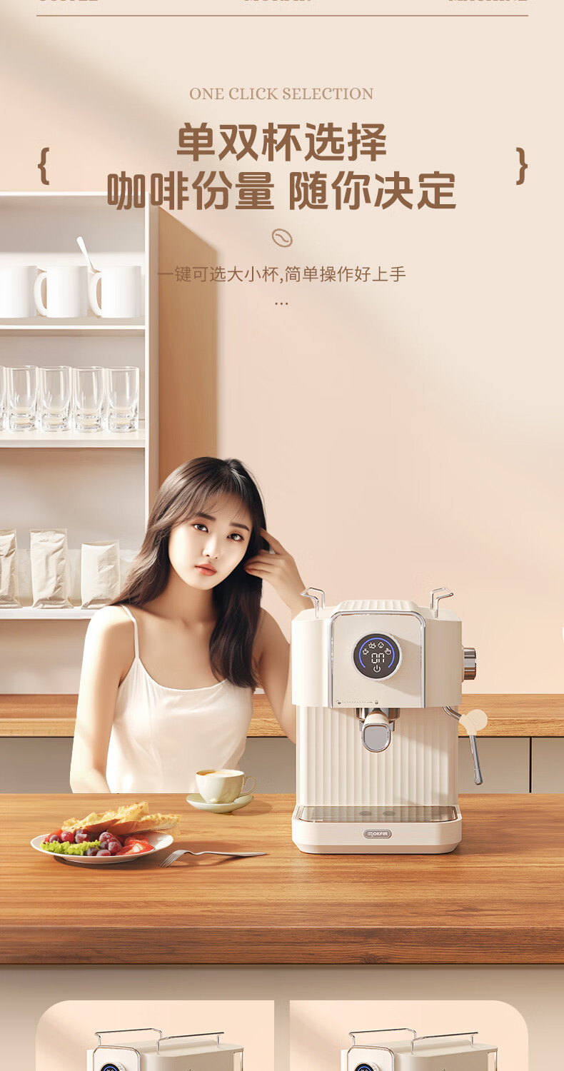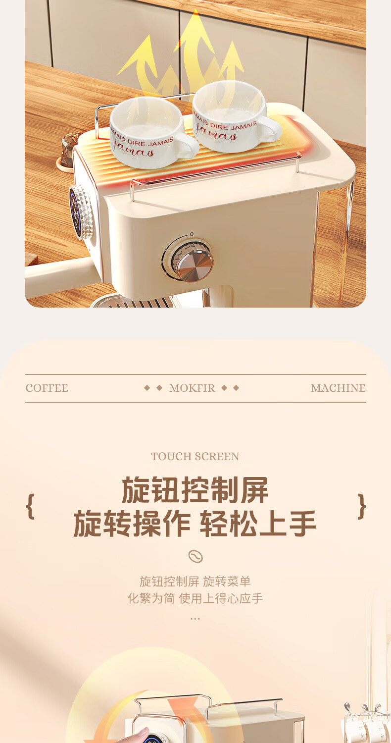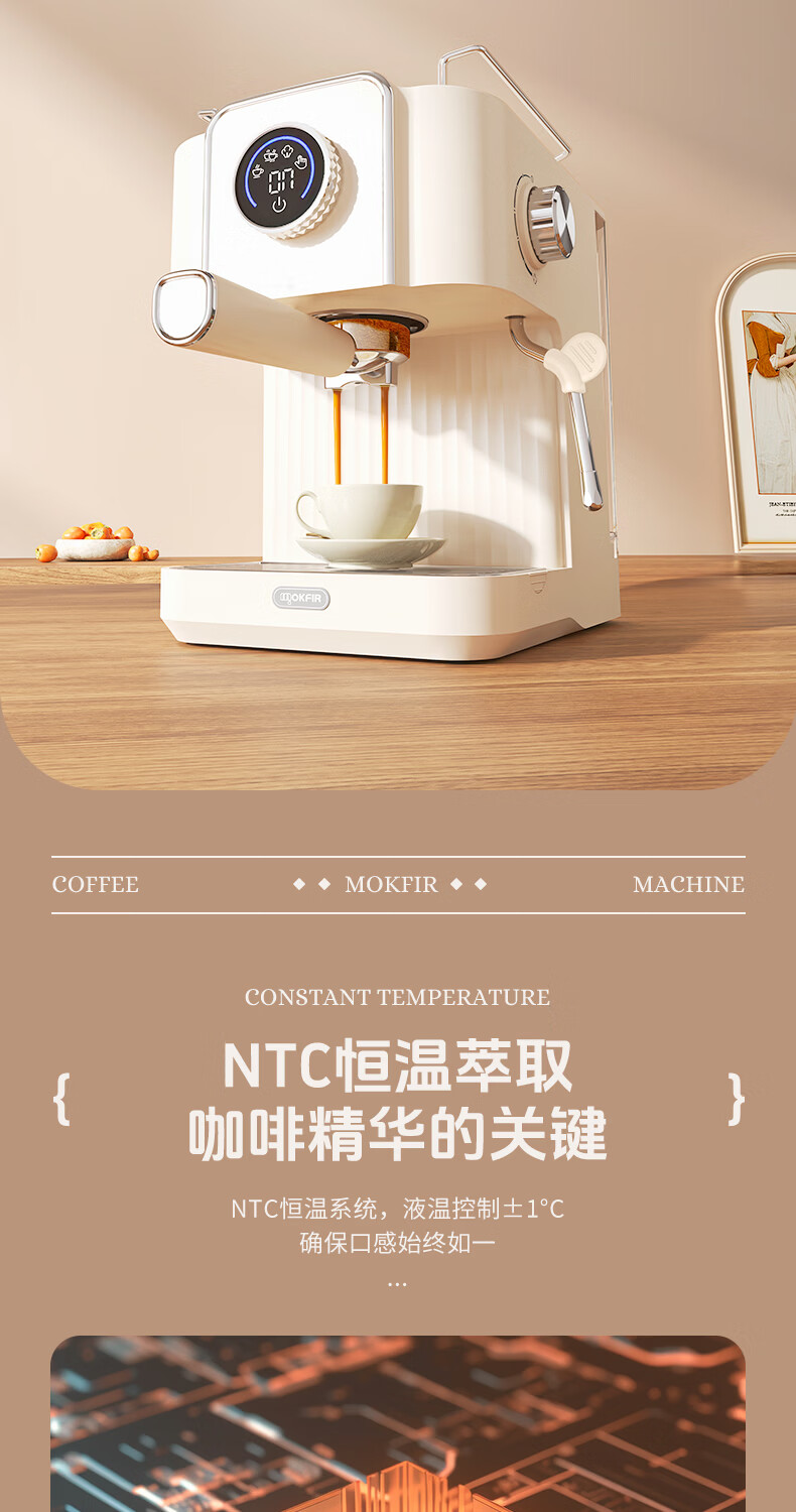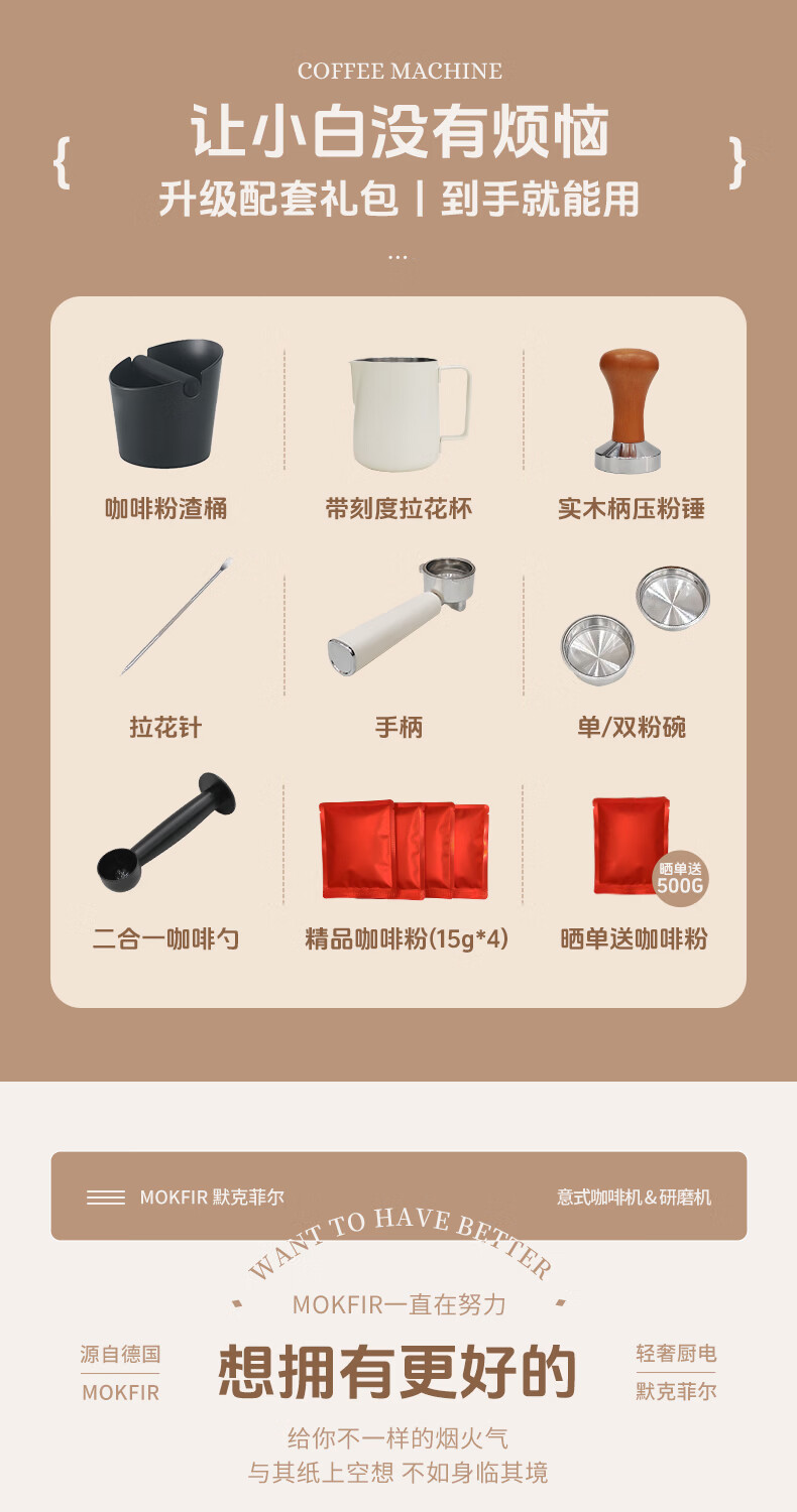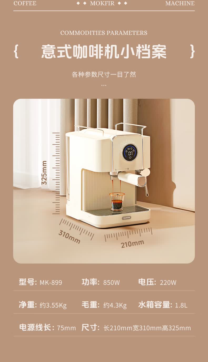 默克菲尔意式咖啡机家用 半自动 打奶泡