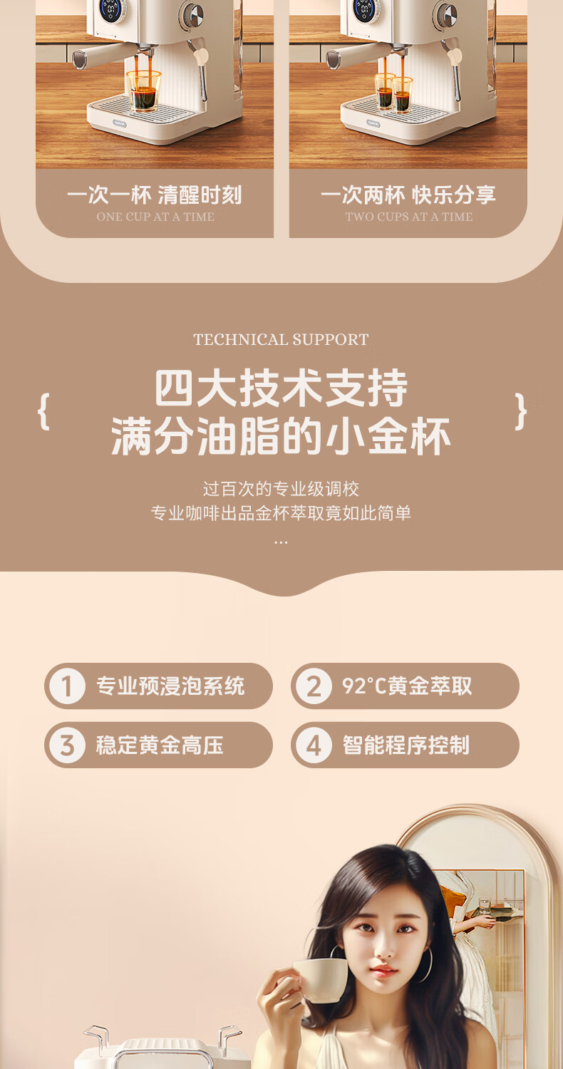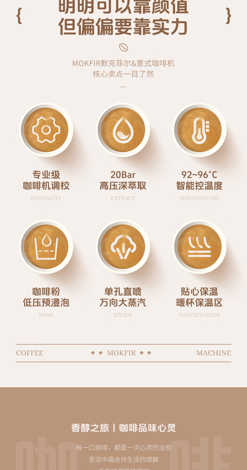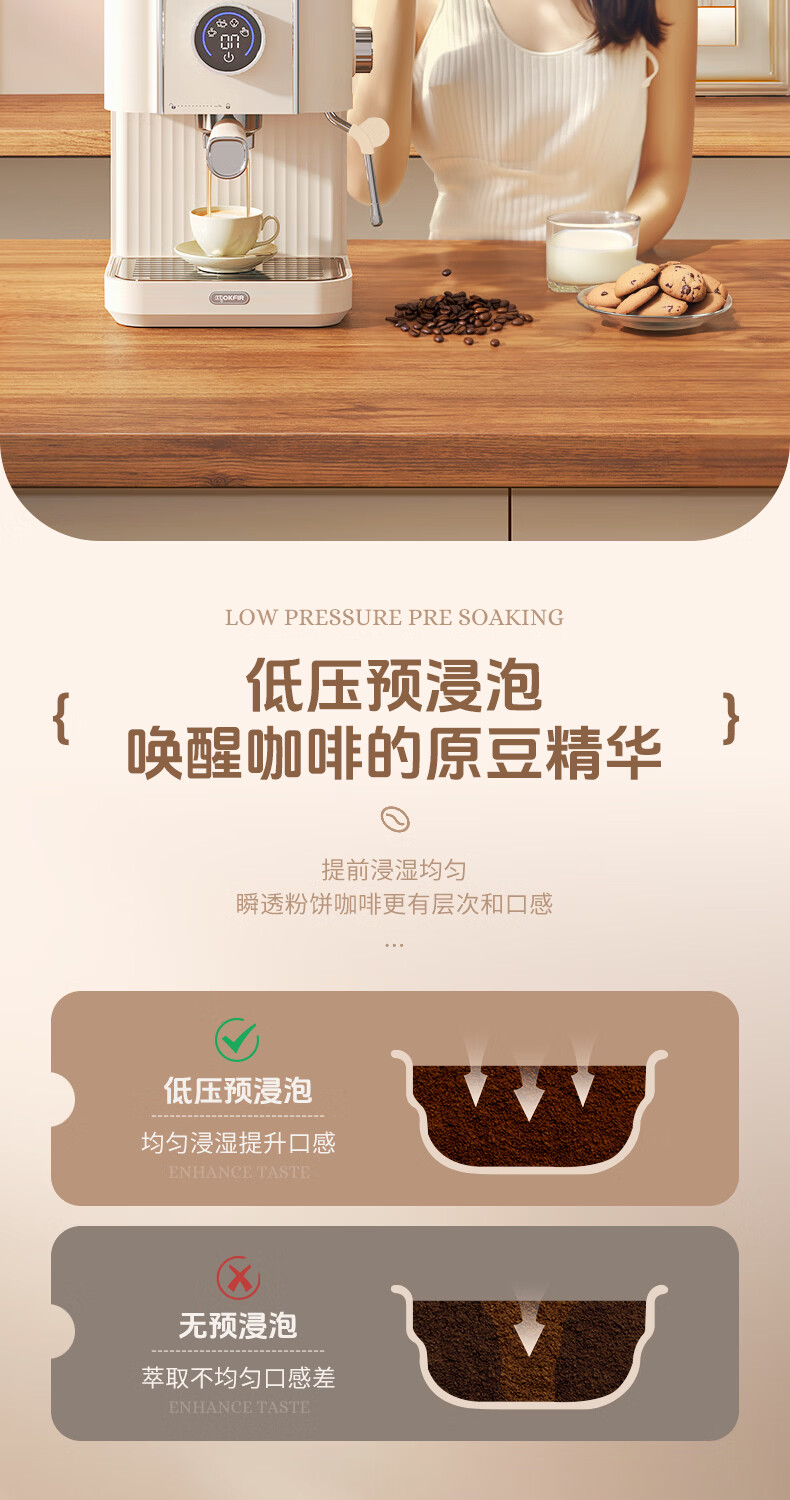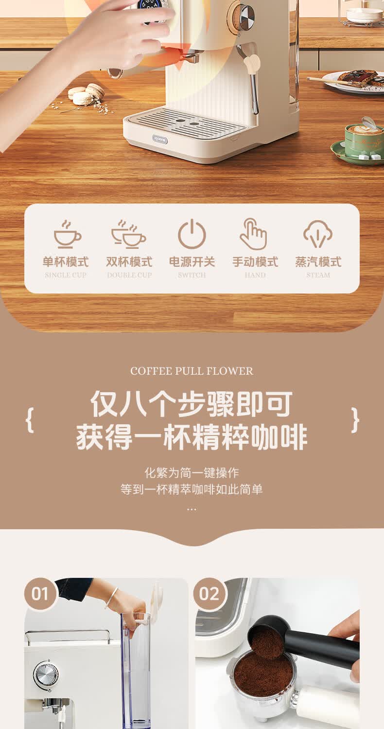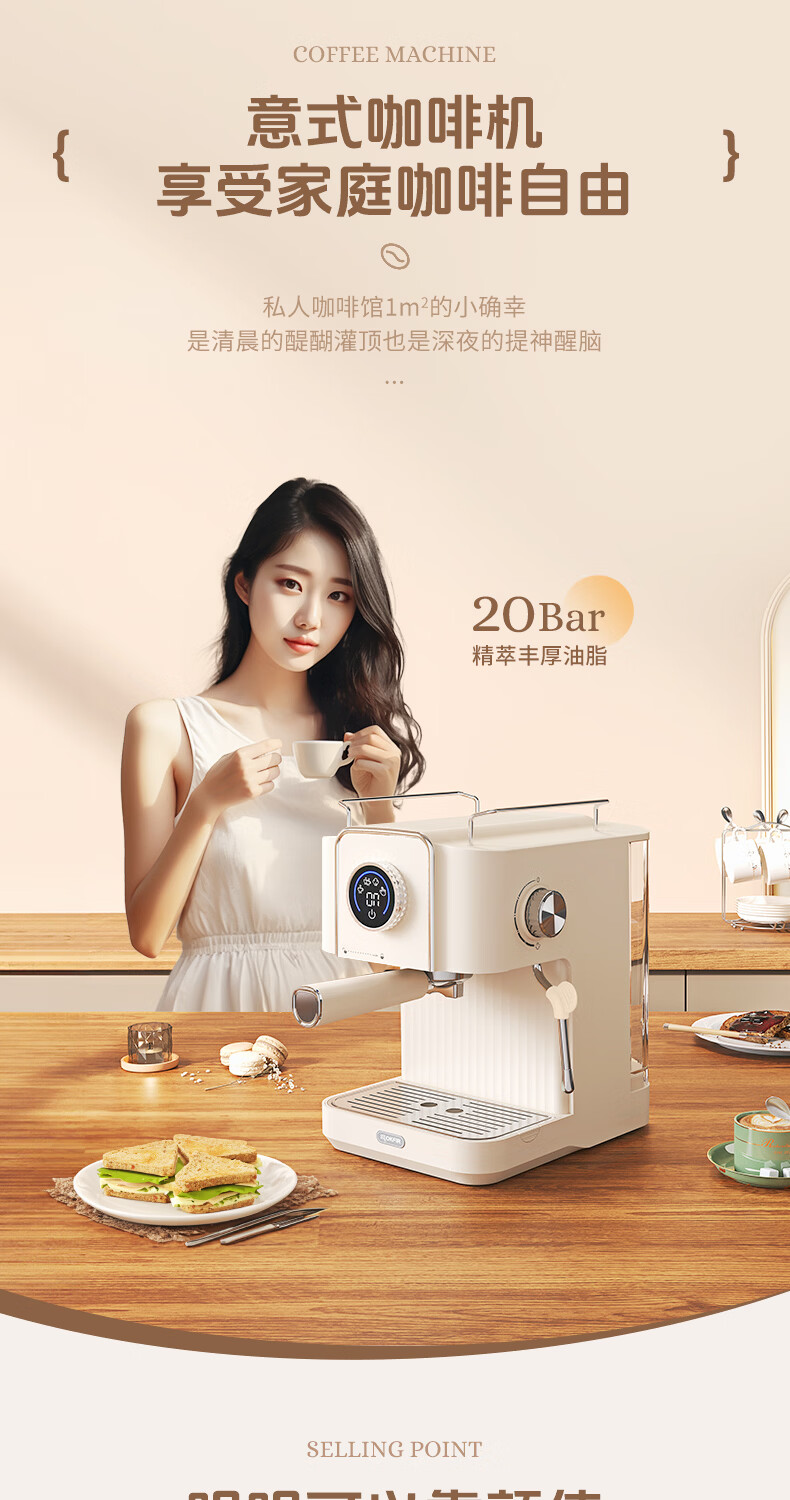 默克菲尔意式咖啡机家用 半自动 打奶泡