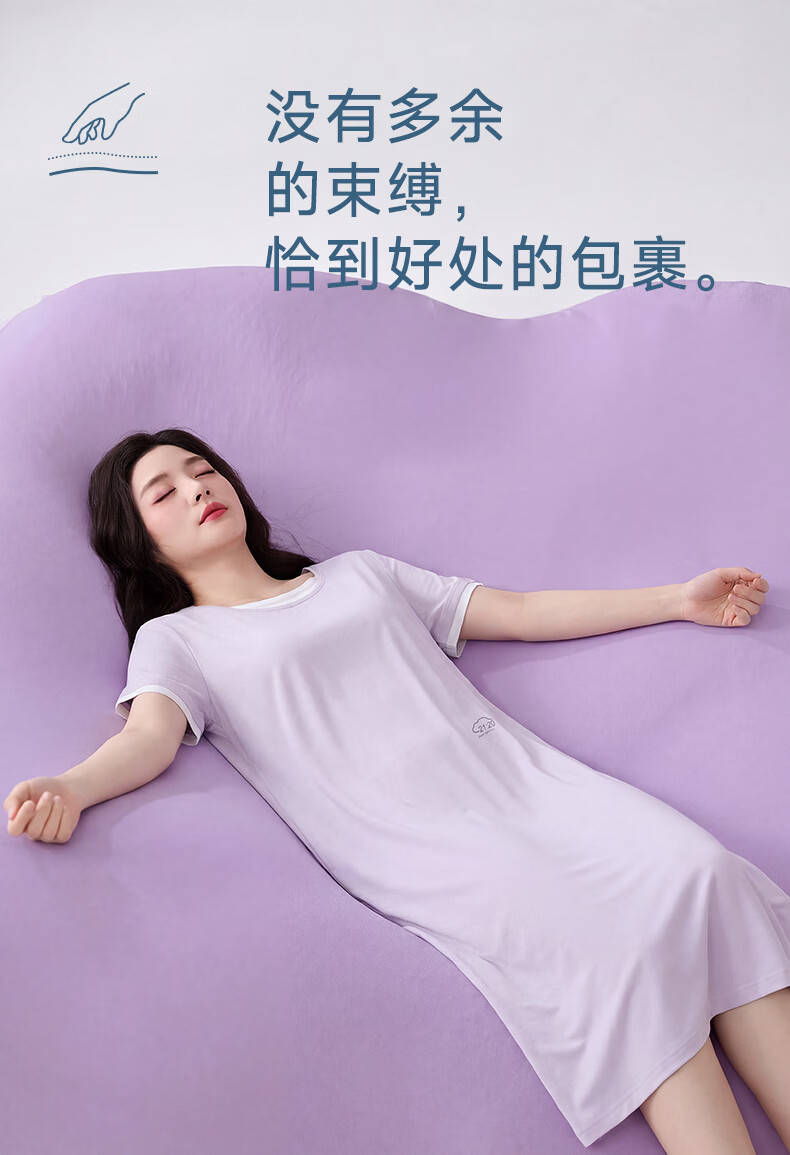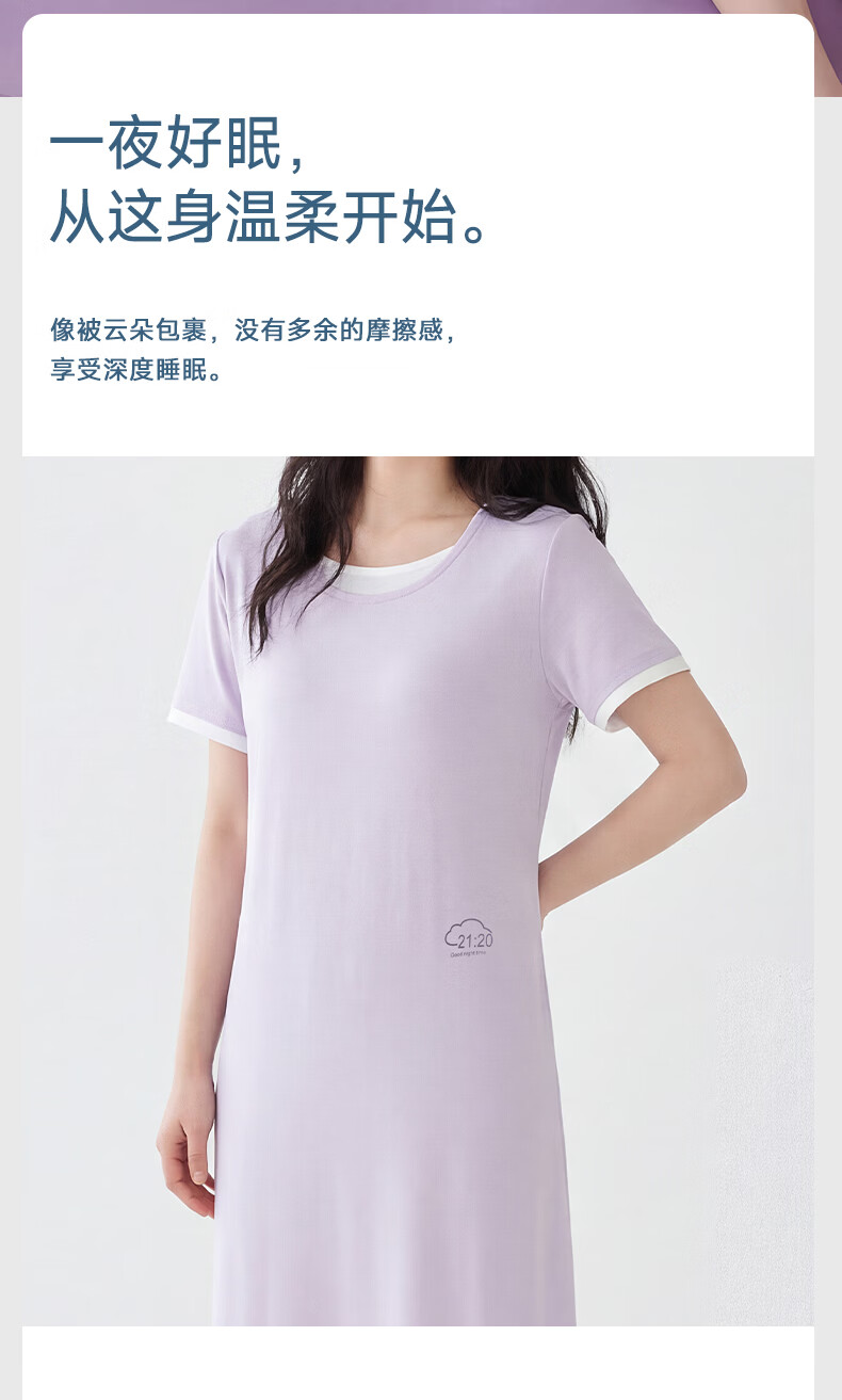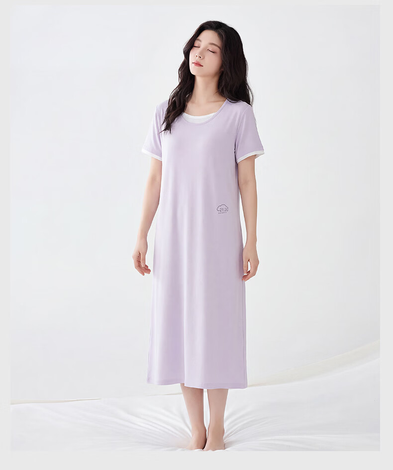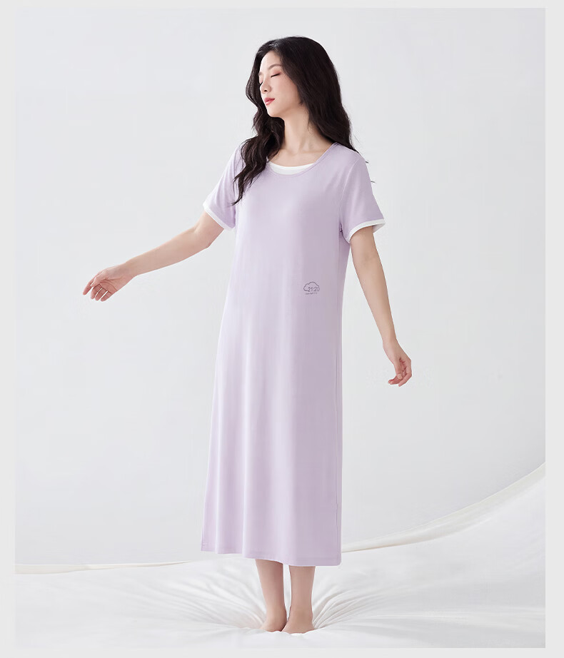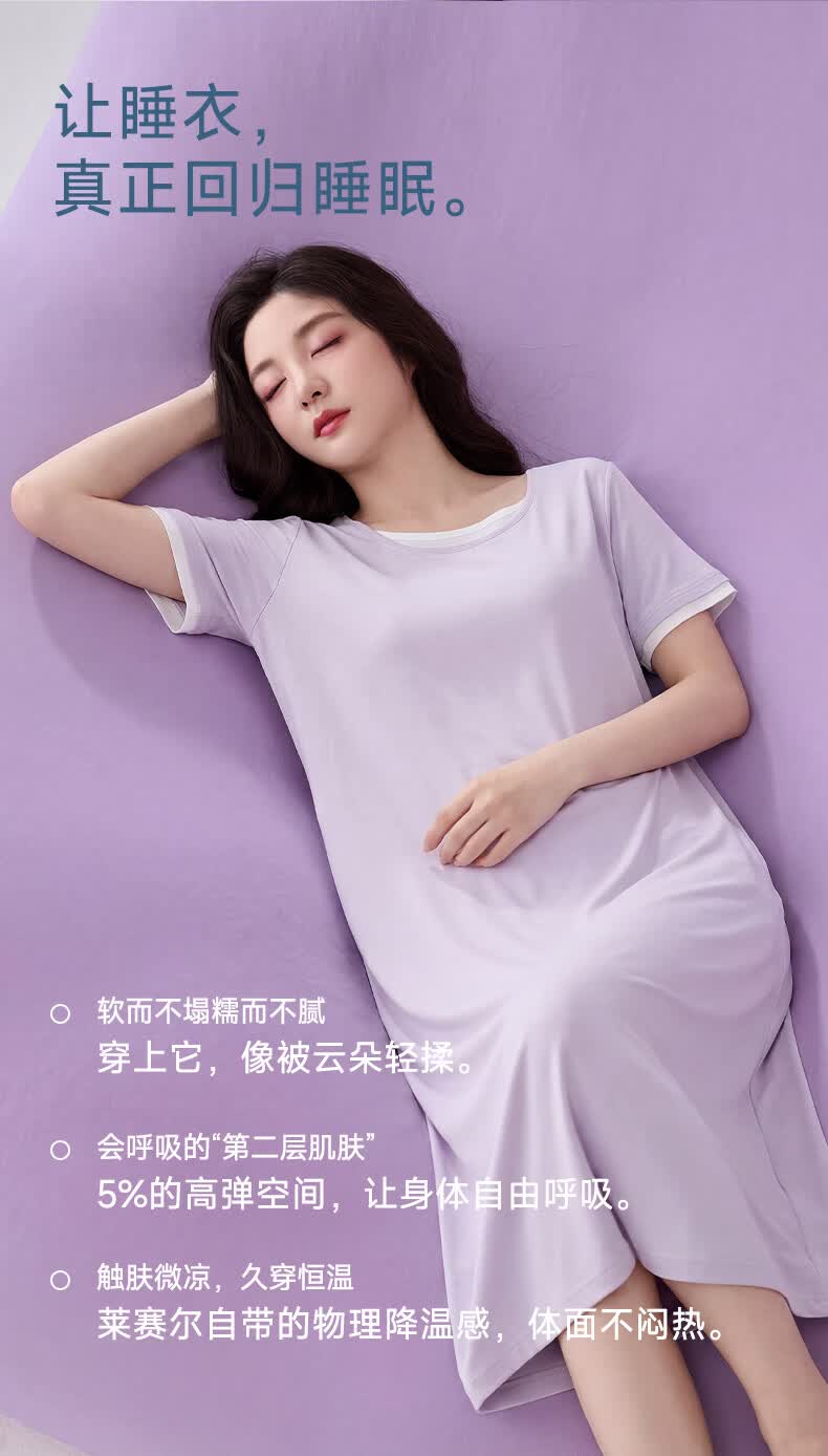 雪中飞深睡睡裙女款夏季凉感莱赛尔棉睡衣女士短袖连衣睡裙家居服 深睡系列 【暮山紫】 一夜好眠 L 推荐【100-120斤】