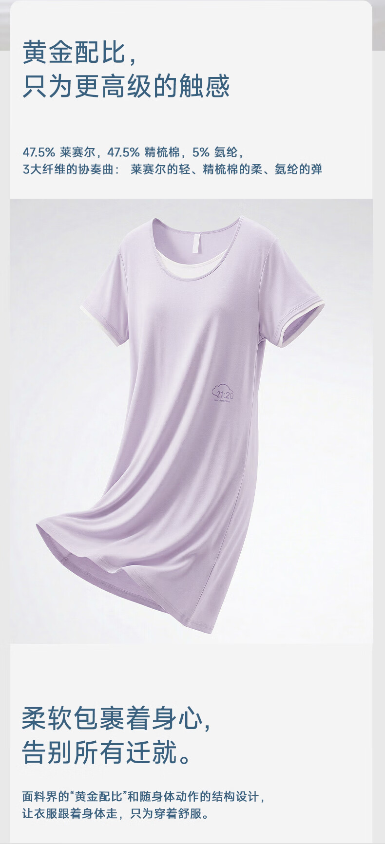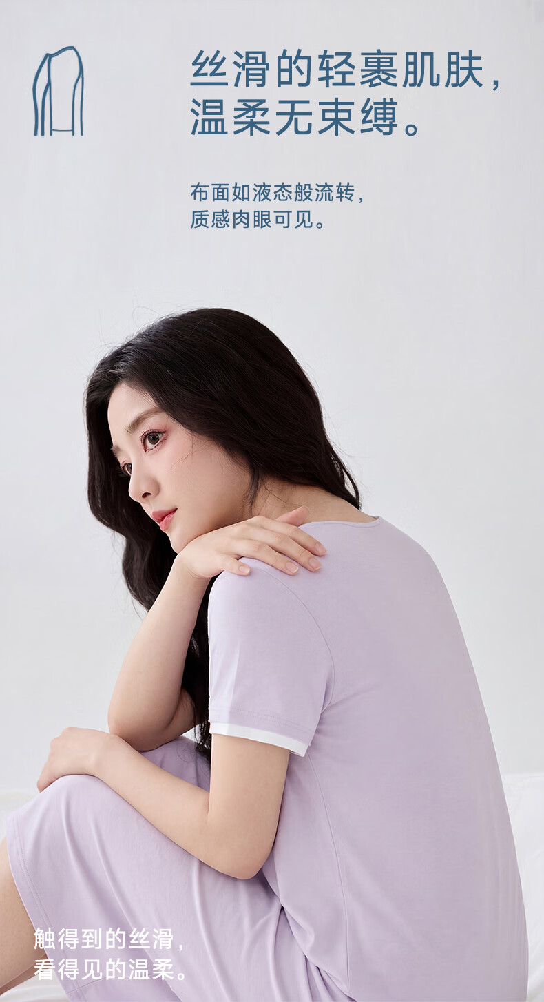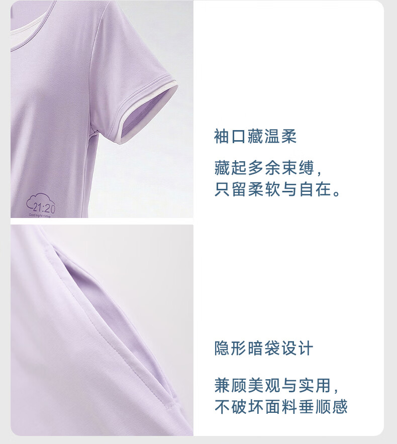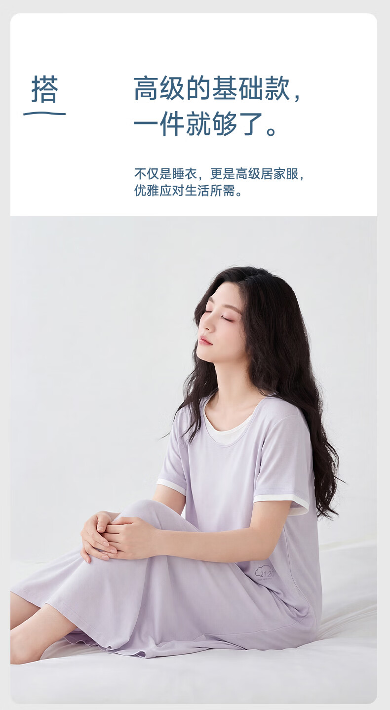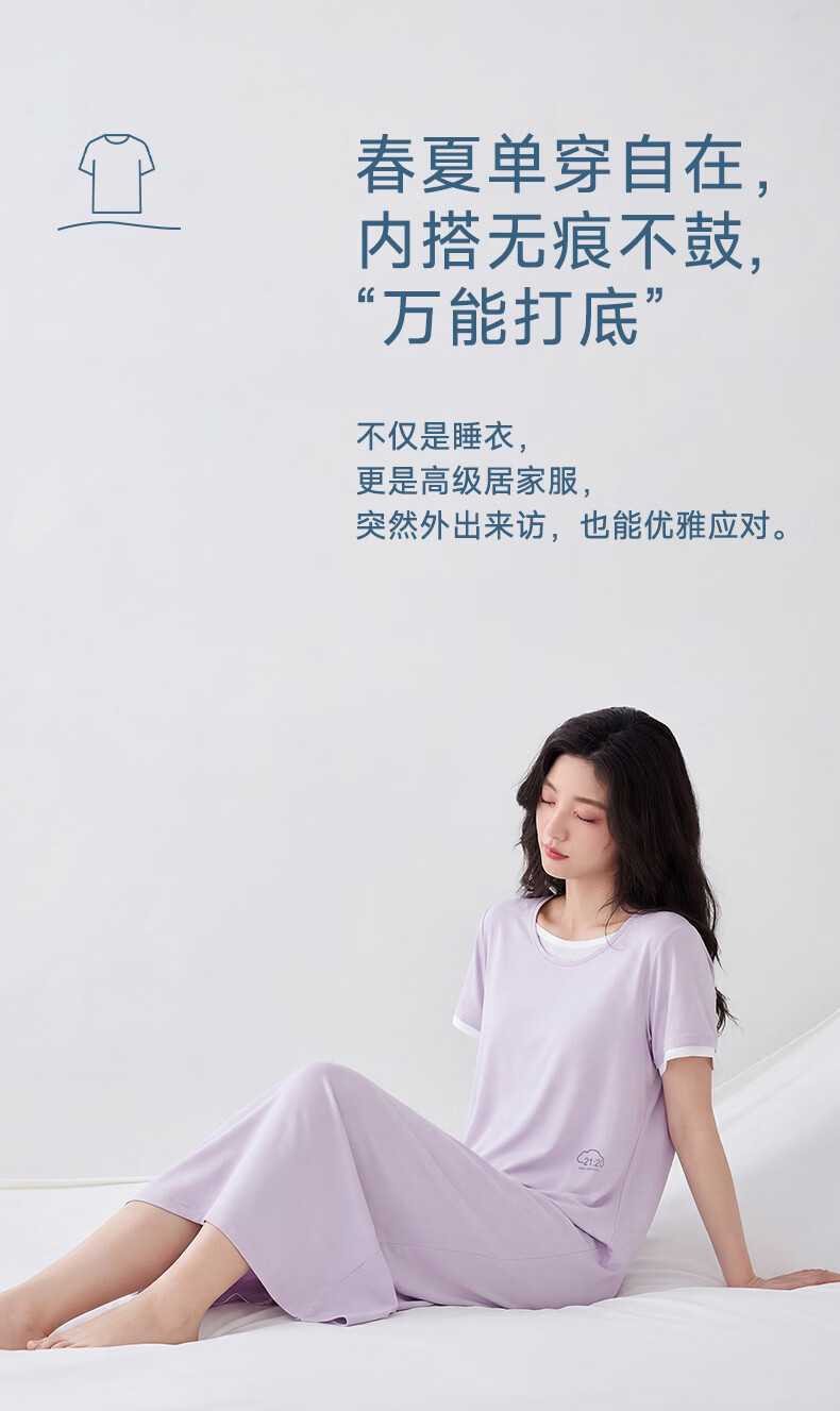 雪中飞深睡睡裙女款夏季凉感莱赛尔棉睡衣女士短袖连衣睡裙家居服 深睡系列 【暮山紫】 一夜好眠 L 推荐【100-120斤】