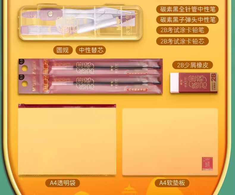 晨光(M&G)考试套装中高考考试专用套装0金属可带入考场金榜题名中考考试套装2b铅涂卡笔高考透明考试套装 【升级便携装】静音14件套-送透明袋