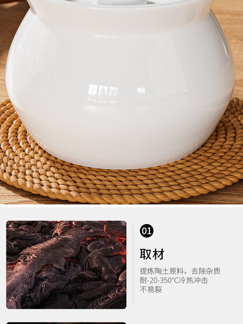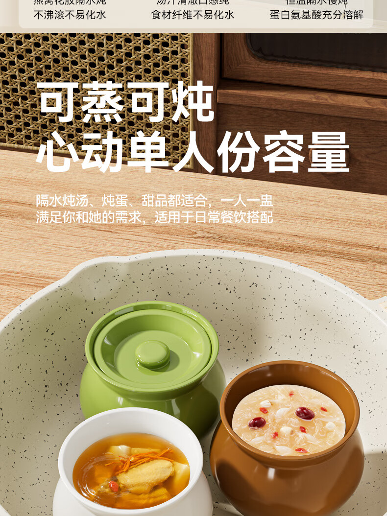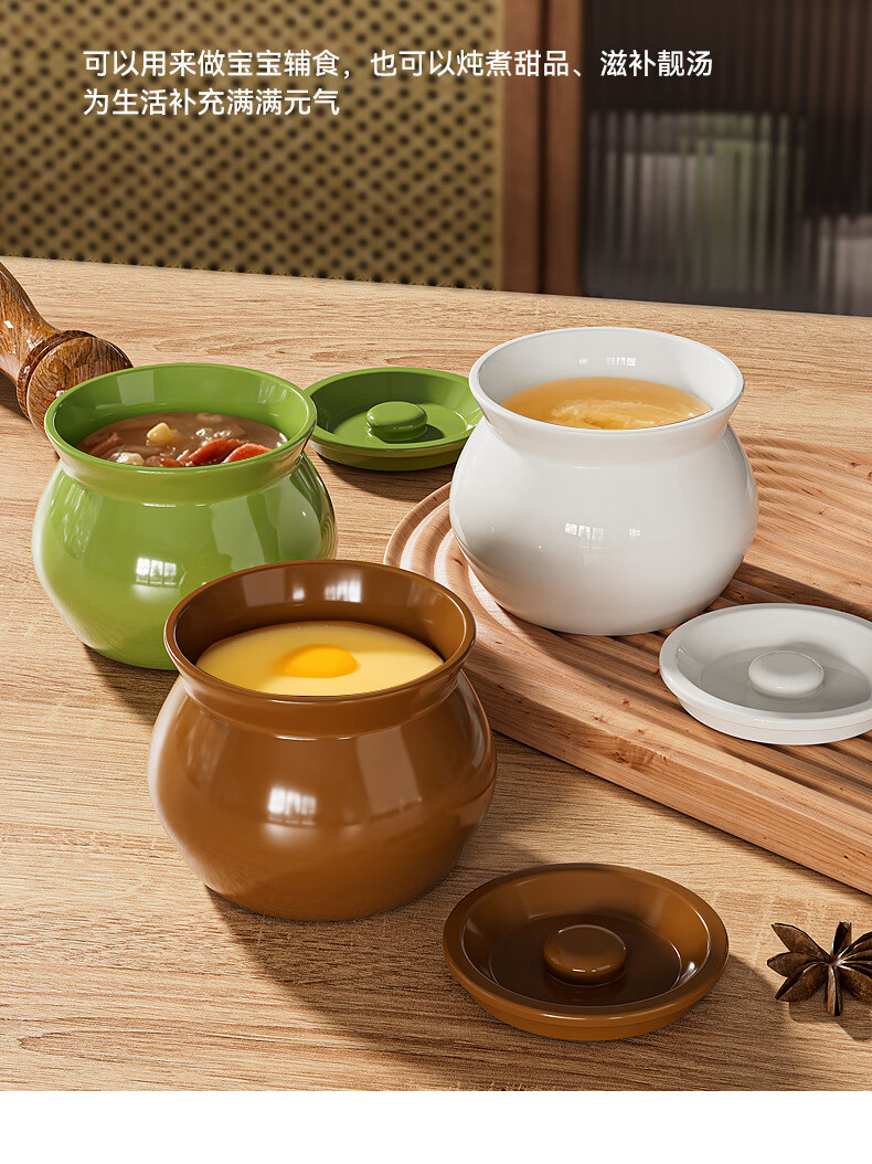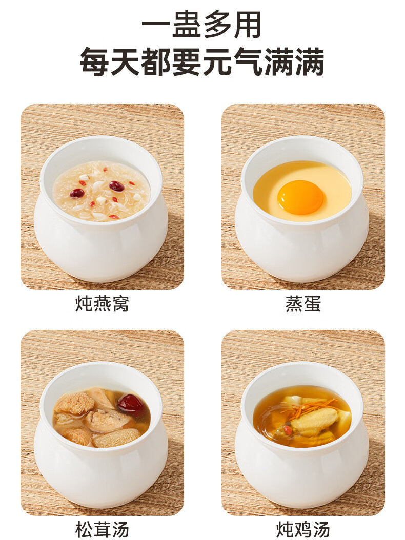 【精选】瓦罐煨汤炖盅家用商用隔水炖一人蒸蛋带盖炖罐沙县小吃陶 特厚款【】炖盅-白色(1个装) 500ml
