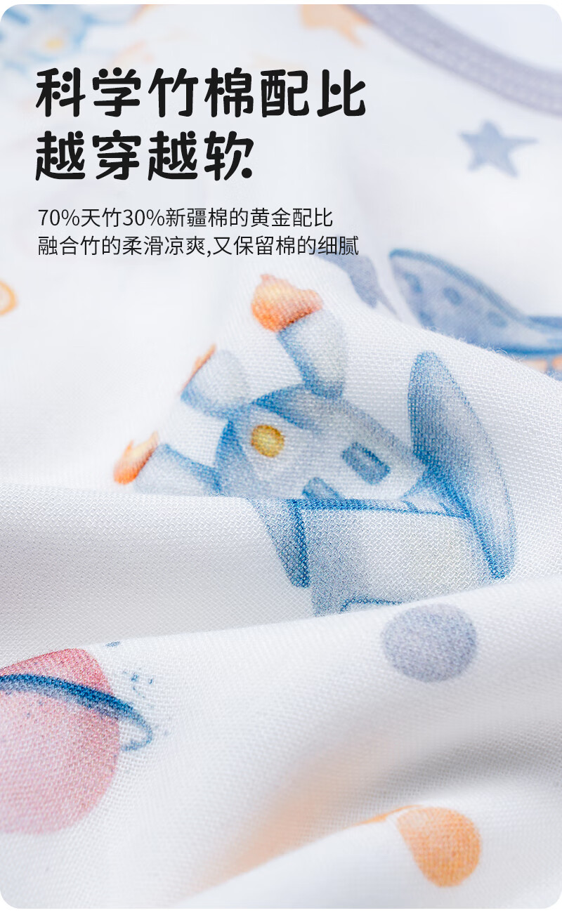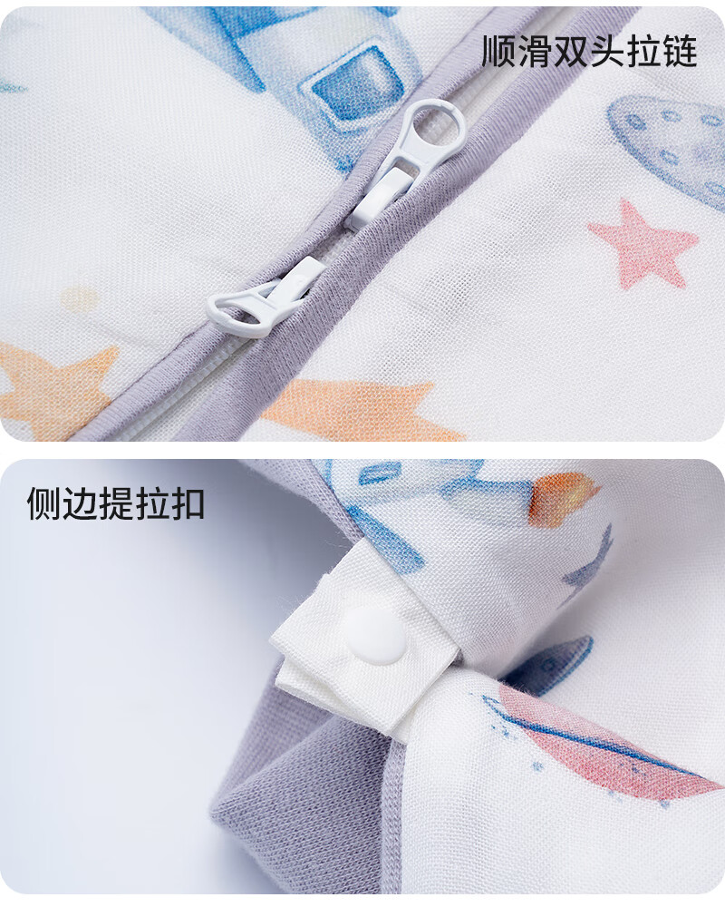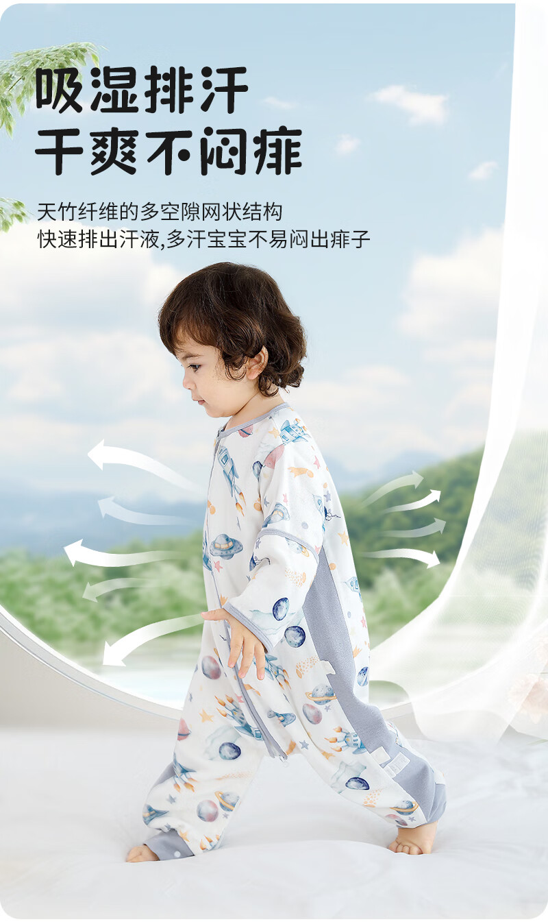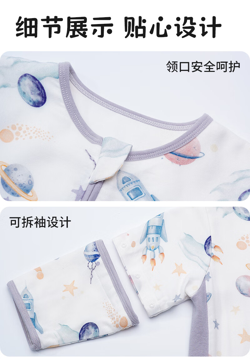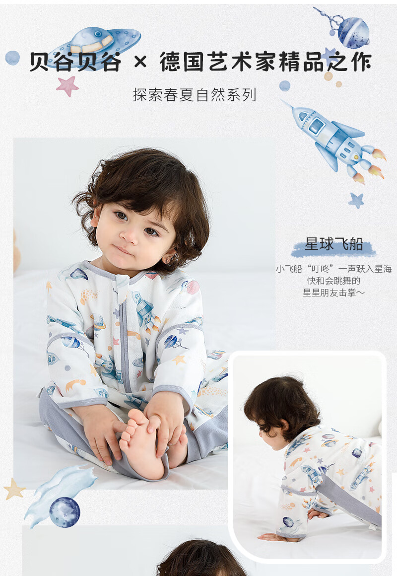 贝谷贝谷睡袋婴儿睡袋春夏季竹棉纱布儿童防踢被子宝宝分腿睡袋新生儿睡衣 星球飞船竹棉前4后2【26℃以上】 XL码【身高105-115cm】年龄4-6岁