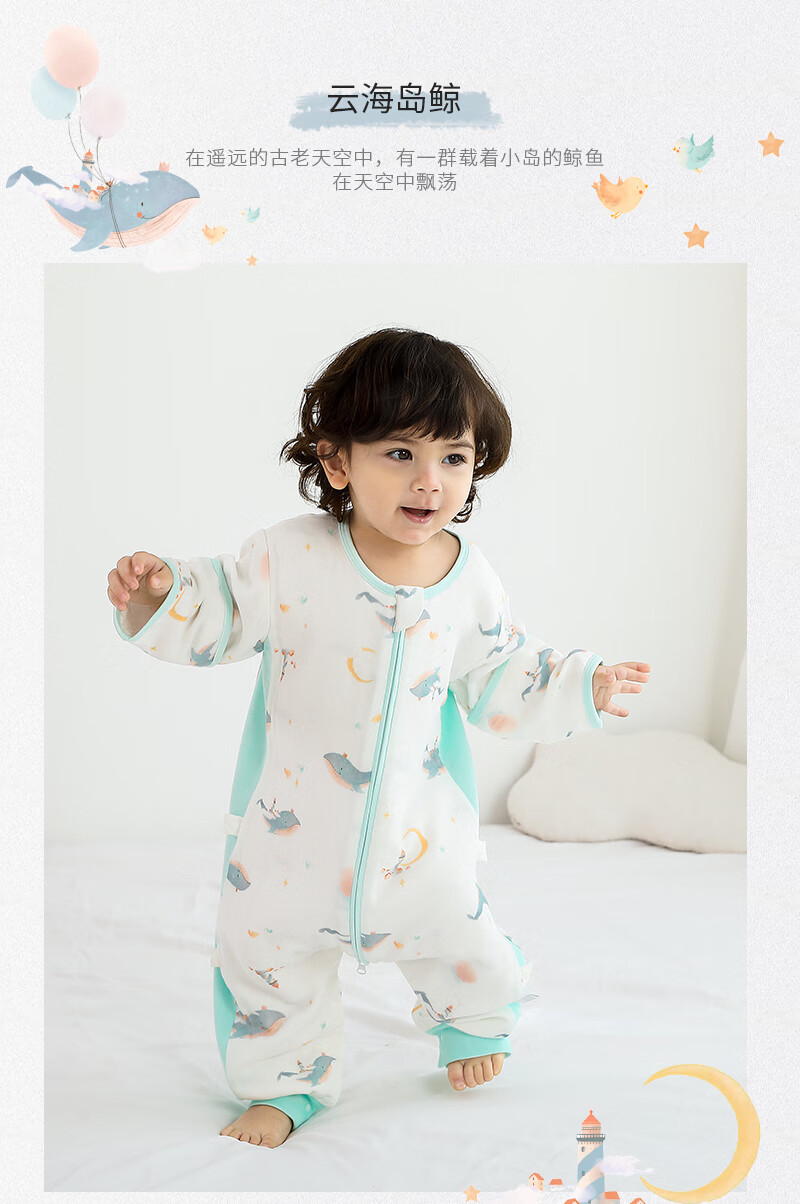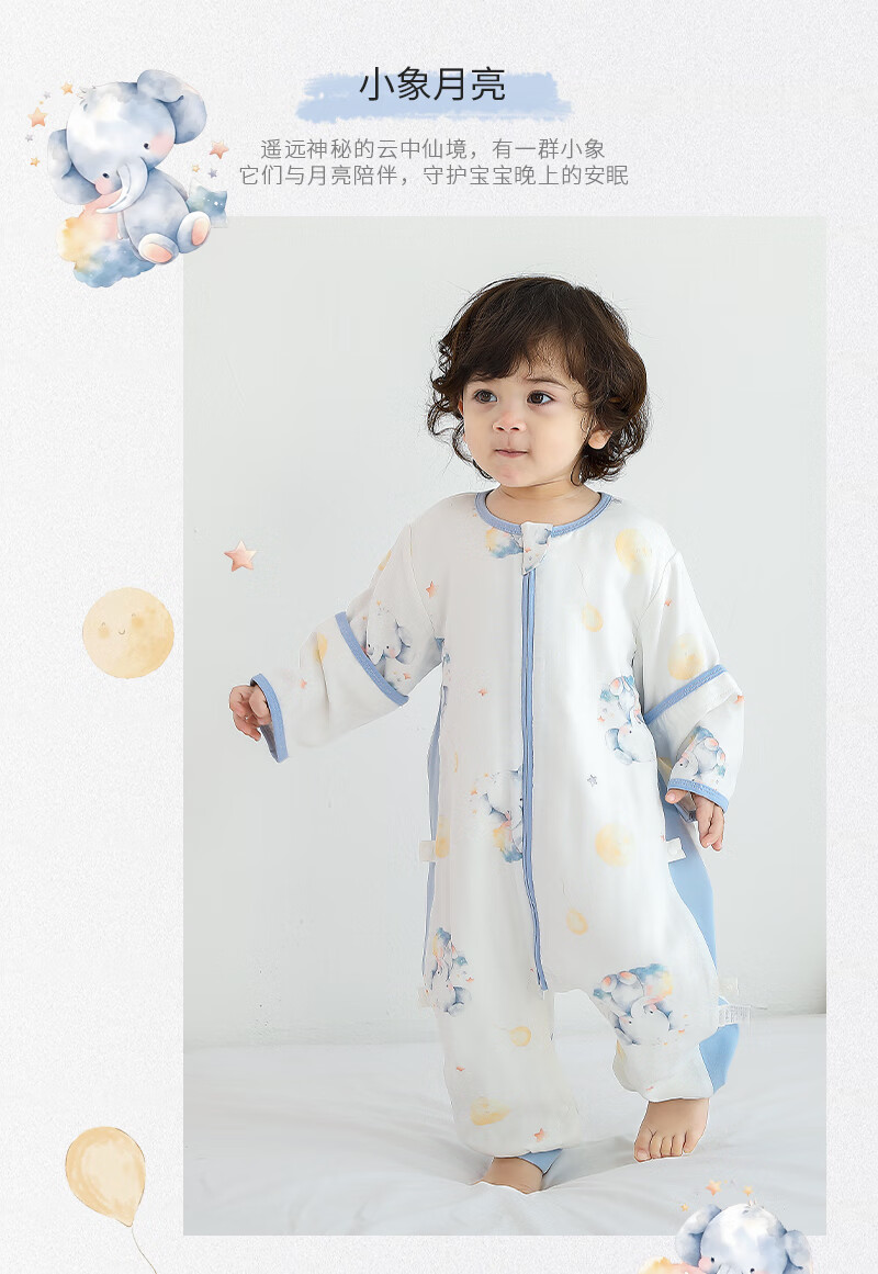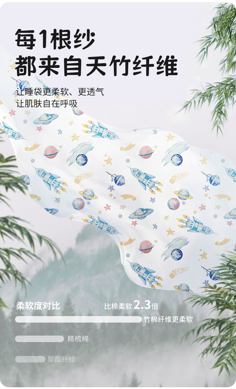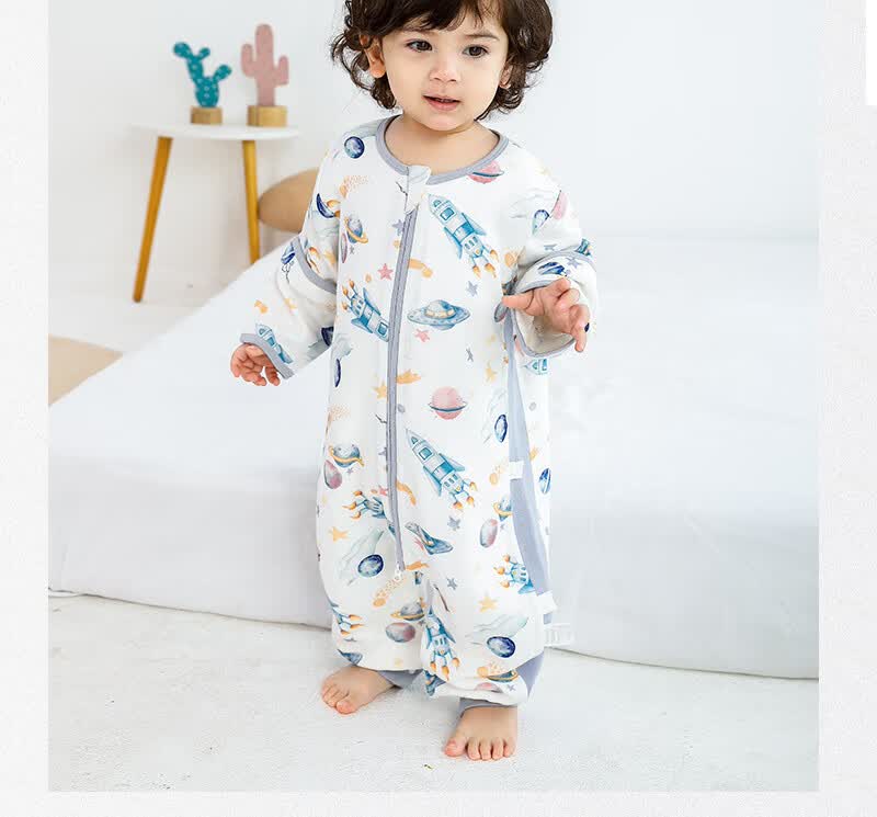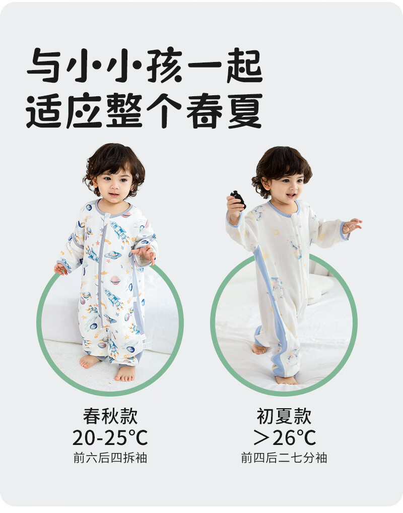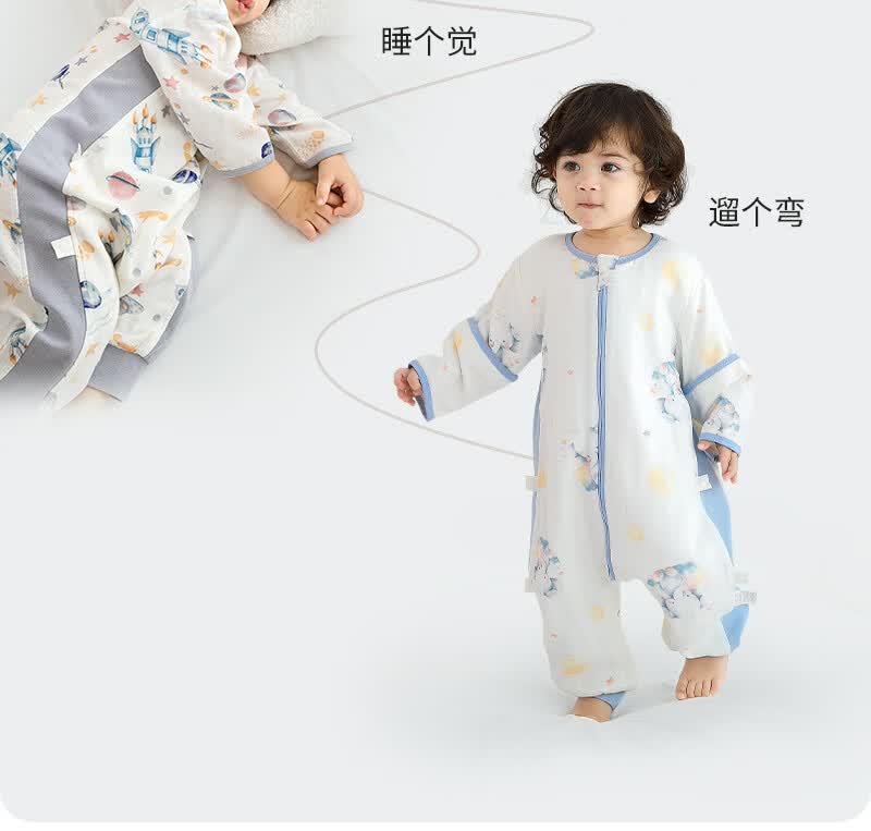 贝谷贝谷睡袋婴儿睡袋春夏季竹棉纱布儿童防踢被子宝宝分腿睡袋新生儿睡衣 星球飞船竹棉前4后2【26℃以上】 XL码【身高105-115cm】年龄4-6岁