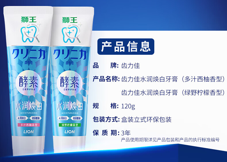 狮王(Lion)齿力佳酵素专研美白牙膏护龈新老包装随机发货 【健齿美白】小苏打白桃青柠+酵素西柚柠檬
