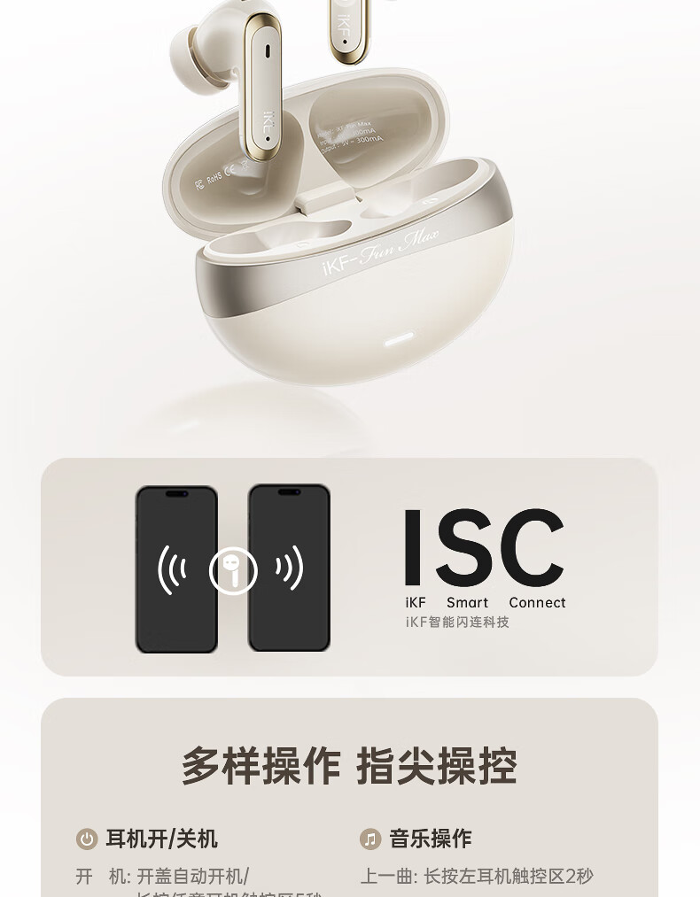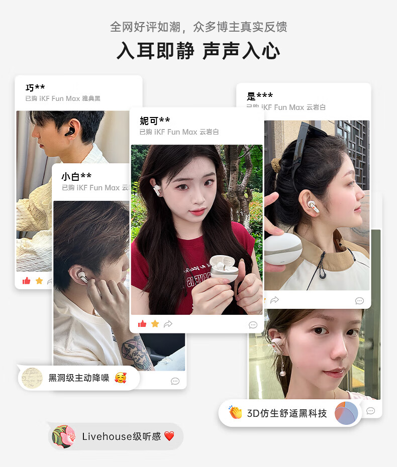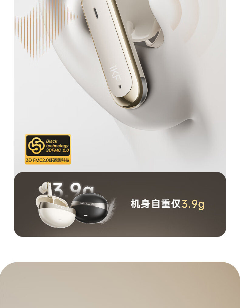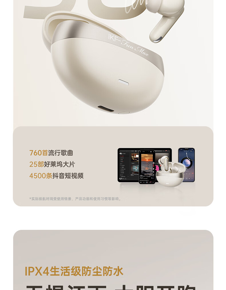 iKF C01耳夹式蓝牙耳机无线开放式骨气传导不入耳超长续航AI通话降噪跑步运动适用于华为小米 暖云白