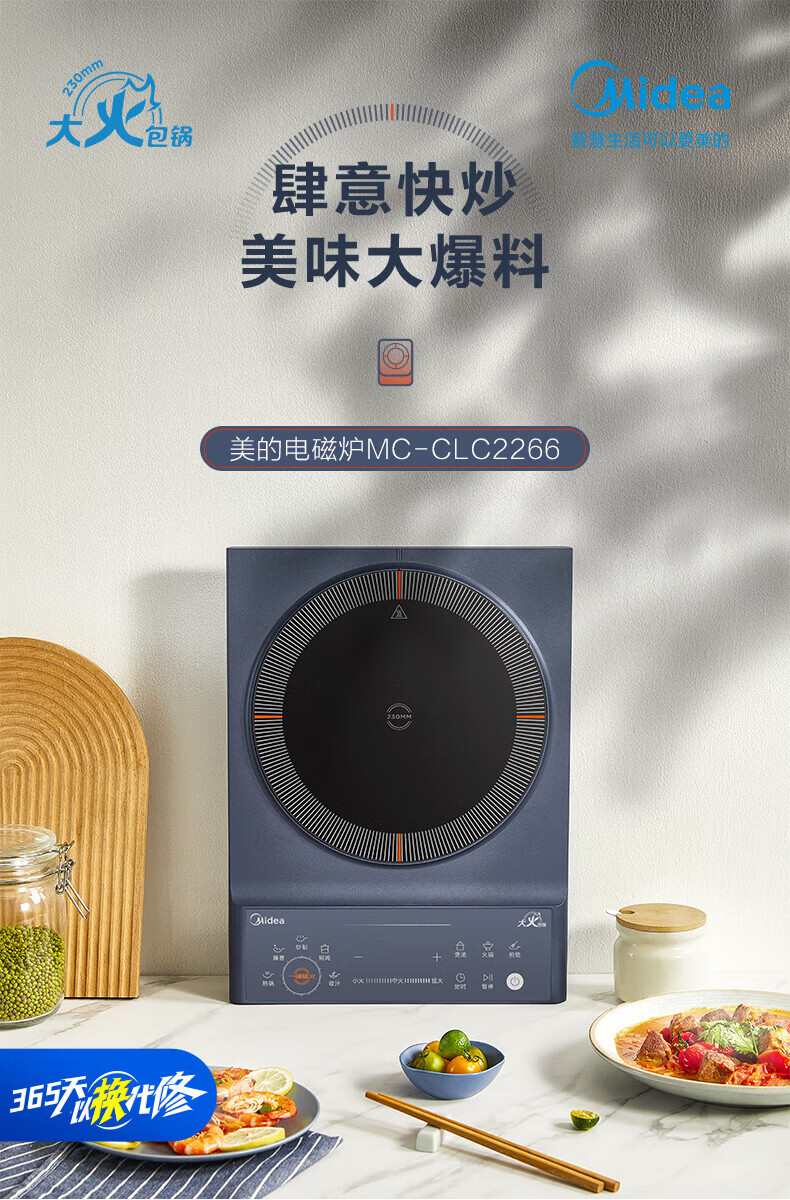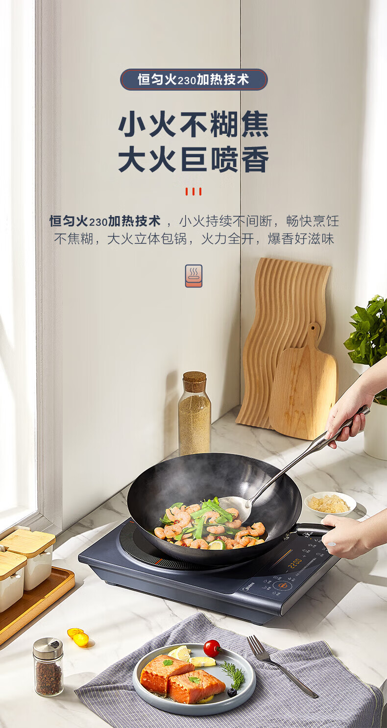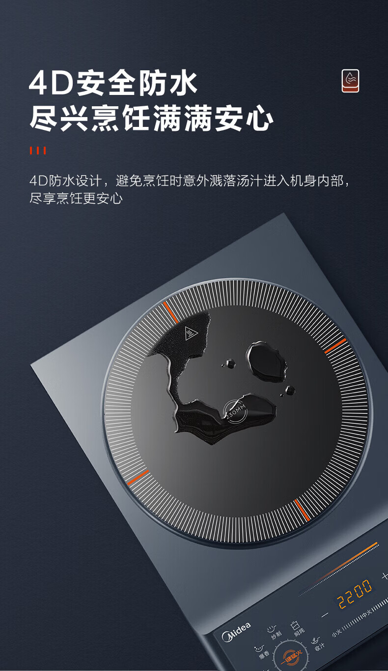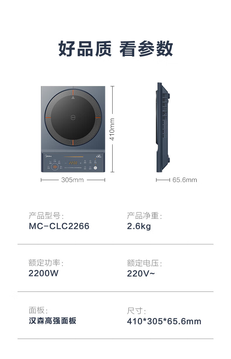 美的(Midea)电磁炉电陶炉 家用2200W大功率匀火加热爆炒火锅炉九档火力智能定时专业烹饪功能一体面板防水耐刮 【单灶2200W】MC-CLC2266
