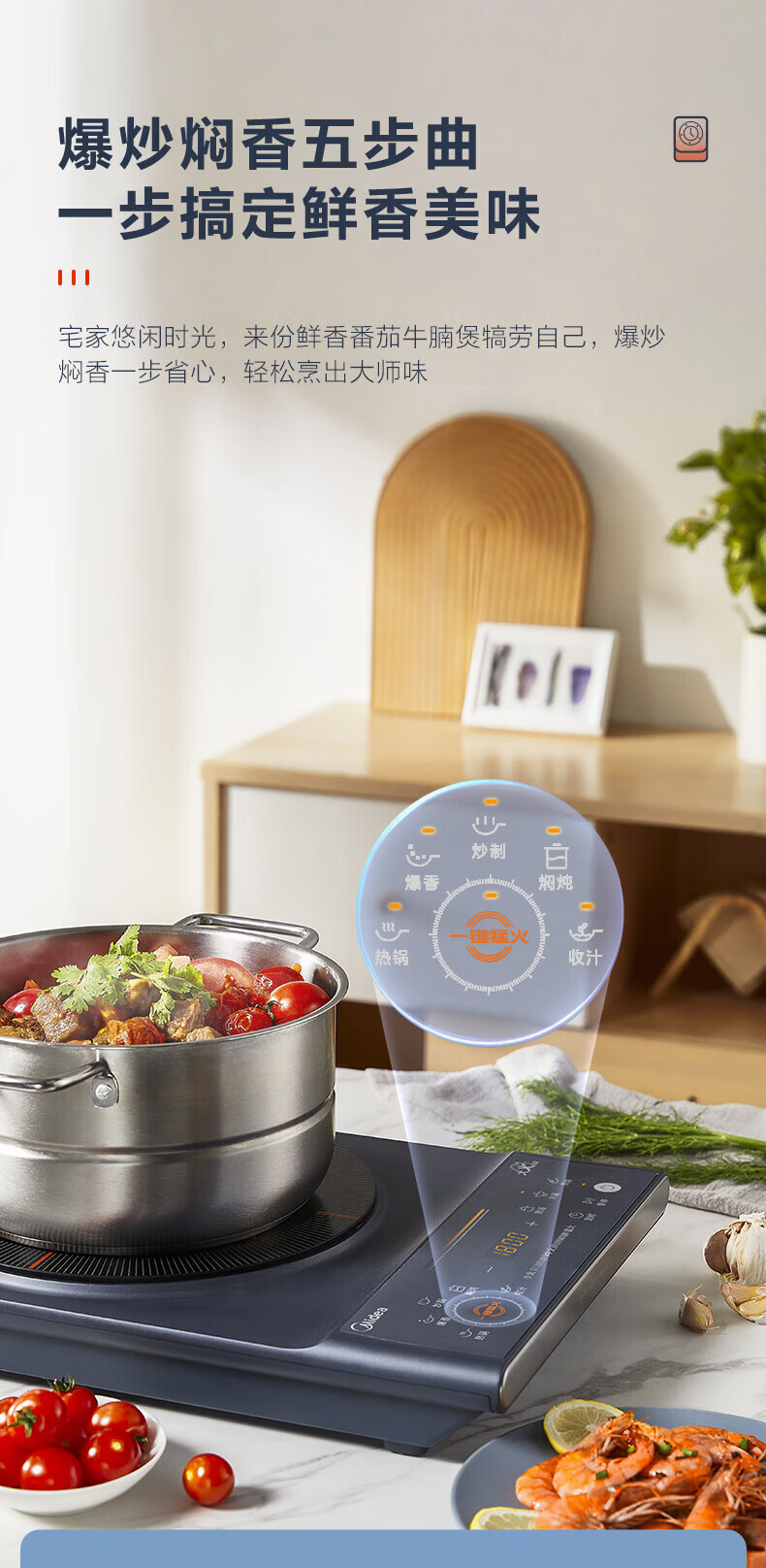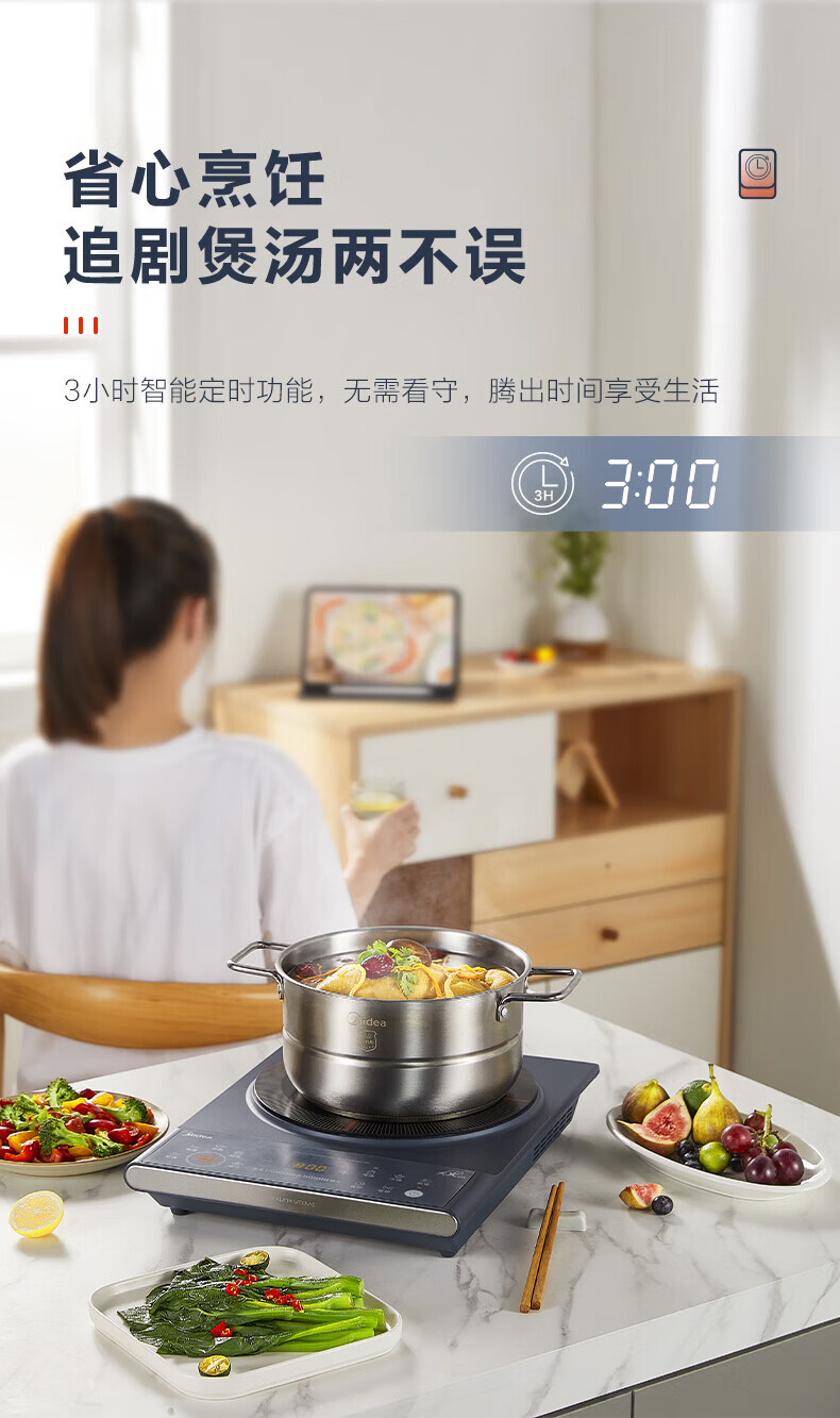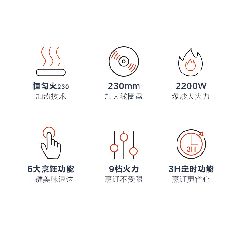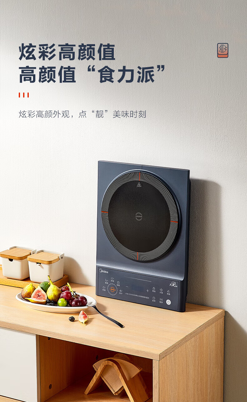 美的(Midea)电磁炉电陶炉 家用2200W大功率匀火加热爆炒火锅炉九档火力智能定时专业烹饪功能一体面板防水耐刮 【单灶2200W】MC-CLC2266