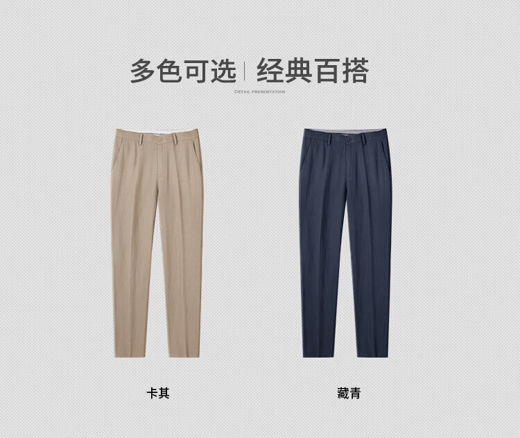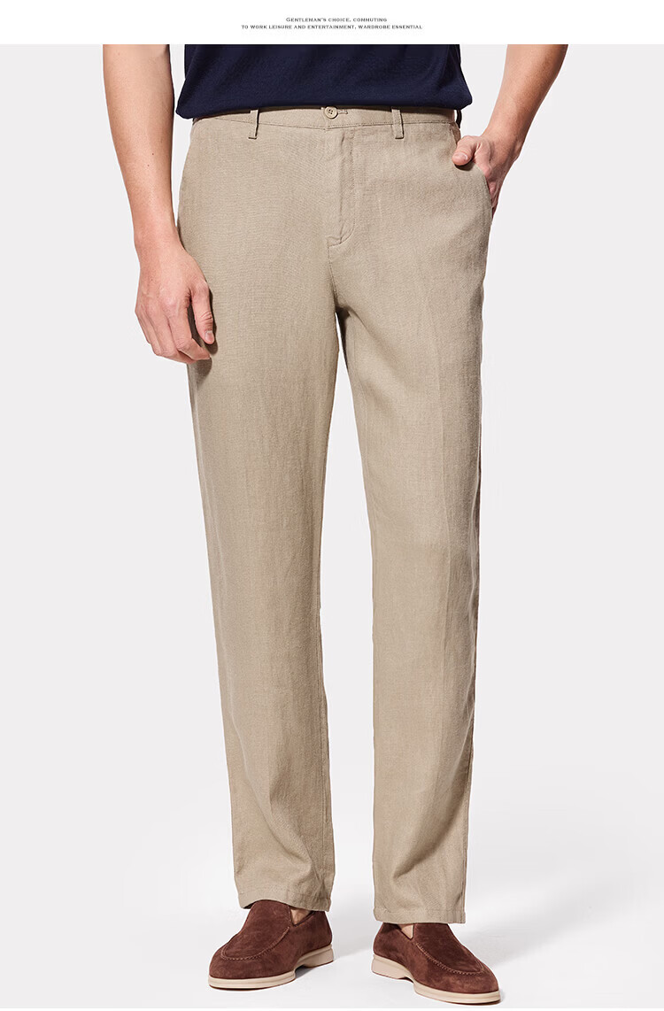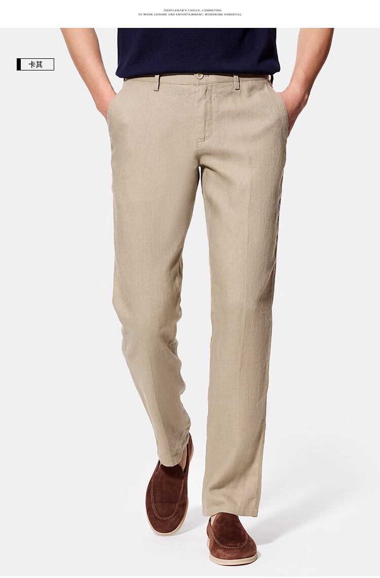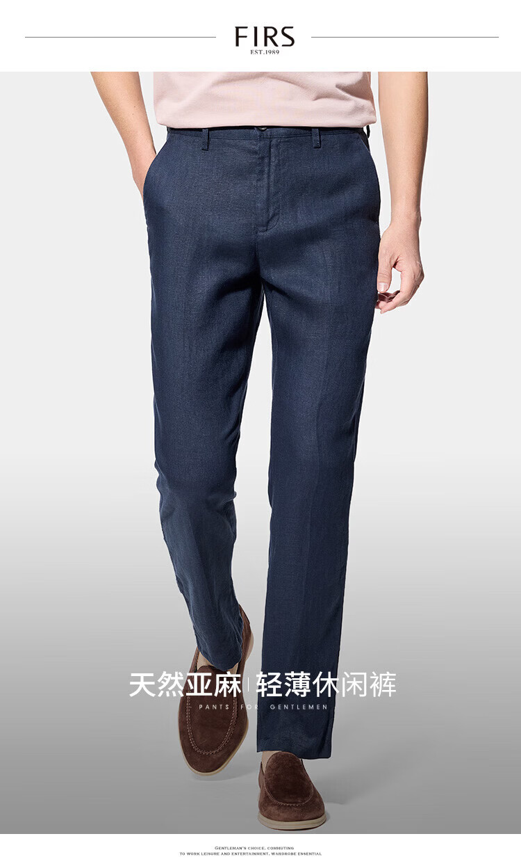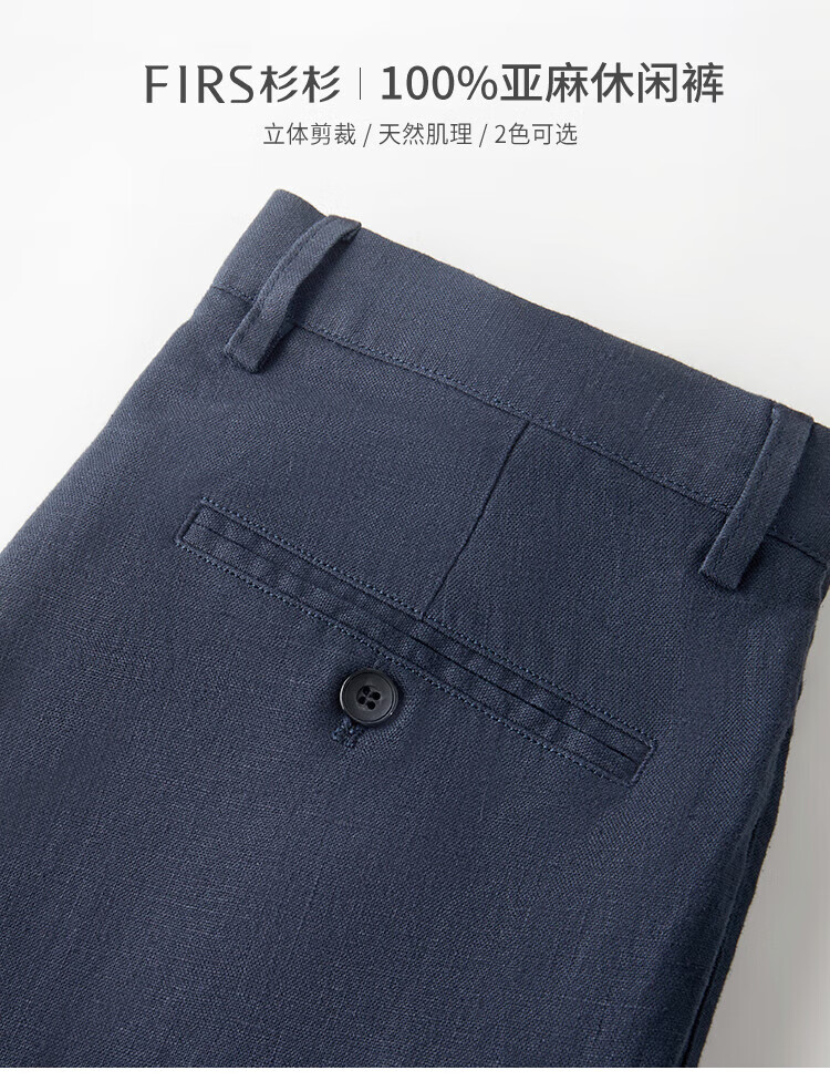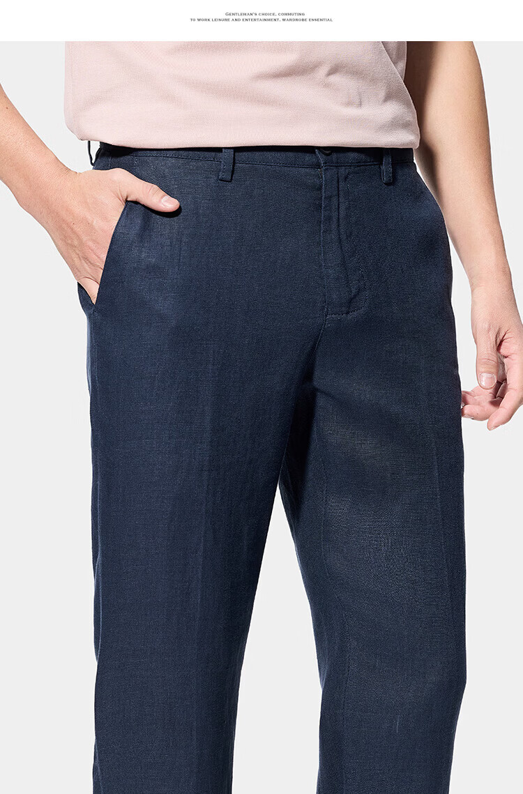 杉杉(FIRS)【亚麻】纯亚麻休闲裤男透气顺滑直筒裤商务轻薄长裤子 藏青 30 170/76A