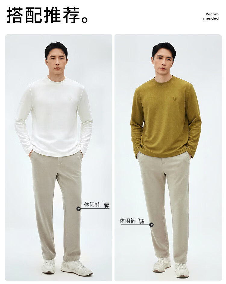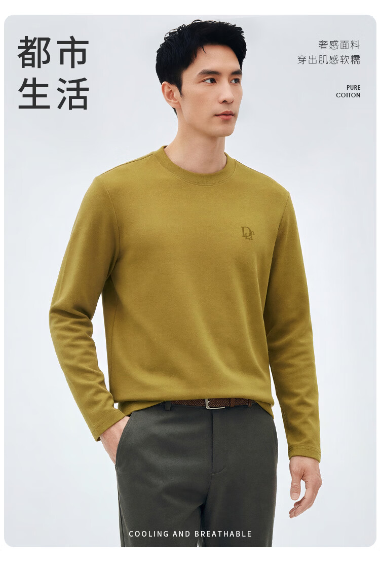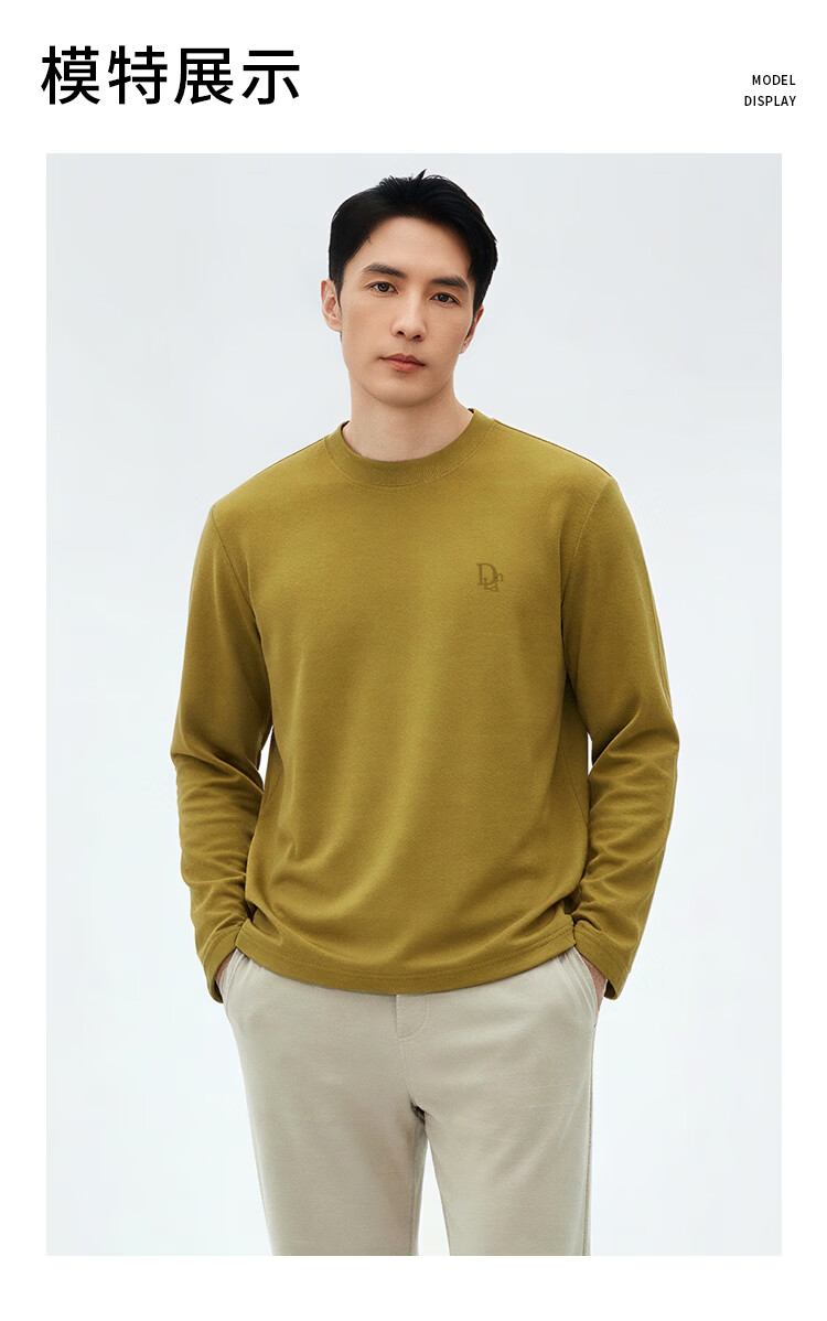 莱克斯顿(laxdn)长袖T恤男春秋新品保暖纯色印花零压高弹柔软亲肤内搭上衣打底衫3 深黄 L