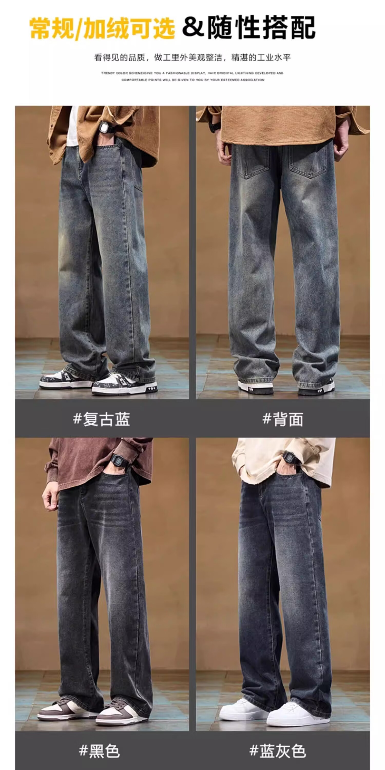真维斯(Jeanswest)2026秋冬新品痞帅渐变水洗牛仔裤简约男款百搭舒适休闲直筒长裤男 复古蓝加绒 28