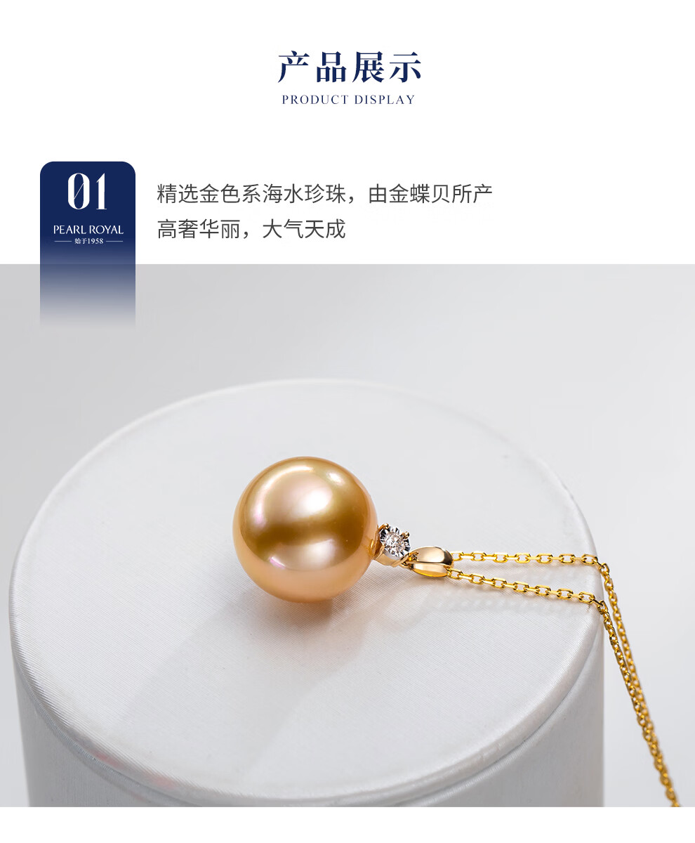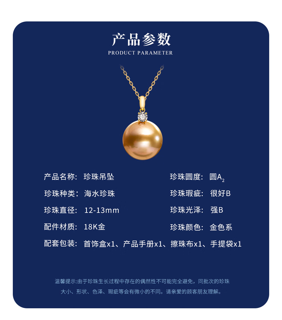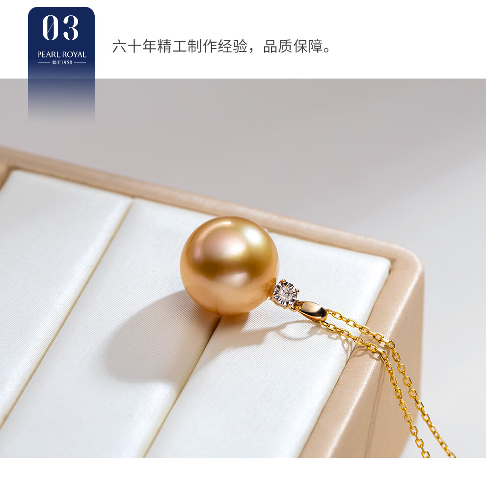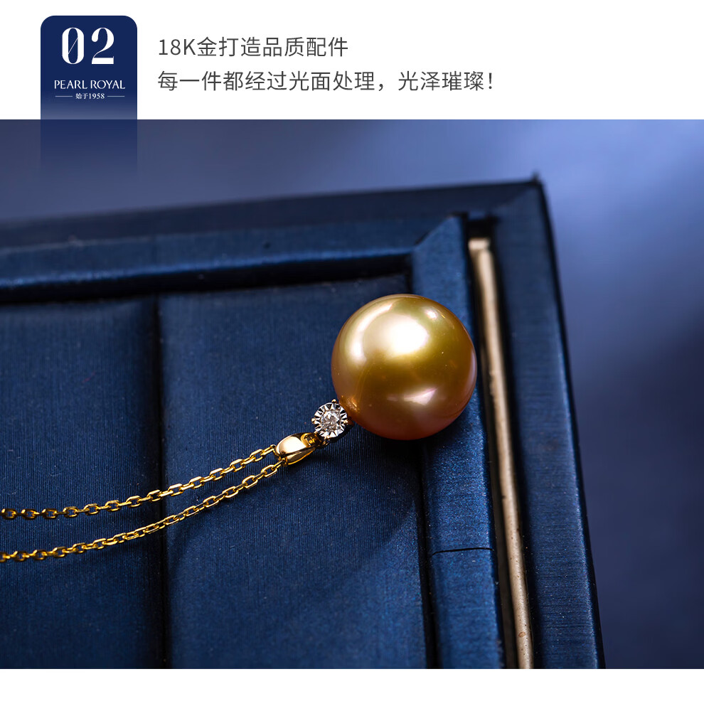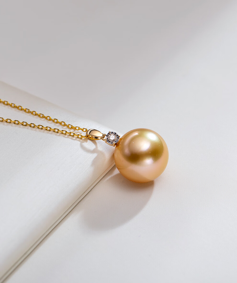 南珠宫金曦18K金海水珍珠吊坠南洋金珠项链典雅高贵生日礼物送女友 12.0-13.0mm 赠S925银链