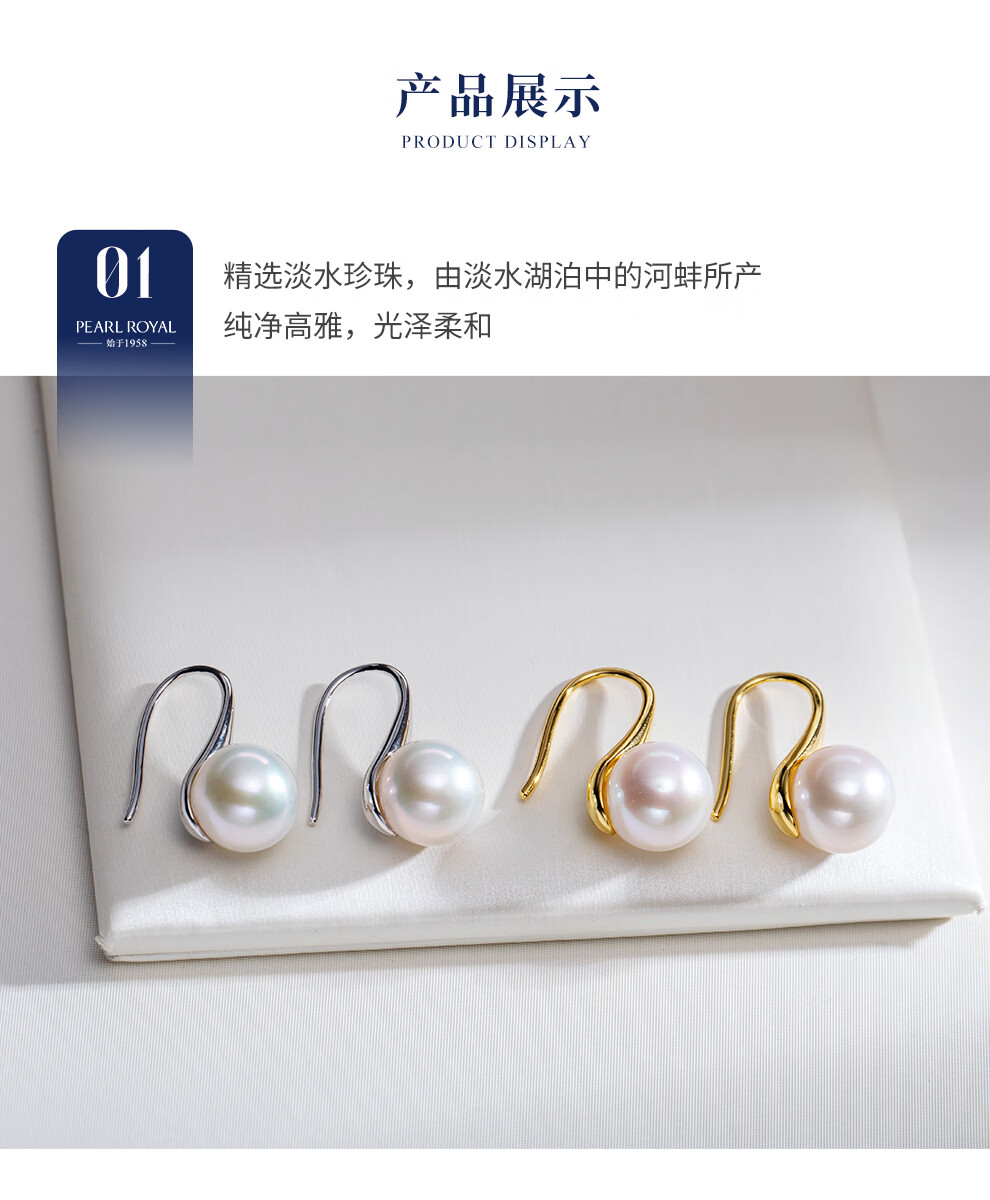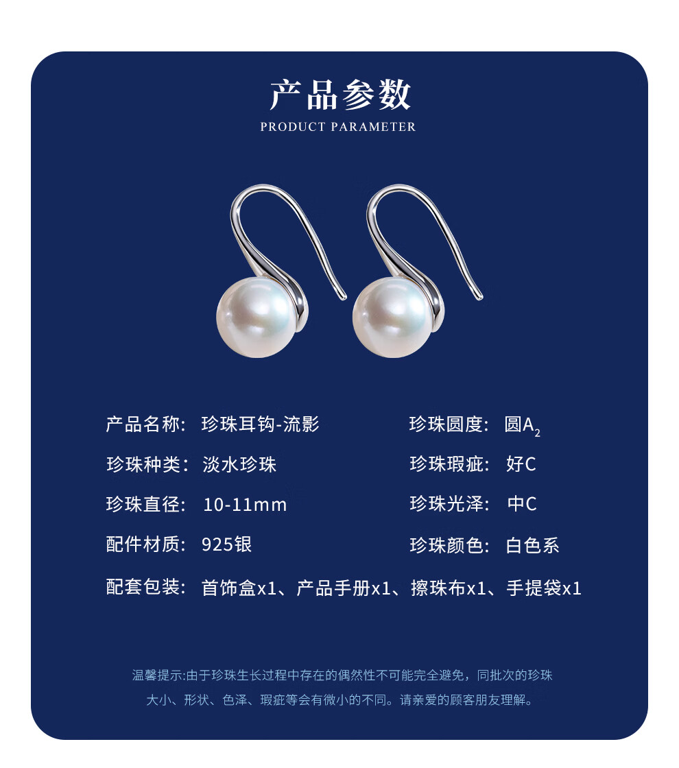 南珠宫流影925银淡水珍珠耳环强光圆形耳钩轻奢生日礼物送女友 银色款 10.0-11.0mm