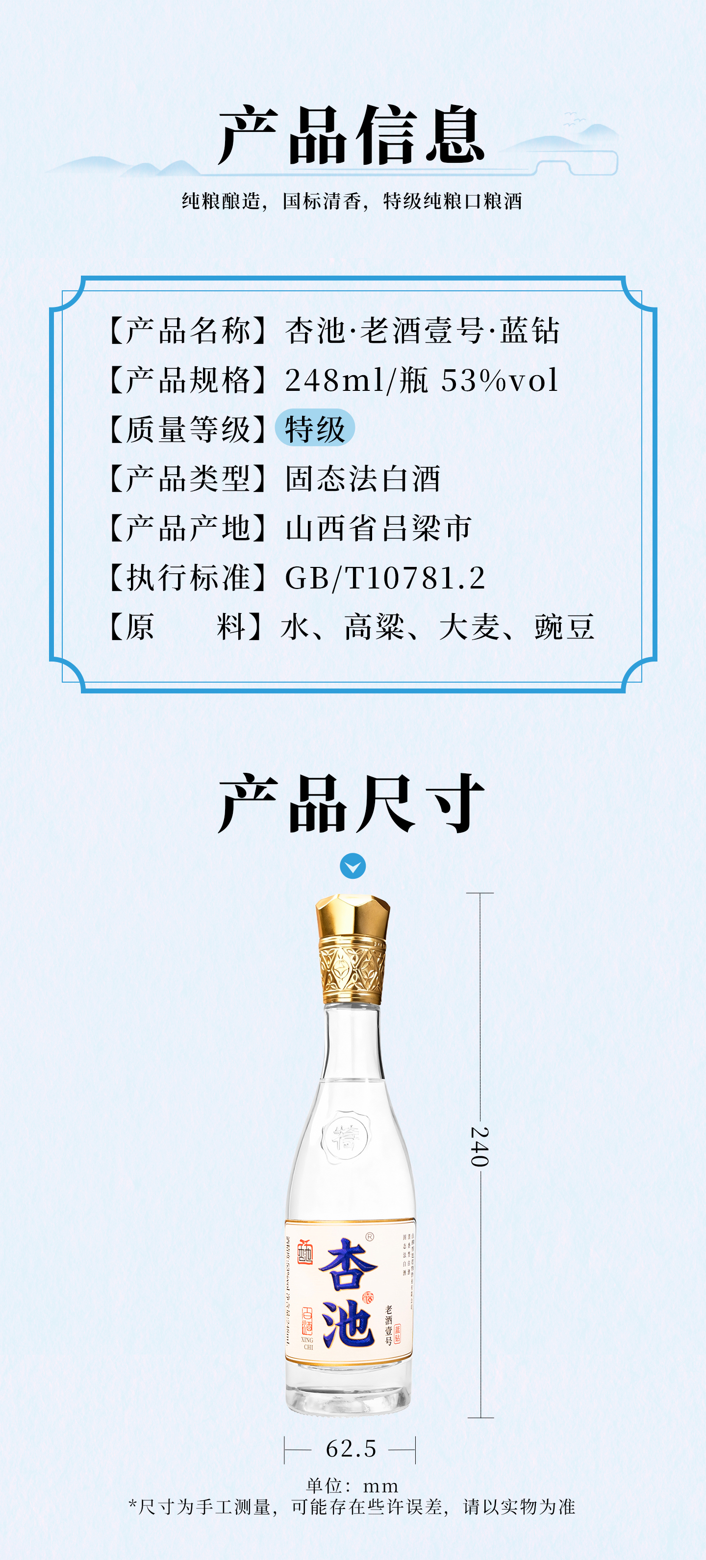 杏池清香型白酒小酒版固态法高度口粮酒 马年纯粮试饮小酒 53度 248mL 9瓶 特级纯粮囤货