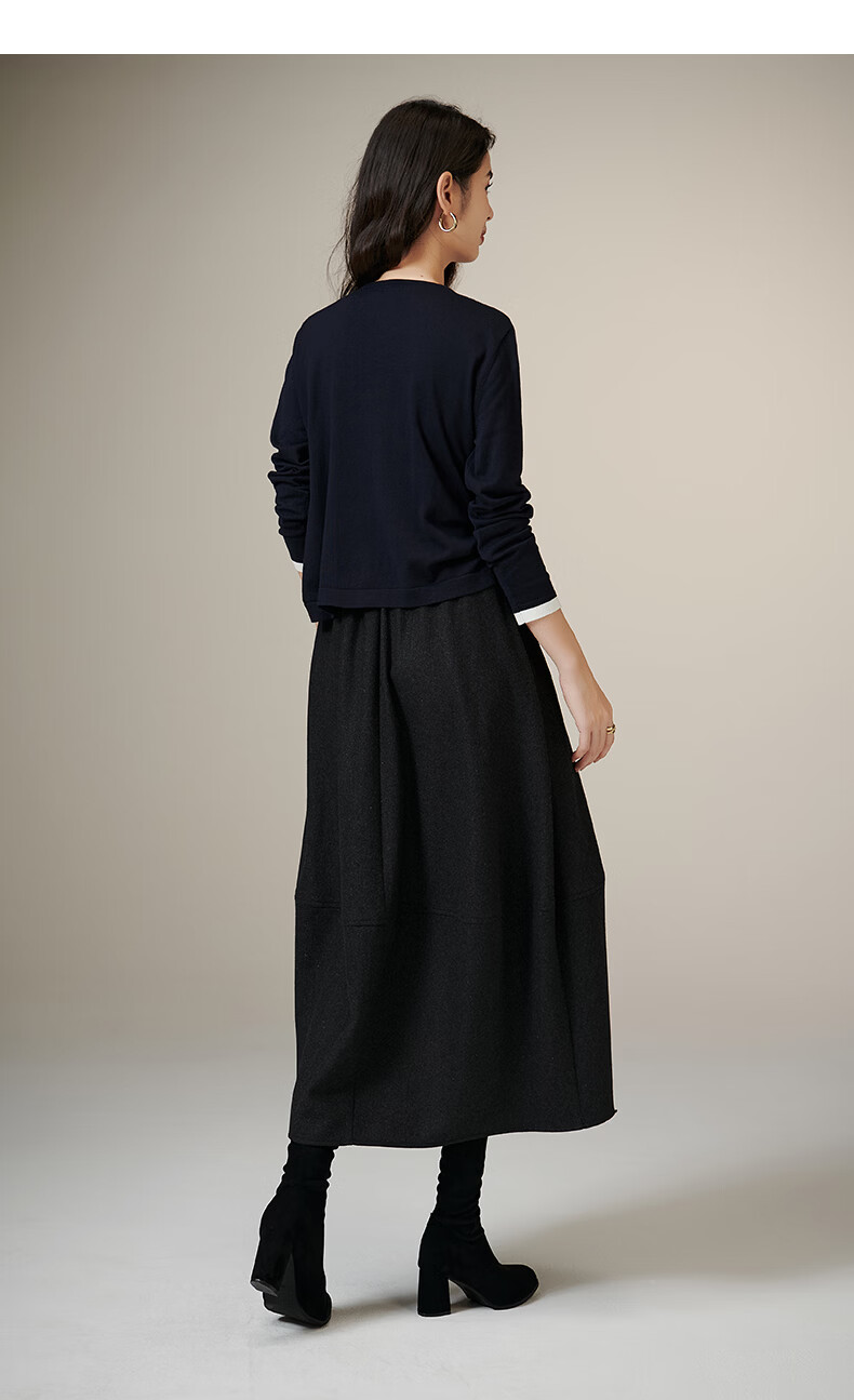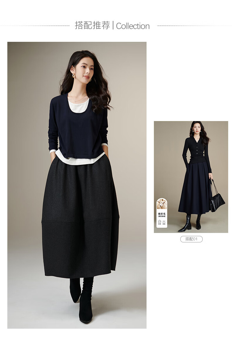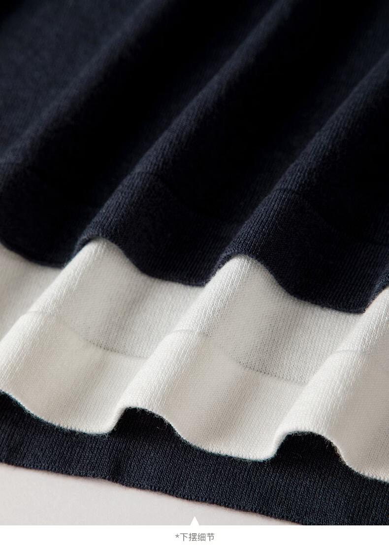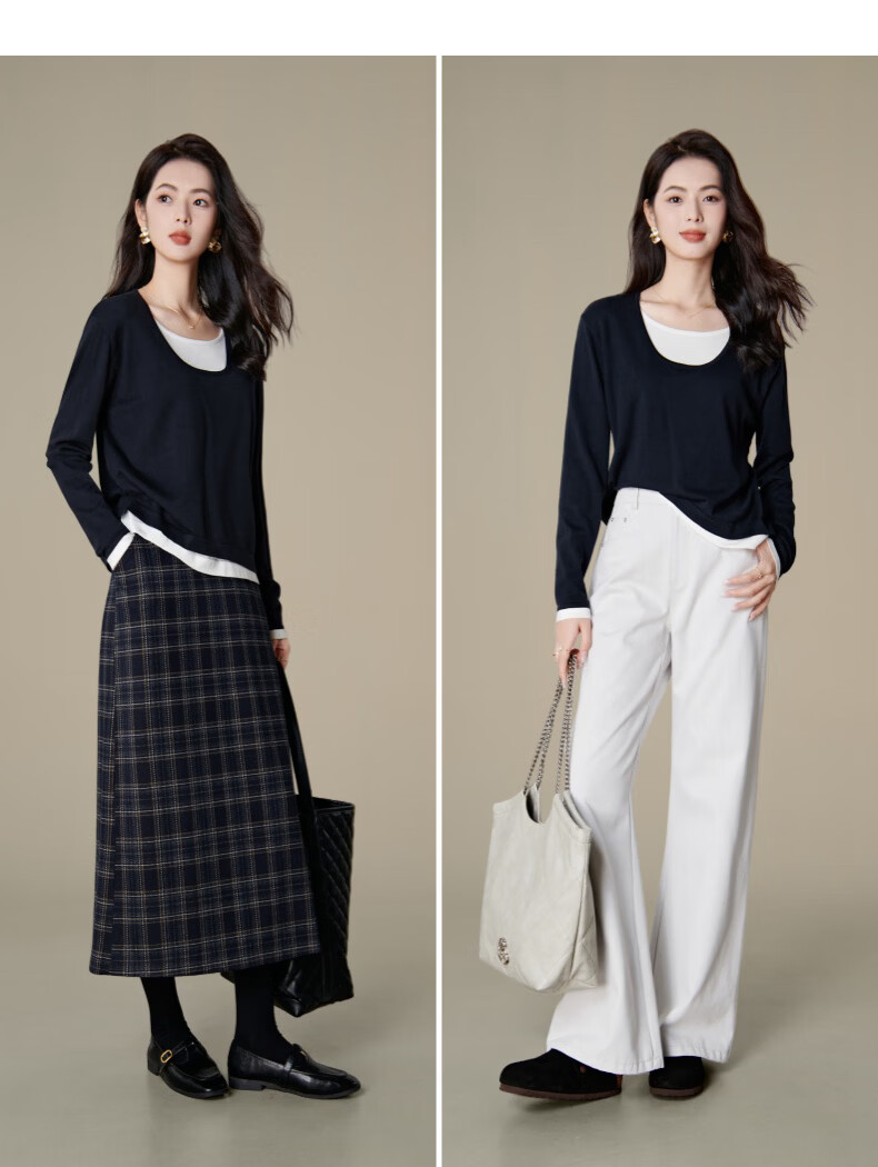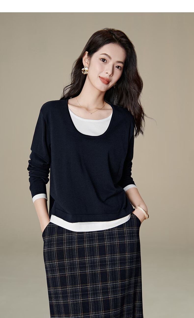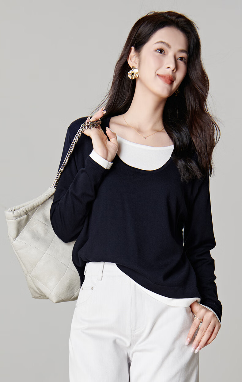 晚白【新品】2026春季时尚假两件上衣舒适亲肤棉质莱赛尔大码针织衫 藏蓝色 M